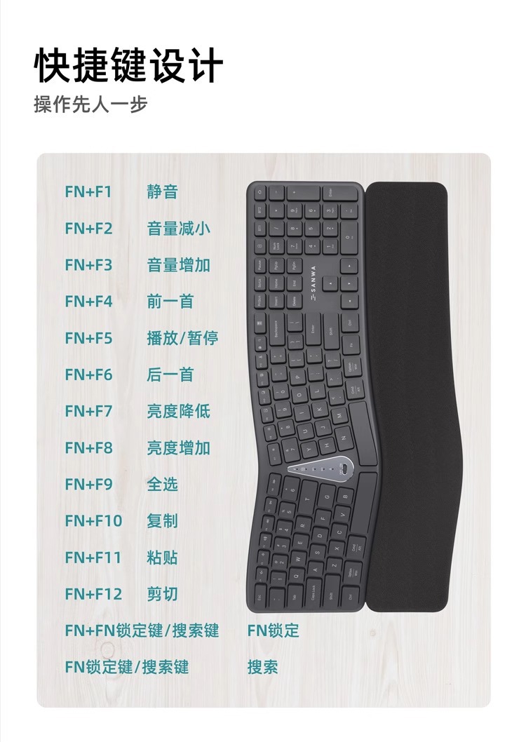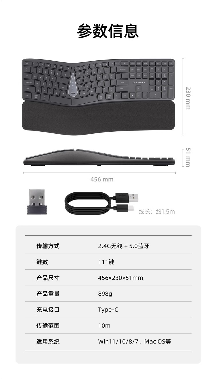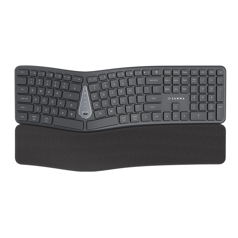 일본 SANWA 인체 공학적 키보드 손목 받침대가있는 무선 블루투스 게임 사무실 홈 충전 타이핑 주변 장치스토어 가기