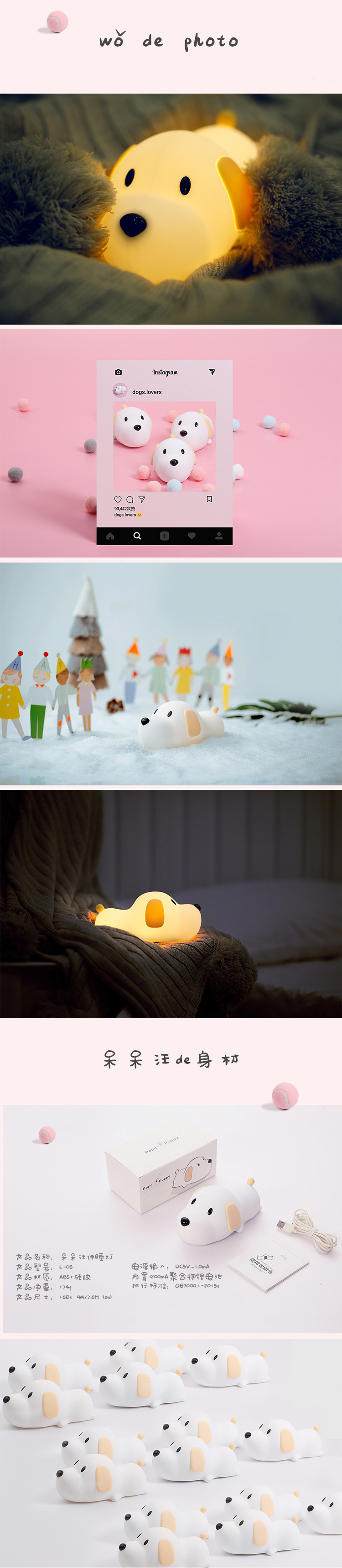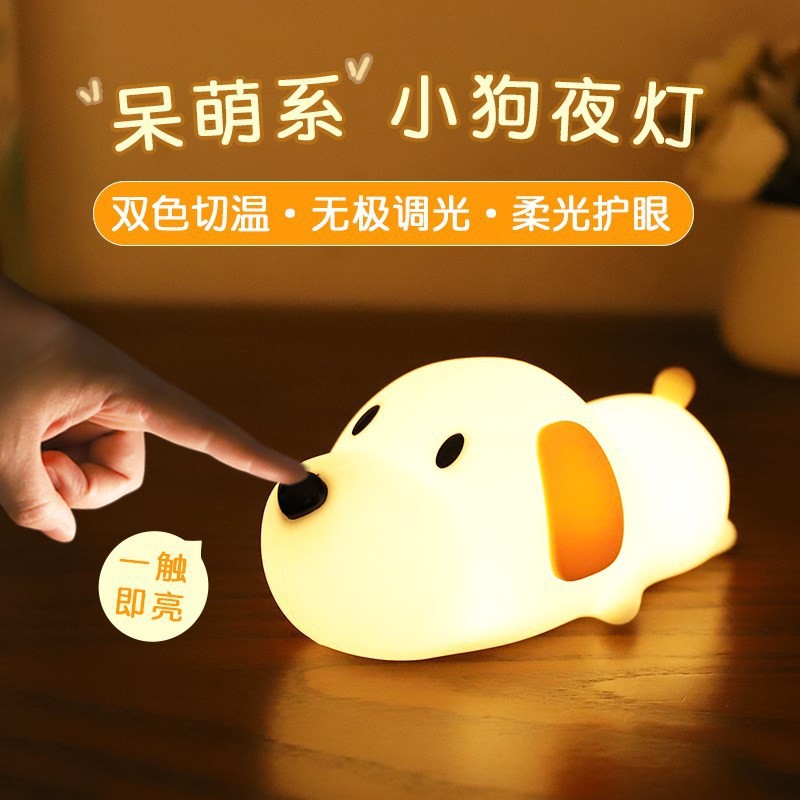 Dai Daiwang 야간 조명, 창의적인 강아지 램프, 귀여운 수유 부드러운 빛 충전식 LED 침대 옆 플러그인 수면 실리콘스토어 가기