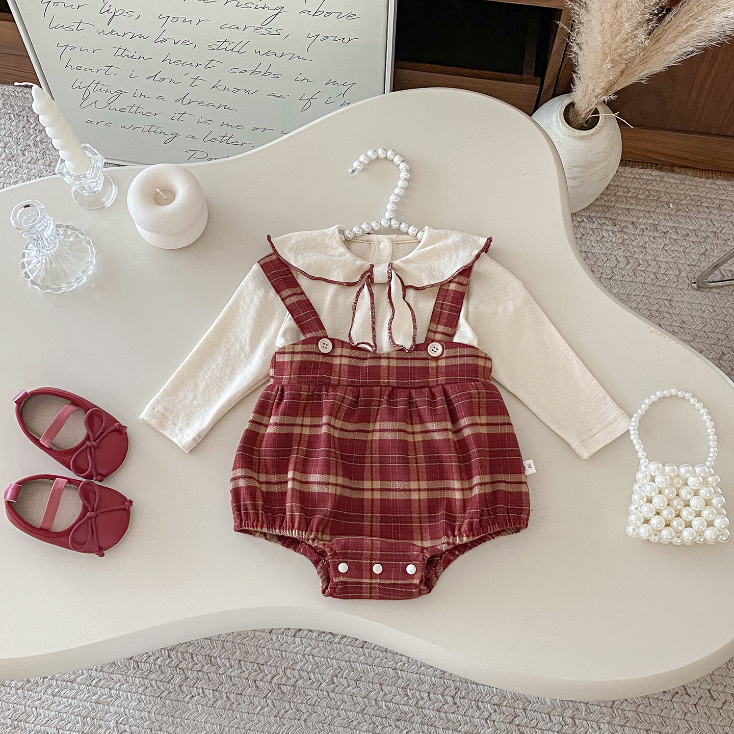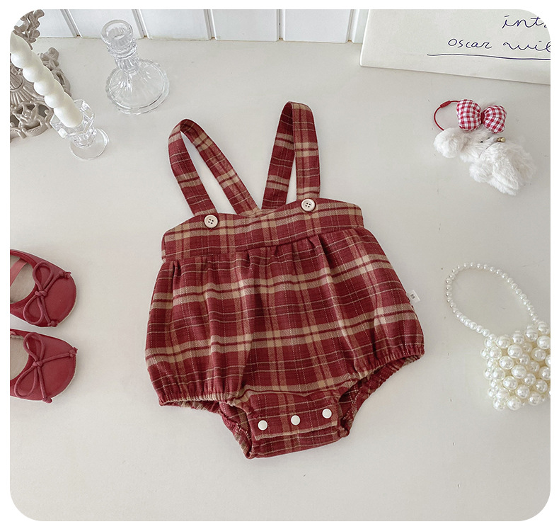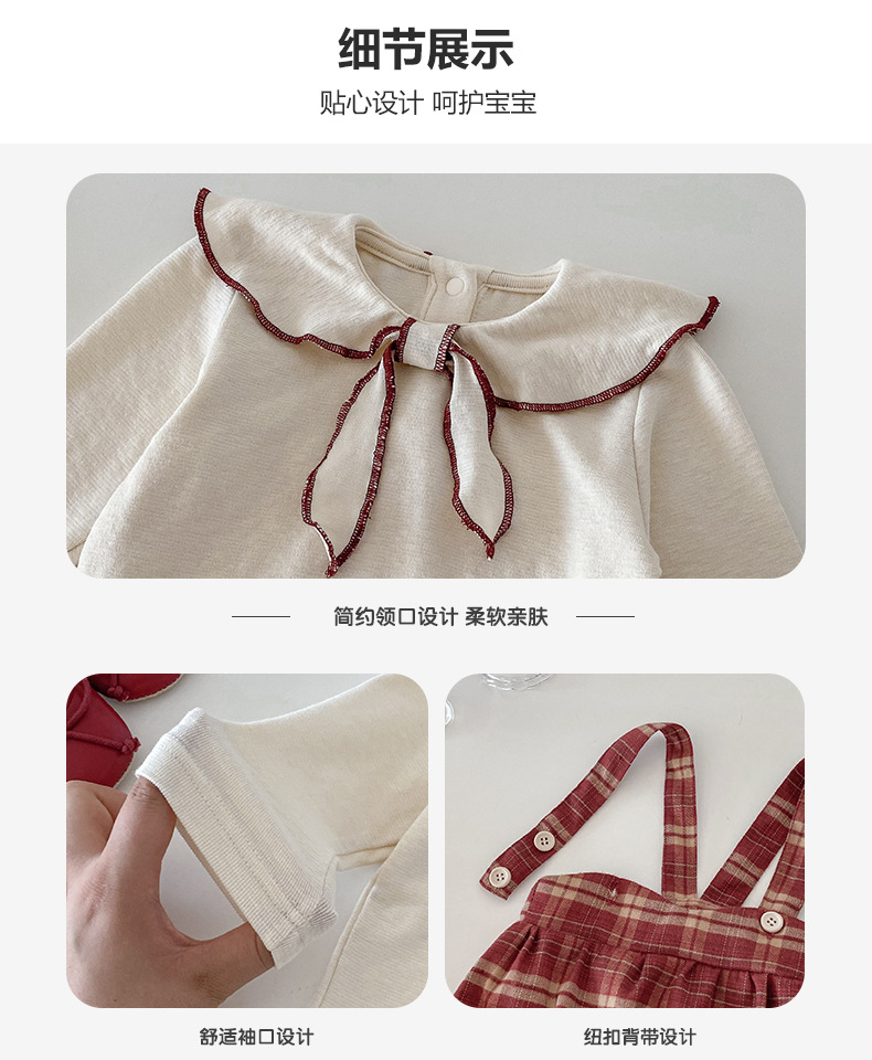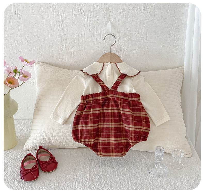 Dianxi 2025 새로운 가을 스타일 유아 격자 무늬 작업복 정장 아기 소녀 바닥 셔츠 투피스 세트