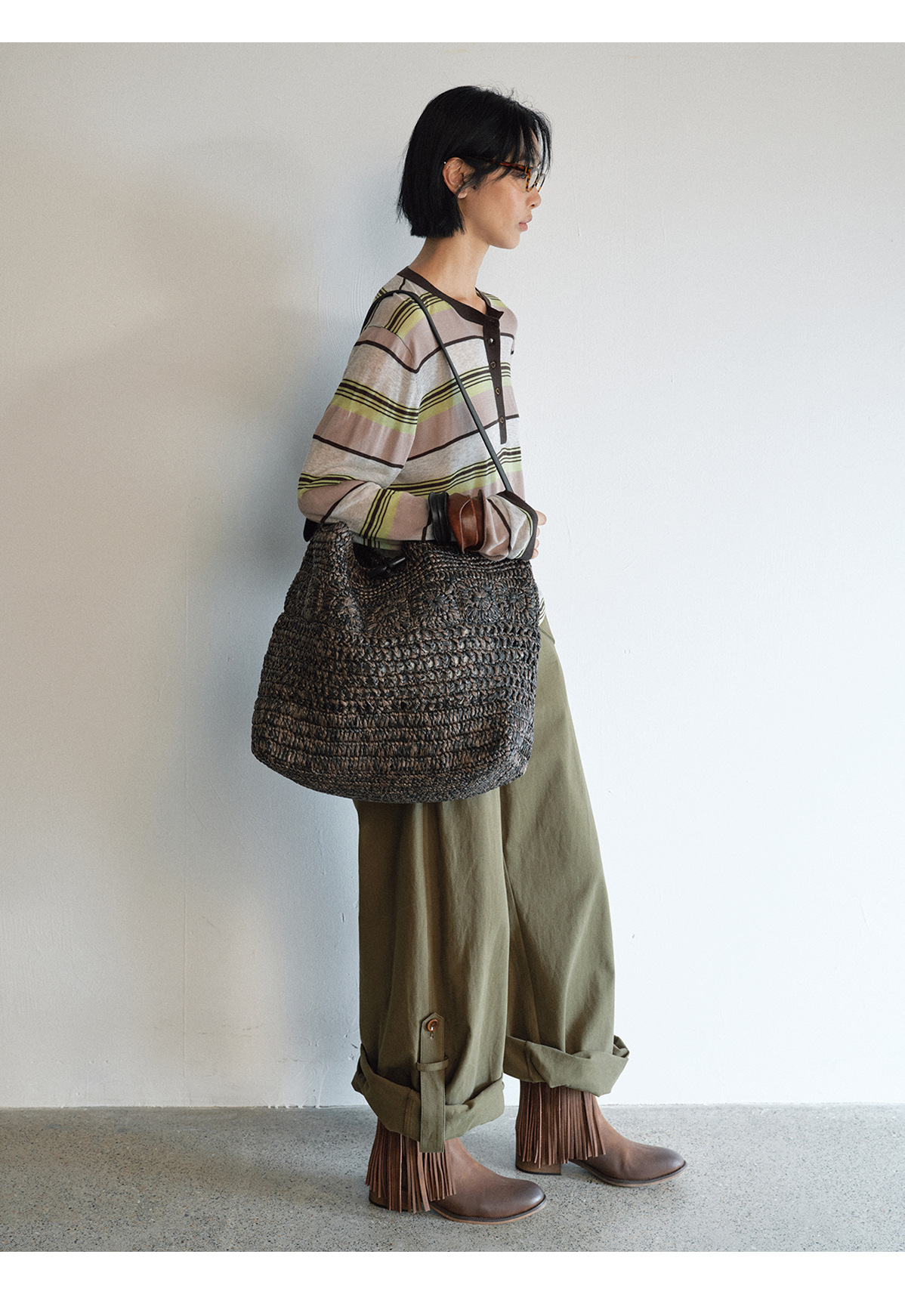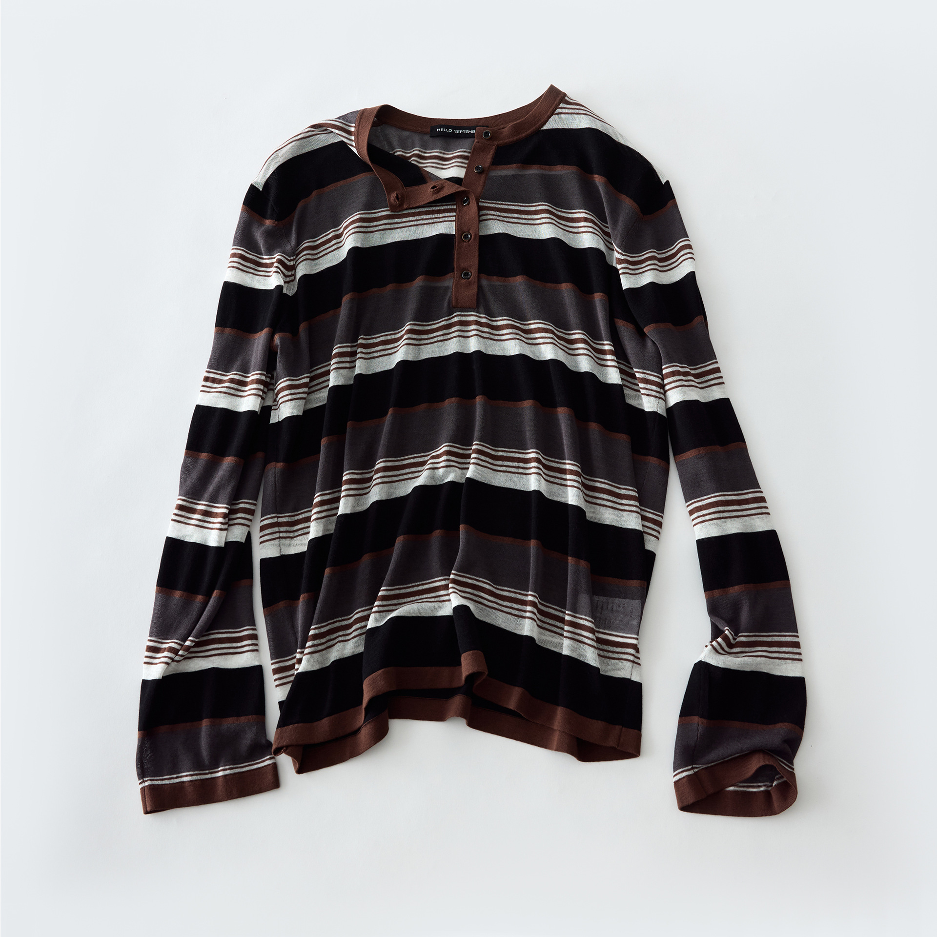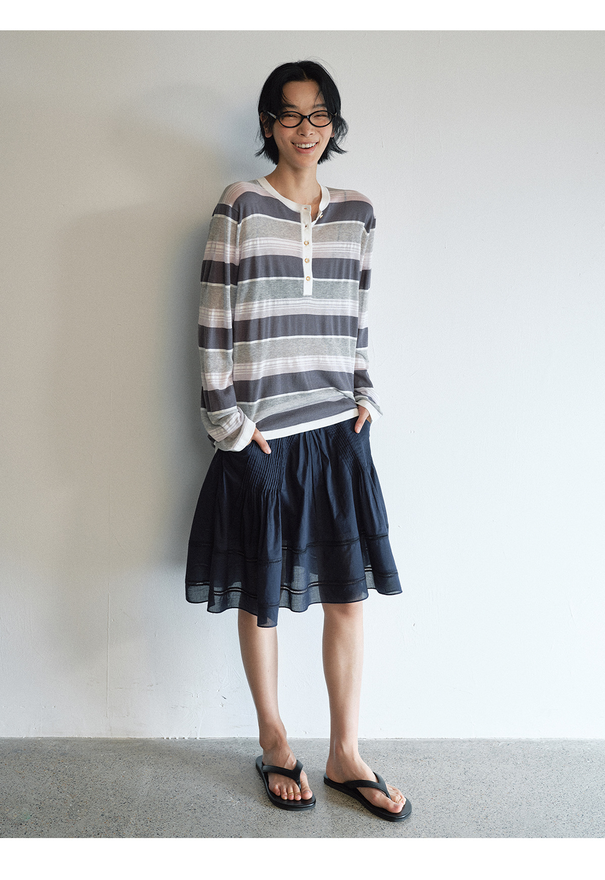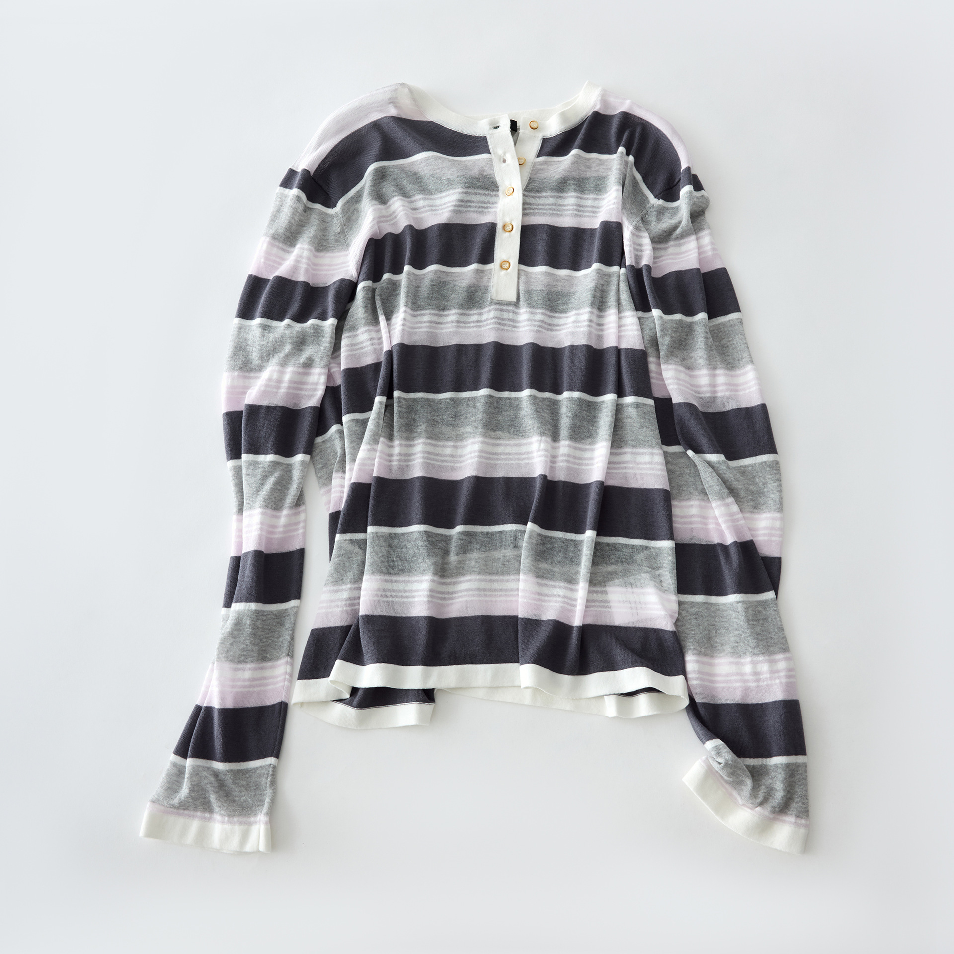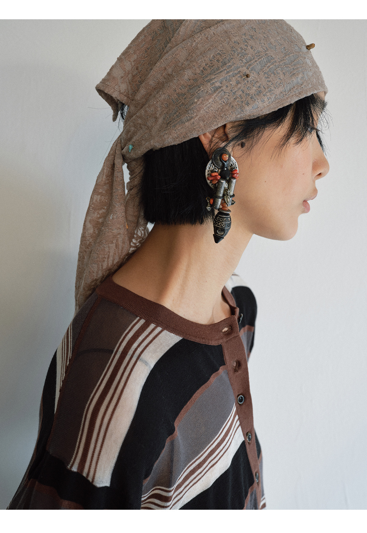 [시시] 초가을 신상 텐셀 레트로 스트라이프 니트 얇고 투명한 긴팔 헨리넥 탑 여성용 V9264