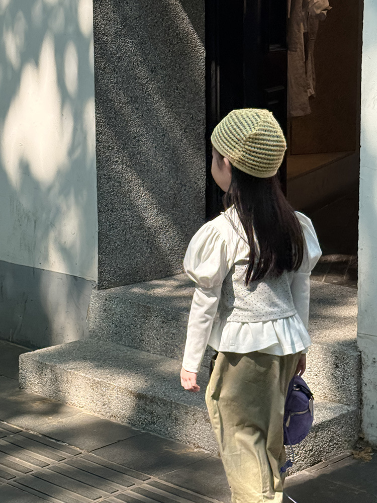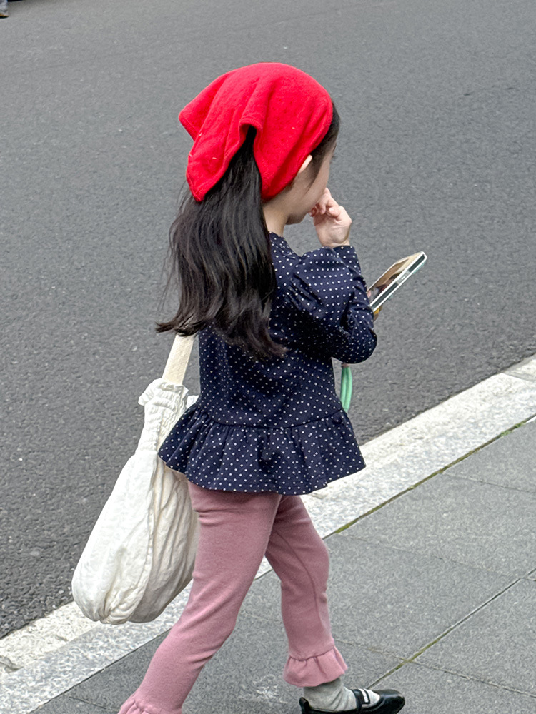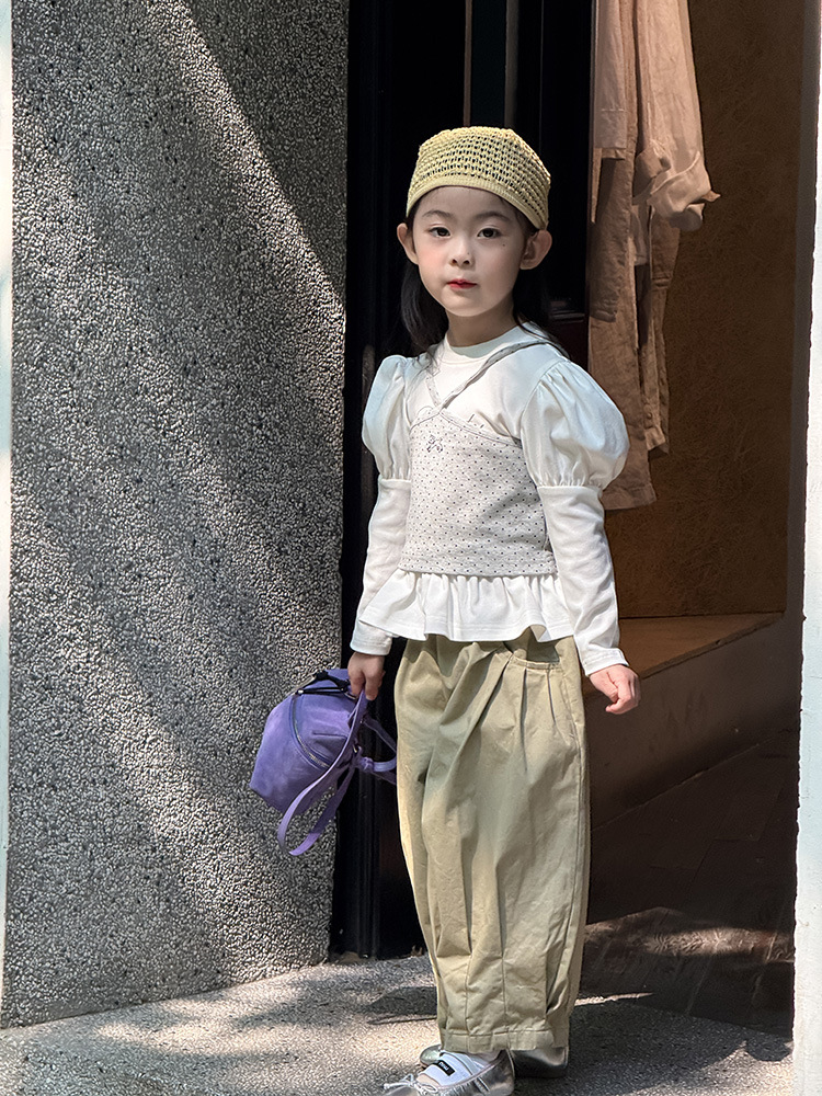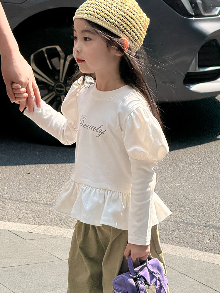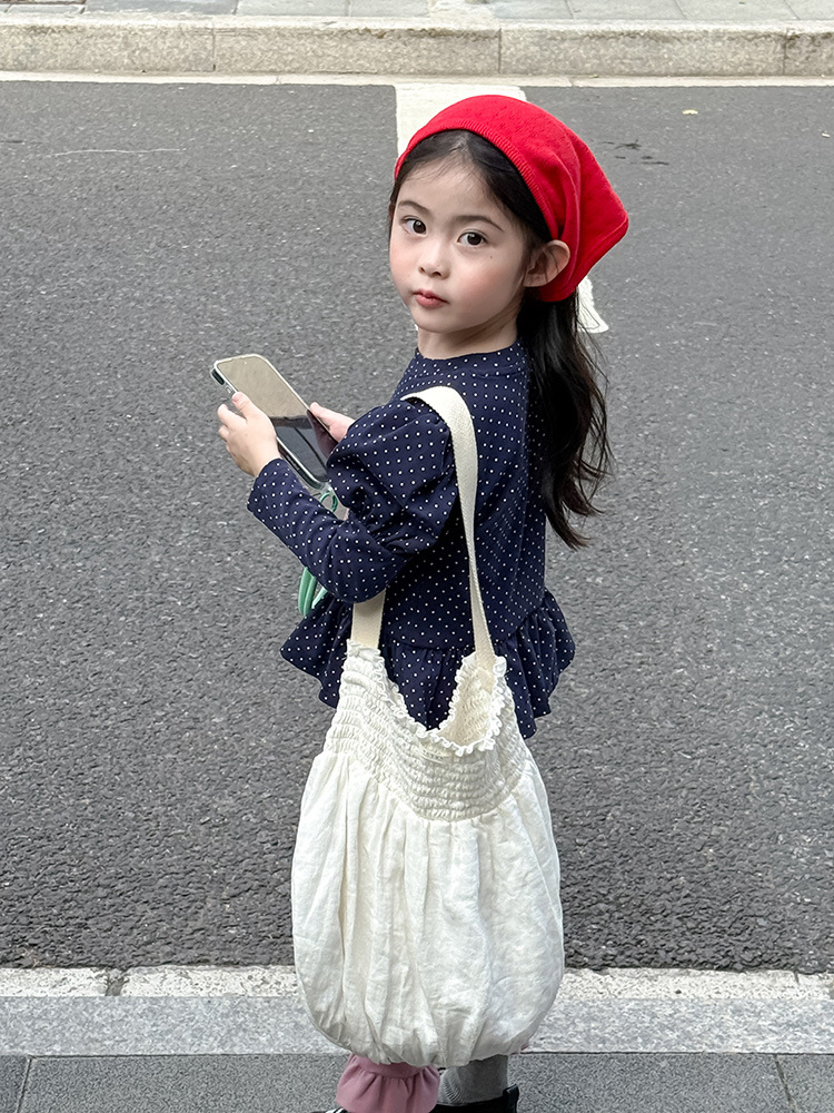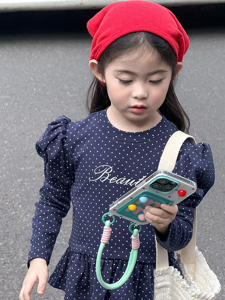 여아 퍼프 슬리브 셔츠 아동용 레터 스트레치 폴카 도트 긴팔 라운드 넥 티셔츠 가을 새로운 한국어 버전스토어 가기