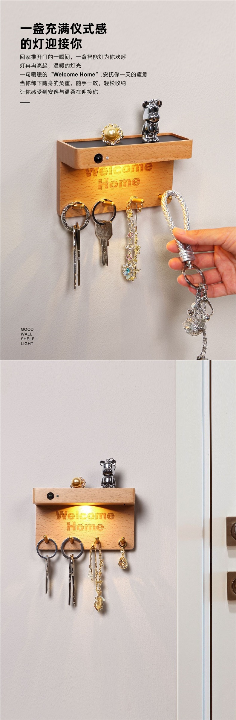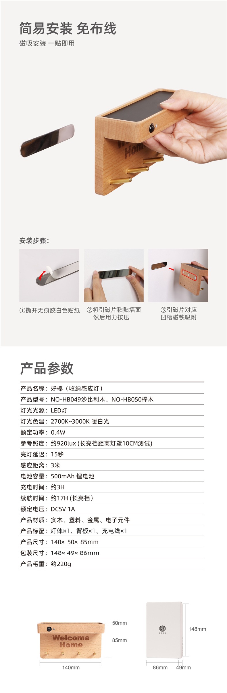 정원등, 인체감지등, 벽등, 원목 야간등, 키걸이, 수납등, 배선이 필요 없는 제품입니다.