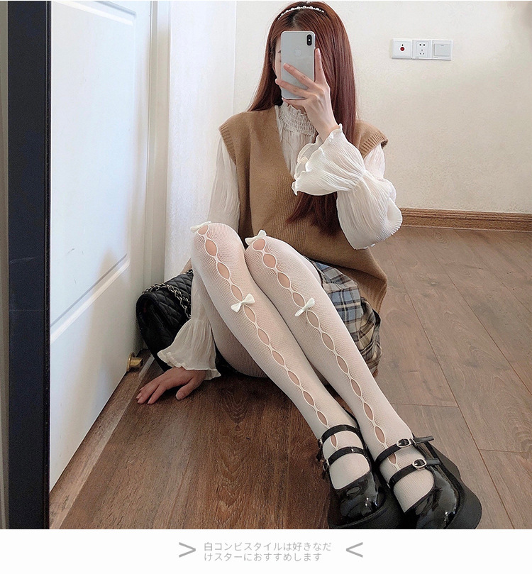 일본 로리타 보우 중공 망사 양말 레이스 로리타 팬티 jk 순수한 욕망 흰색 양말 여성용 얇은 스타일스토어 가기