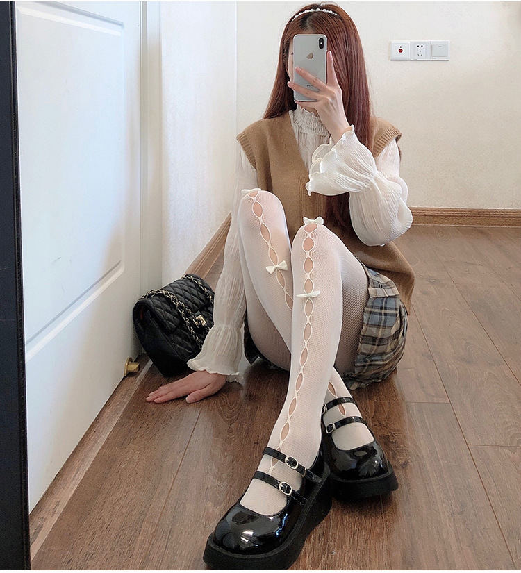 일본 로리타 보우 중공 망사 양말 레이스 로리타 팬티 jk 순수한 욕망 흰색 양말 여성용 얇은 스타일
