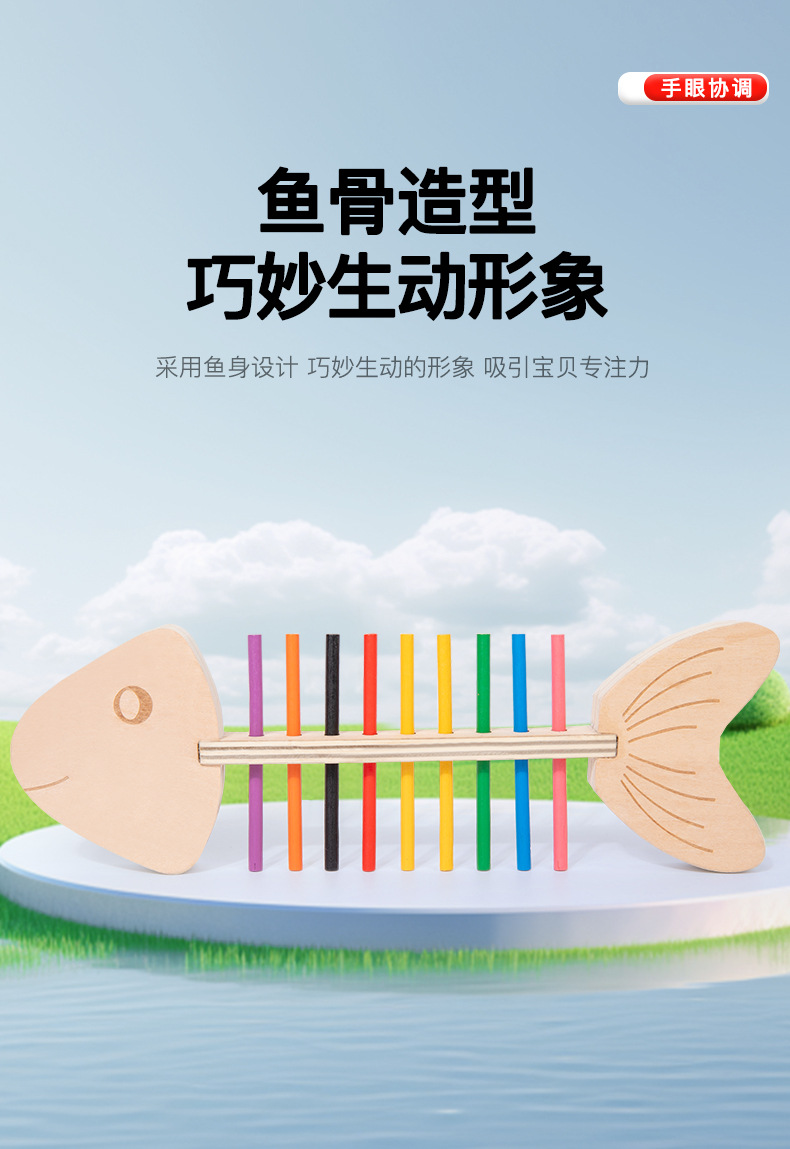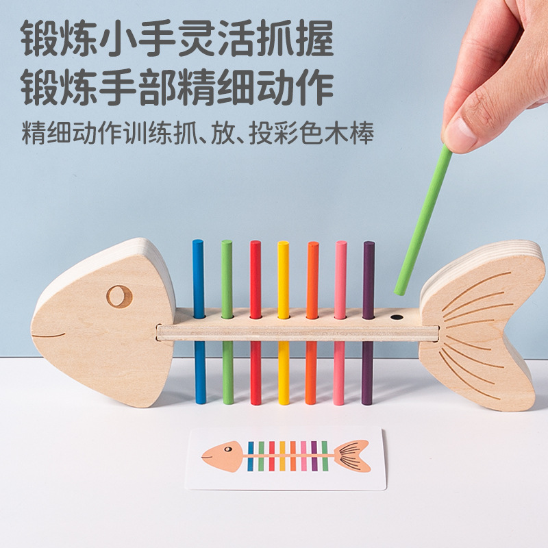 국경 간 인기 판매 조기 교육 어린이 장난감 색상 일치 몬테소리 물고기 뼈 스틱 교육 보조 미세 운동 훈련