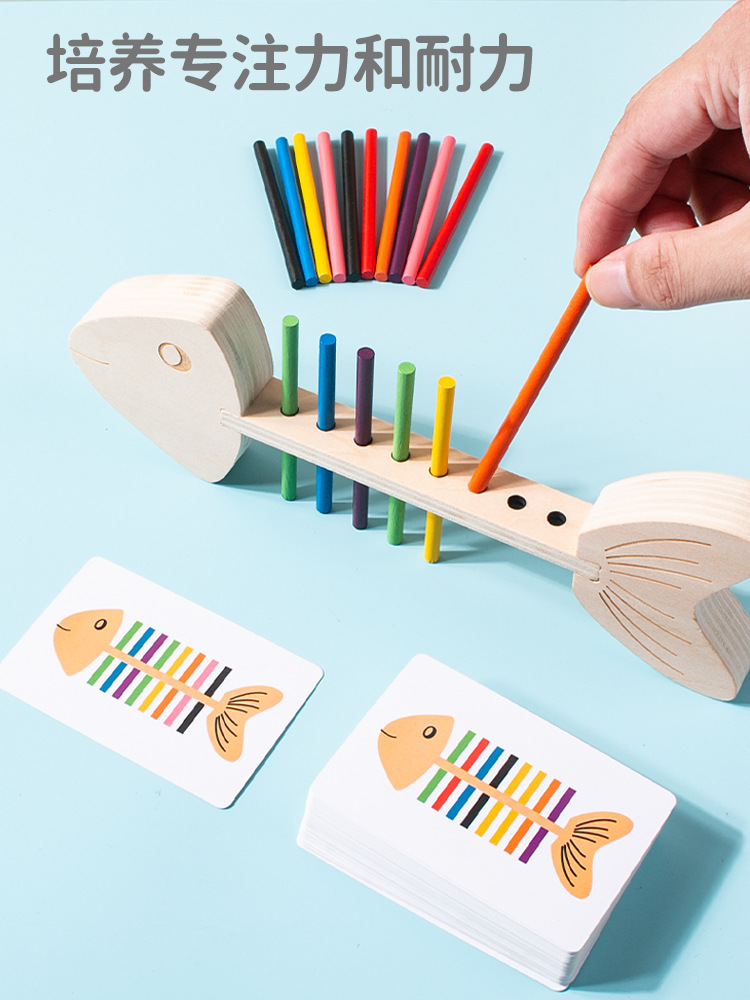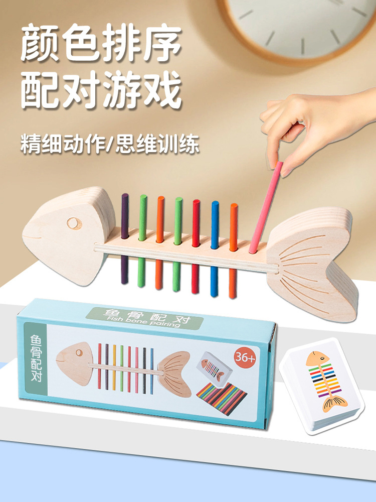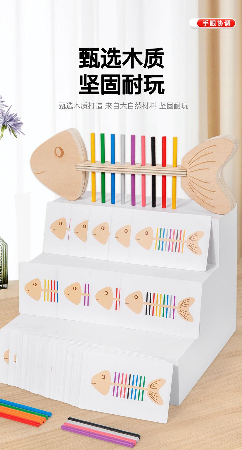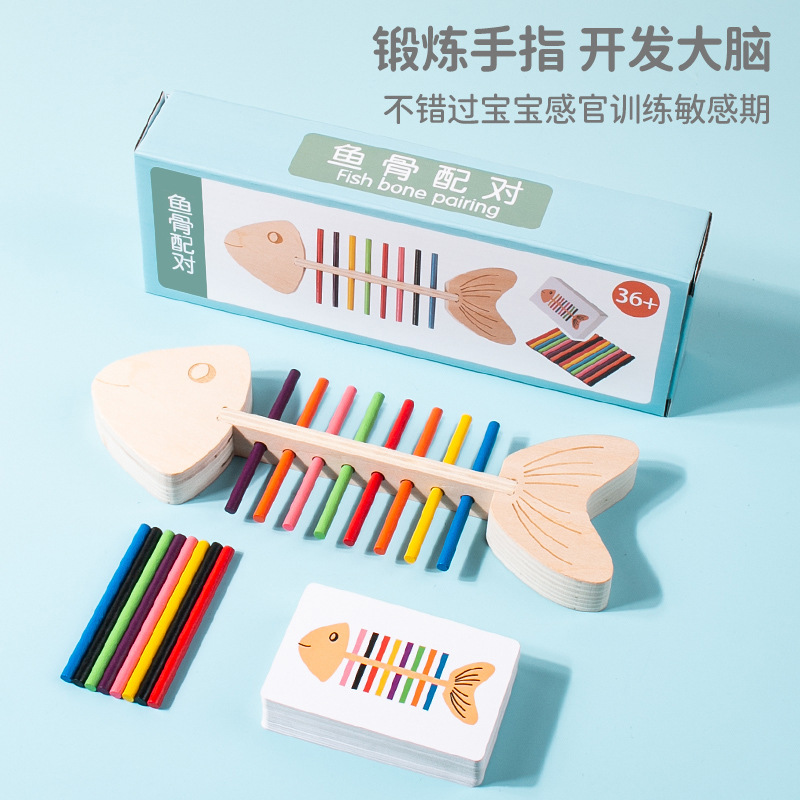 국경 간 인기 판매 조기 교육 어린이 장난감 색상 일치 몬테소리 물고기 뼈 스틱 교육 보조 미세 운동 훈련스토어 가기