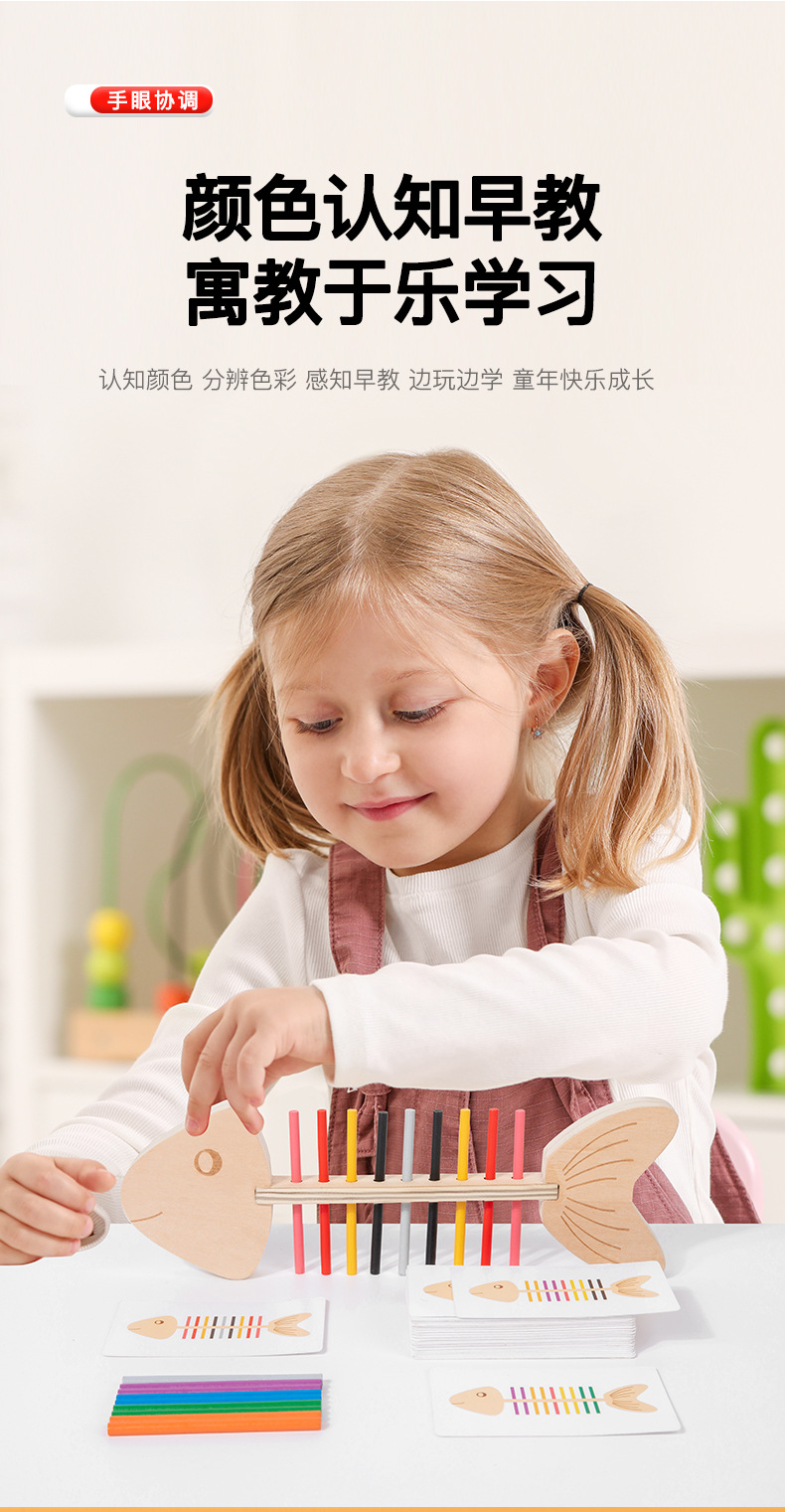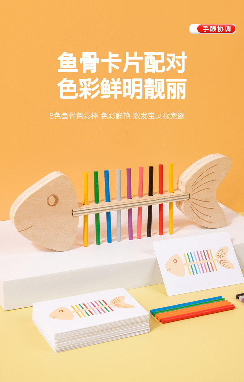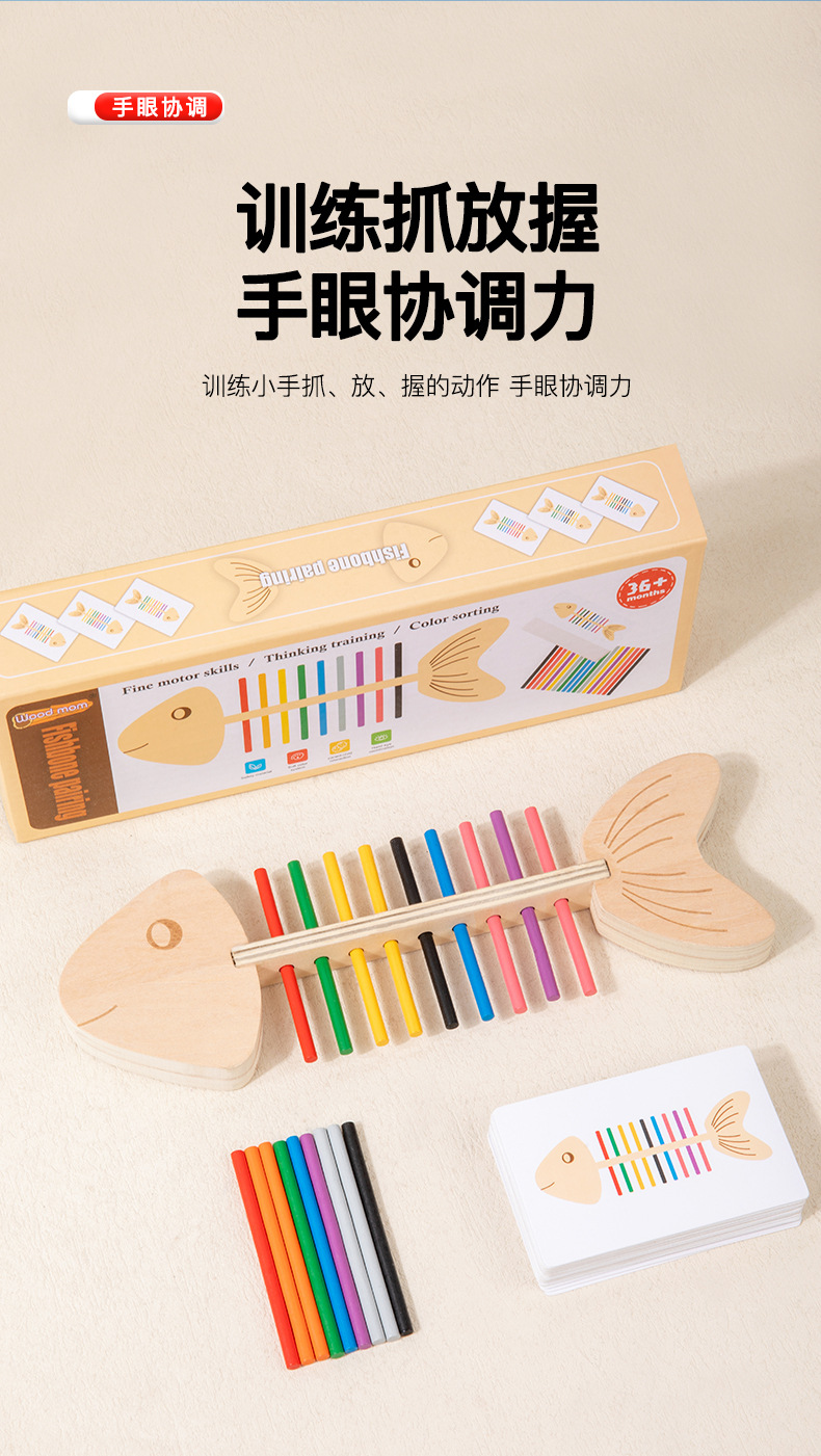 국경 간 인기 판매 조기 교육 어린이 장난감 색상 일치 몬테소리 물고기 뼈 스틱 교육 보조 미세 운동 훈련스토어 가기