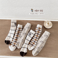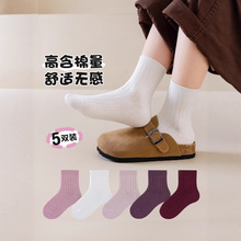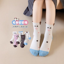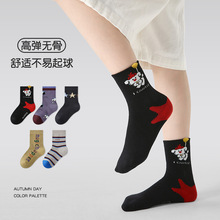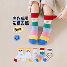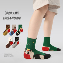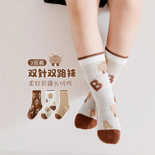 어린이 양말 도매 가을 새로운 더블 바늘 수 놓은 편지 아기 중간 튜브 양말 뼈없는 통기성 소년 양말 면화