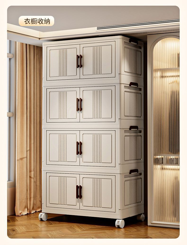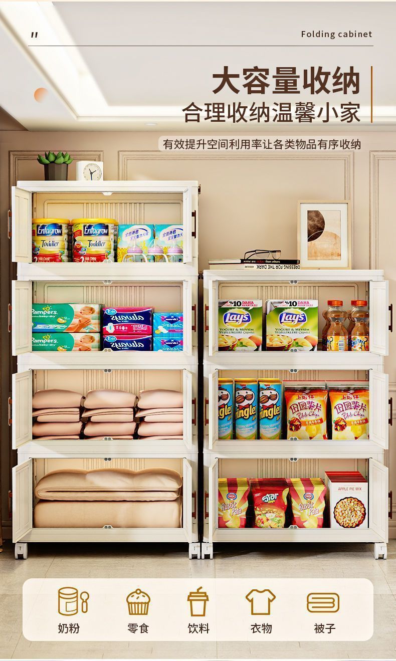 대용량 접이식 수납 가정용 의류 수납 캐비닛 장난감 수납 선반 스낵 다층 플라스틱 수납 캐비닛 설치