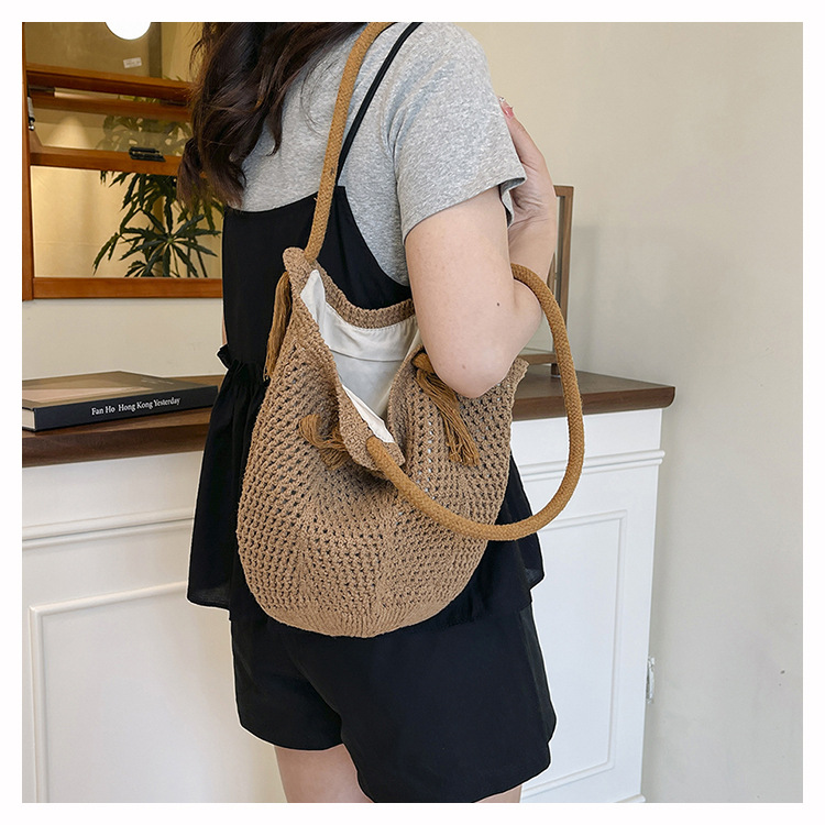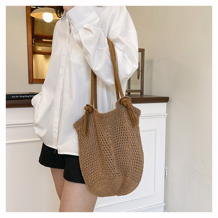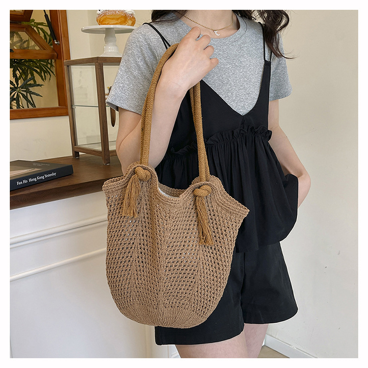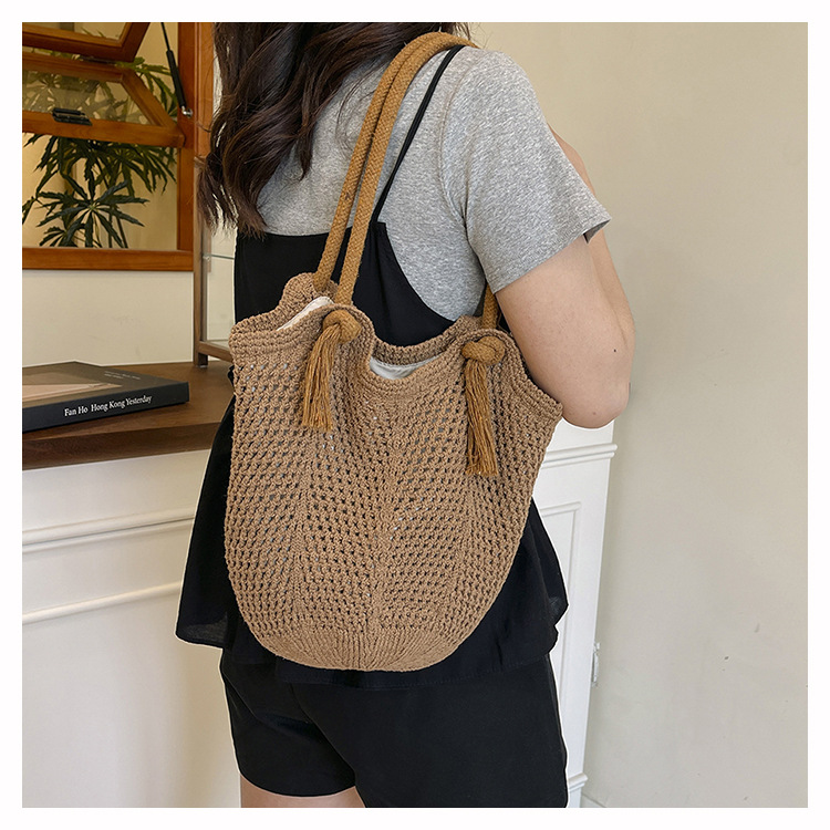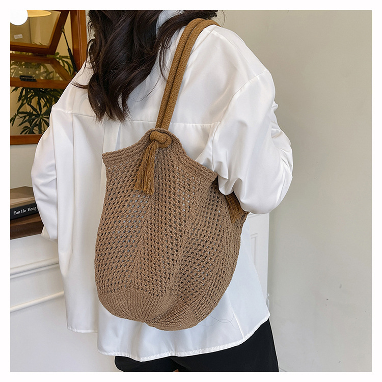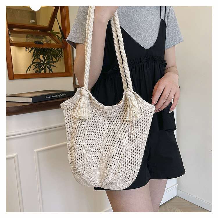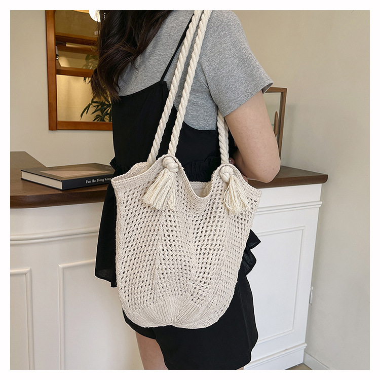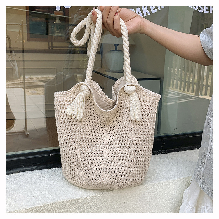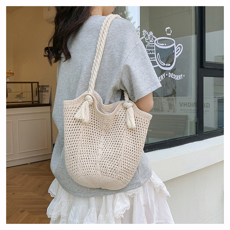 여성을위한 대용량 짠 중공 토트 백 여름 새로운 패션 밀짚 숄더 백 휴가 스타일 비치 여성용 가방스토어 가기