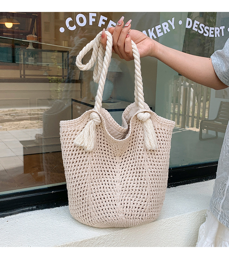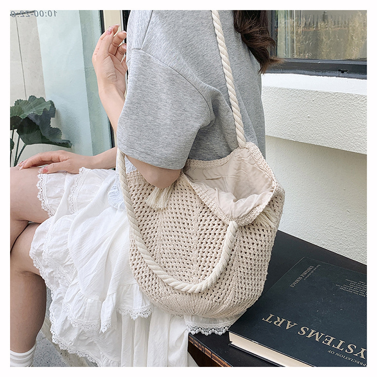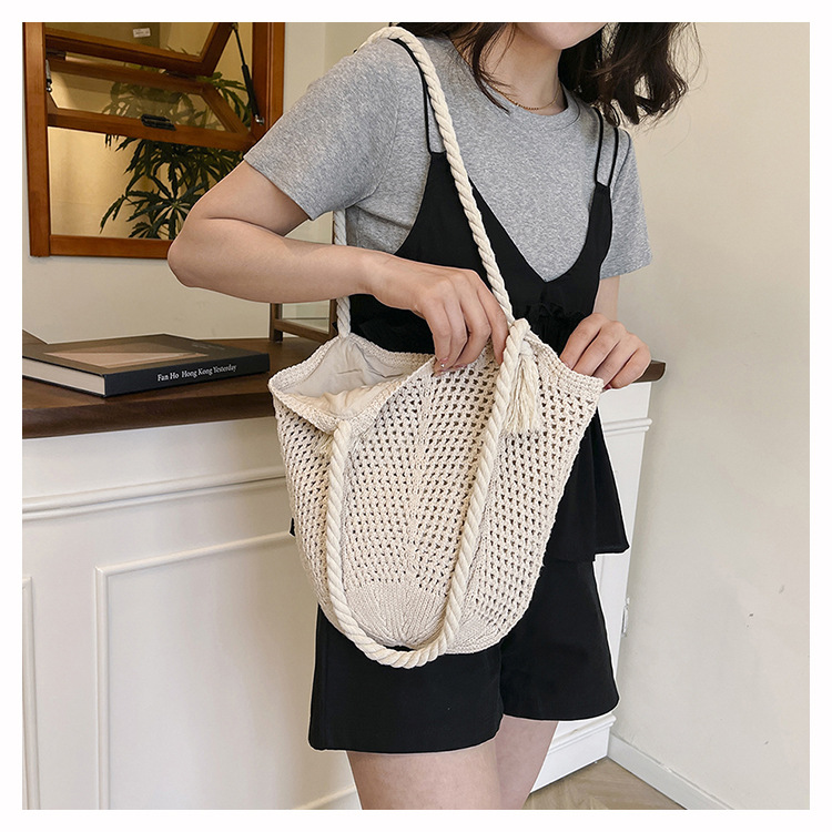 여성을위한 대용량 짠 중공 토트 백 여름 새로운 패션 밀짚 숄더 백 휴가 스타일 비치 여성용 가방
