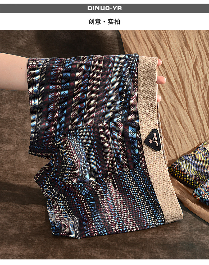 레트로 민족풍 남성 속옷 순면 통기성 사각팬티 아마야 프린트 사각팬티 통기성 항균