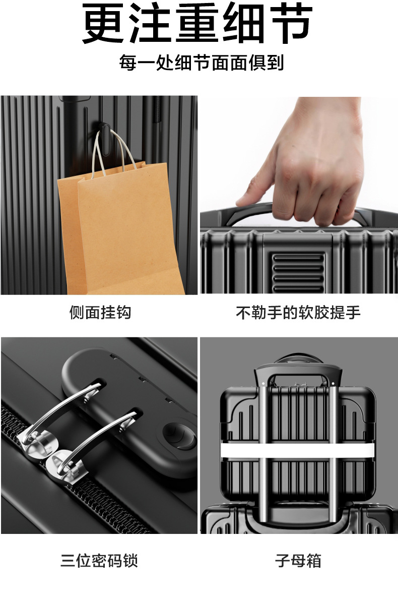 범용 휠이있는 여성용 새로운 복고풍 가방, 남학생용 트롤리 케이스, 내구성 있는 비밀번호 상자, 여행용 케이스, 대용량 및 트렌디함