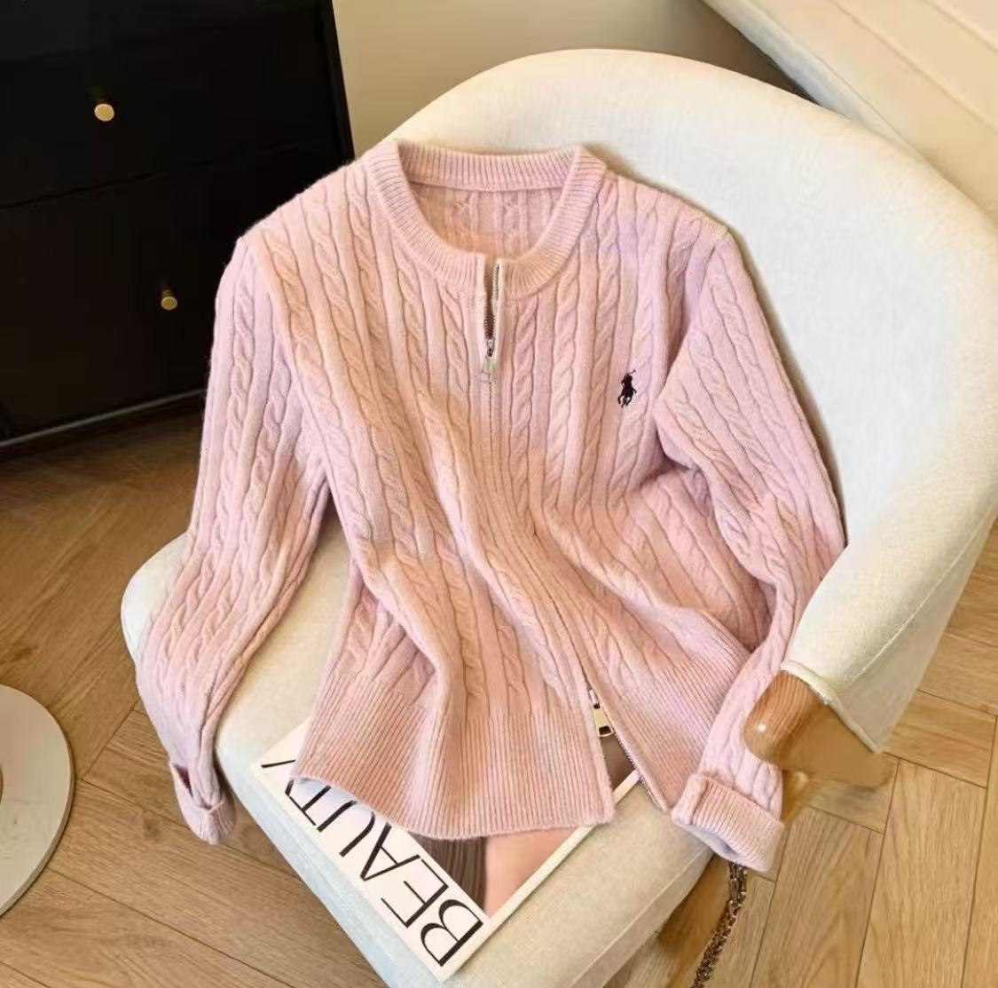 여성을위한 새로운 가을, 겨울 더블 지퍼 트위스트 자수 니트 카디건 라운드 넥 긴팔 연령 감소 스웨터 재킷 다용도 탑