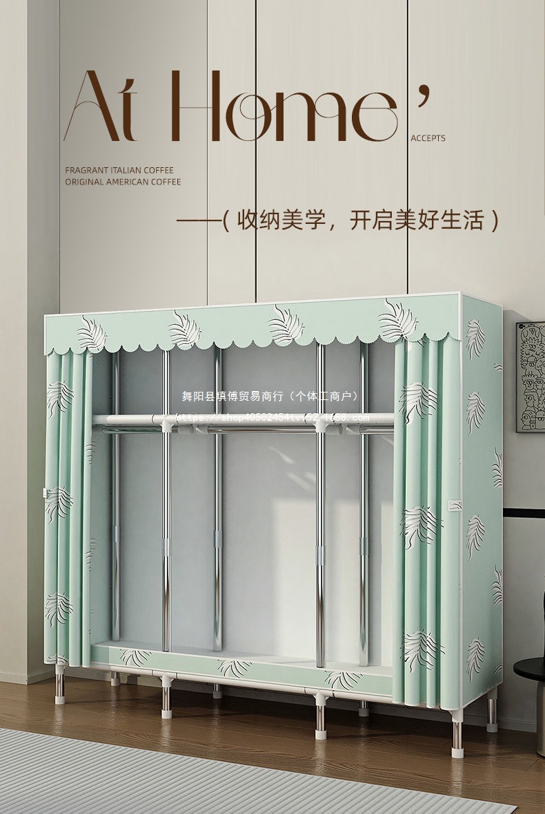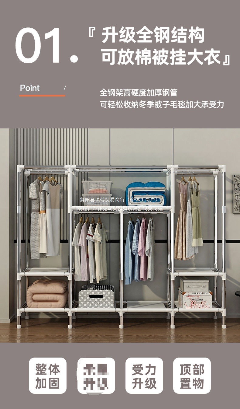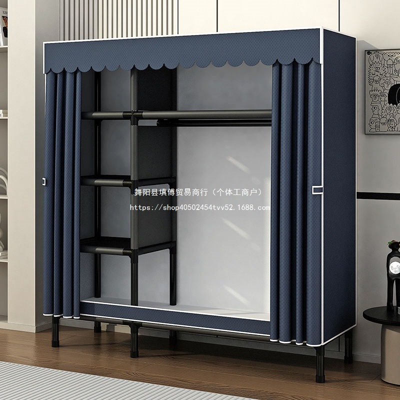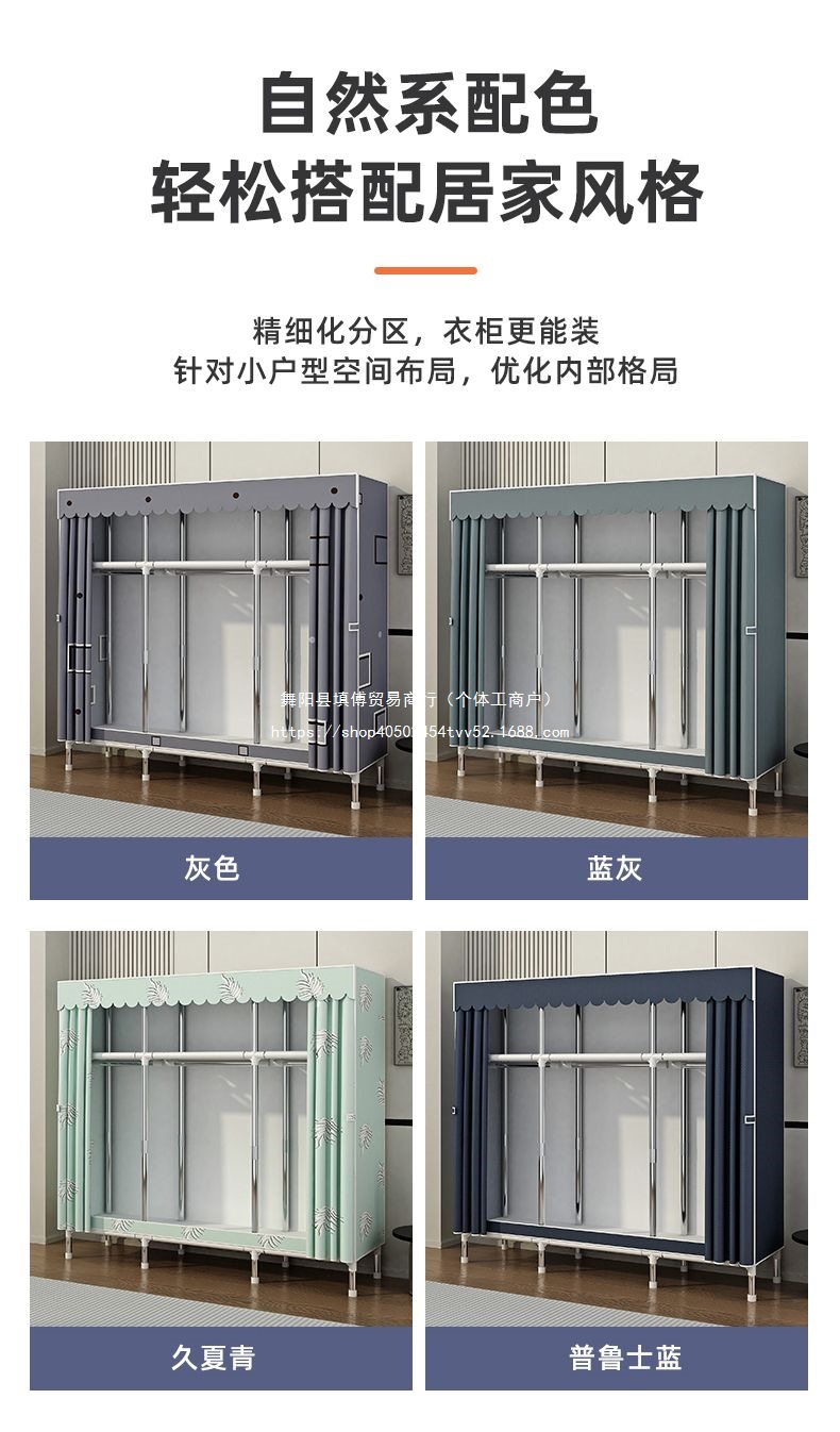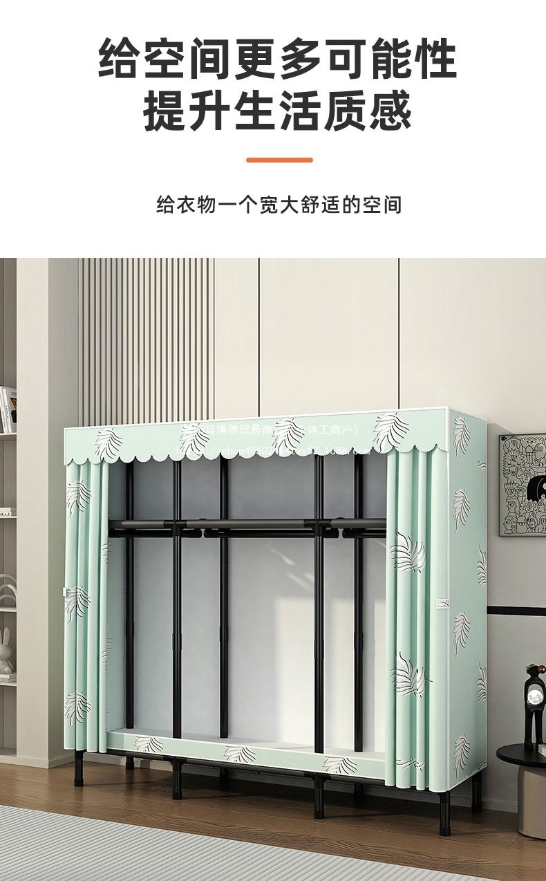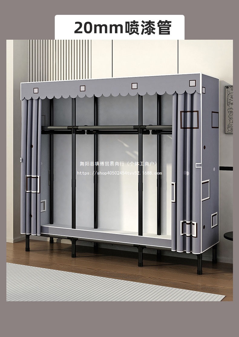 가정용 침실을 위한 간단한 옷장, 완전 강철 프레임, 두껍고 두꺼운 천 옷장, 튼튼하고 내구성이 뛰어난 임대 주택 보관 캐비닛