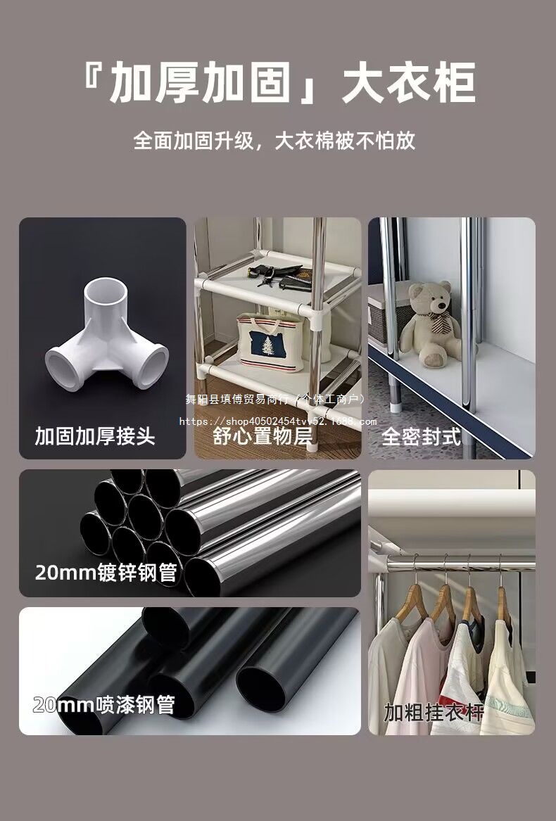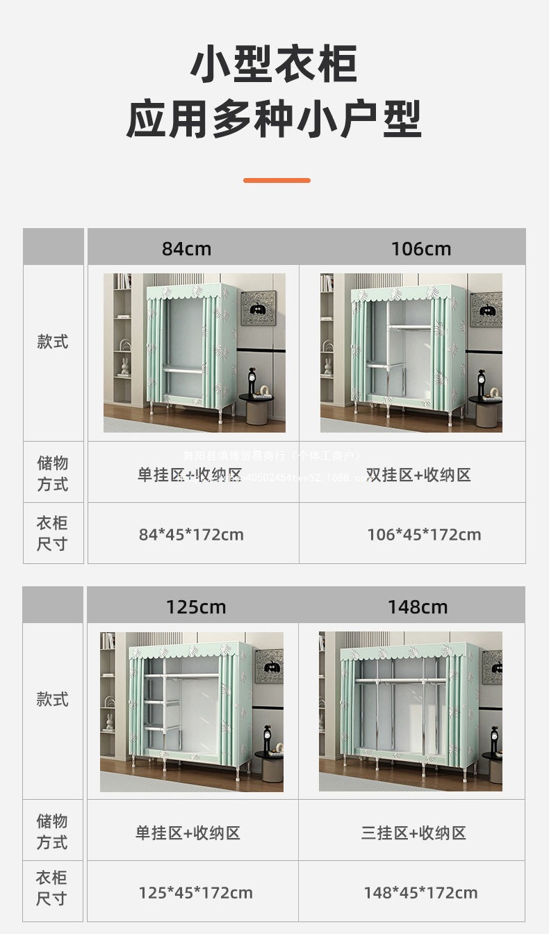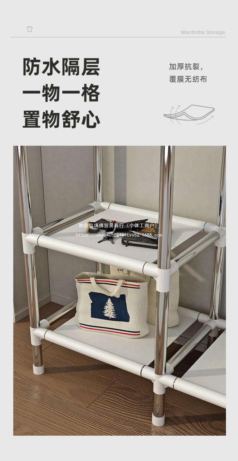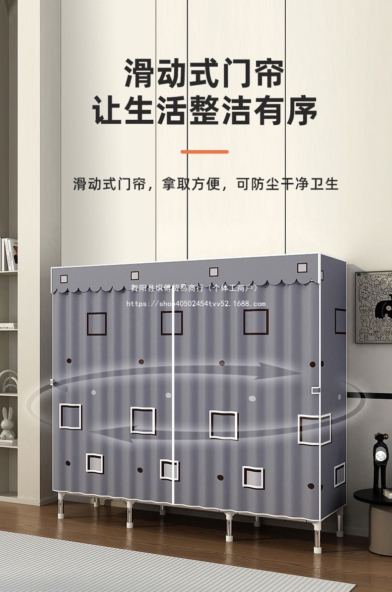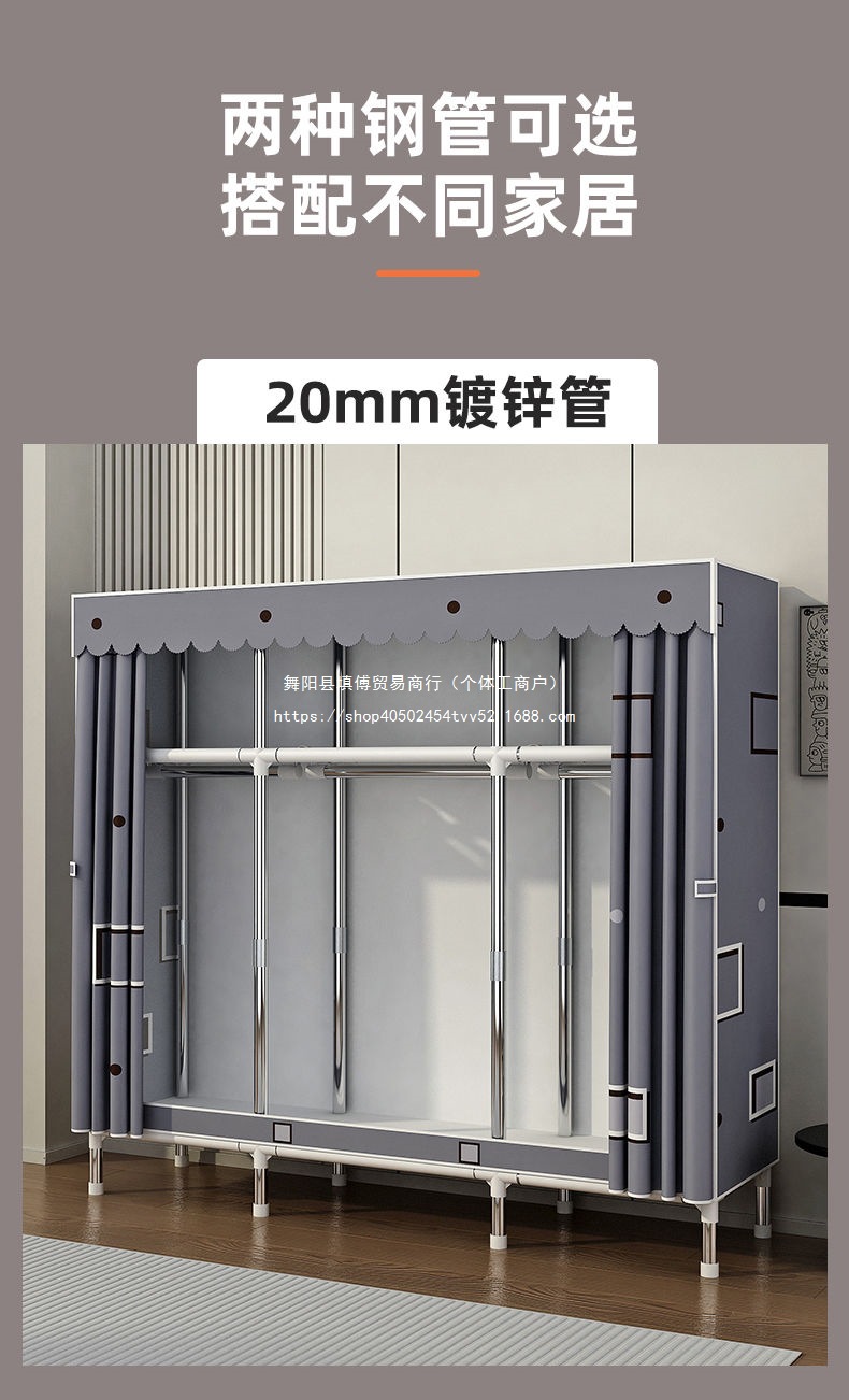 가정용 침실을 위한 간단한 옷장, 완전 강철 프레임, 두껍고 두꺼운 천 옷장, 튼튼하고 내구성이 뛰어난 임대 주택 보관 캐비닛