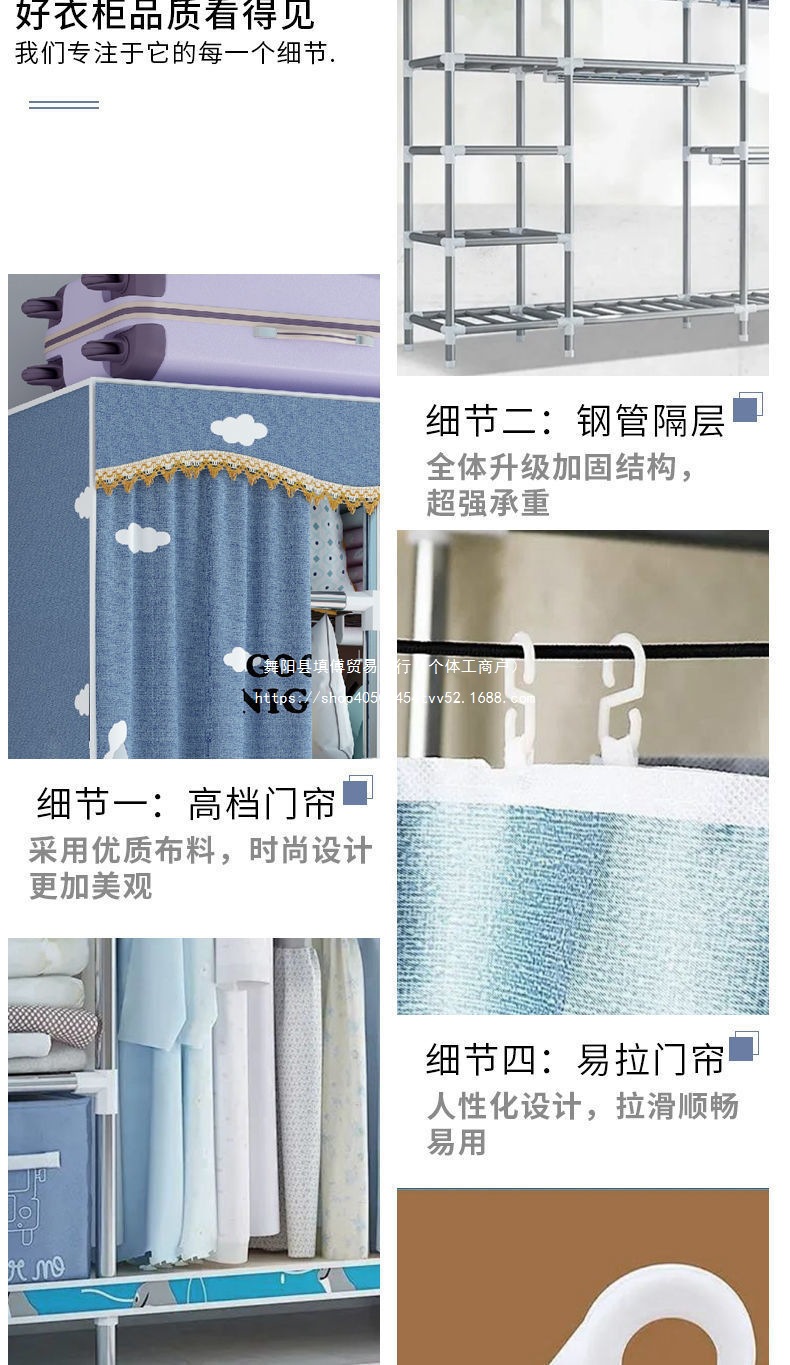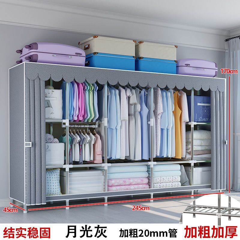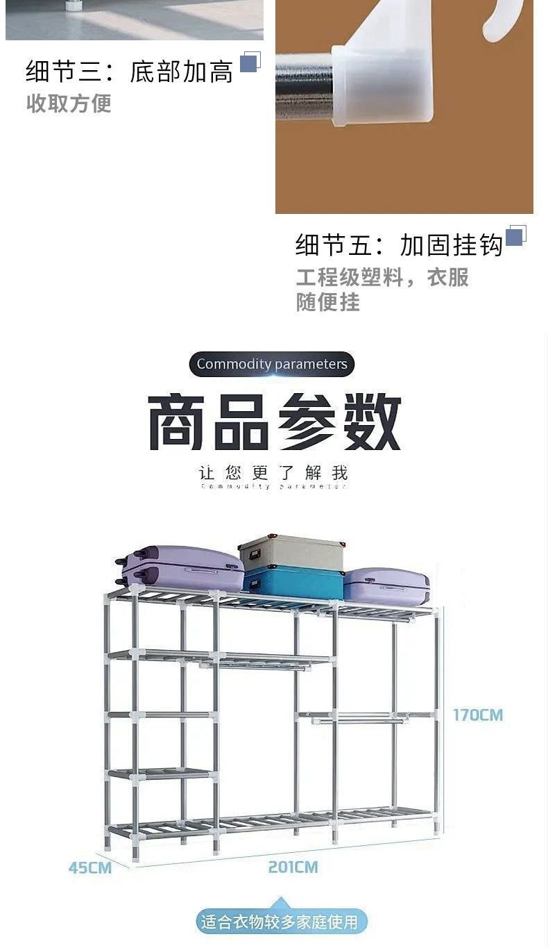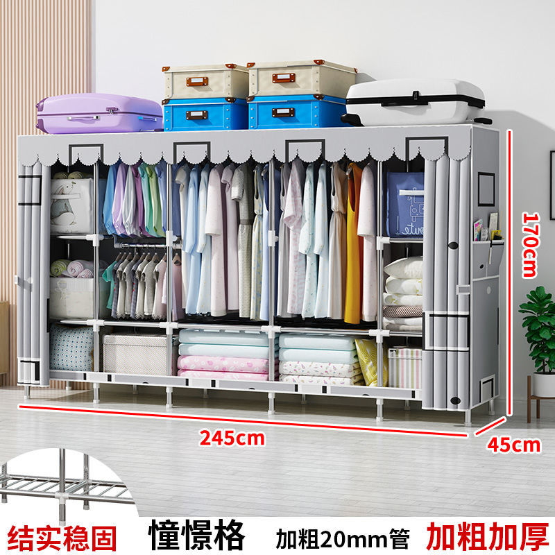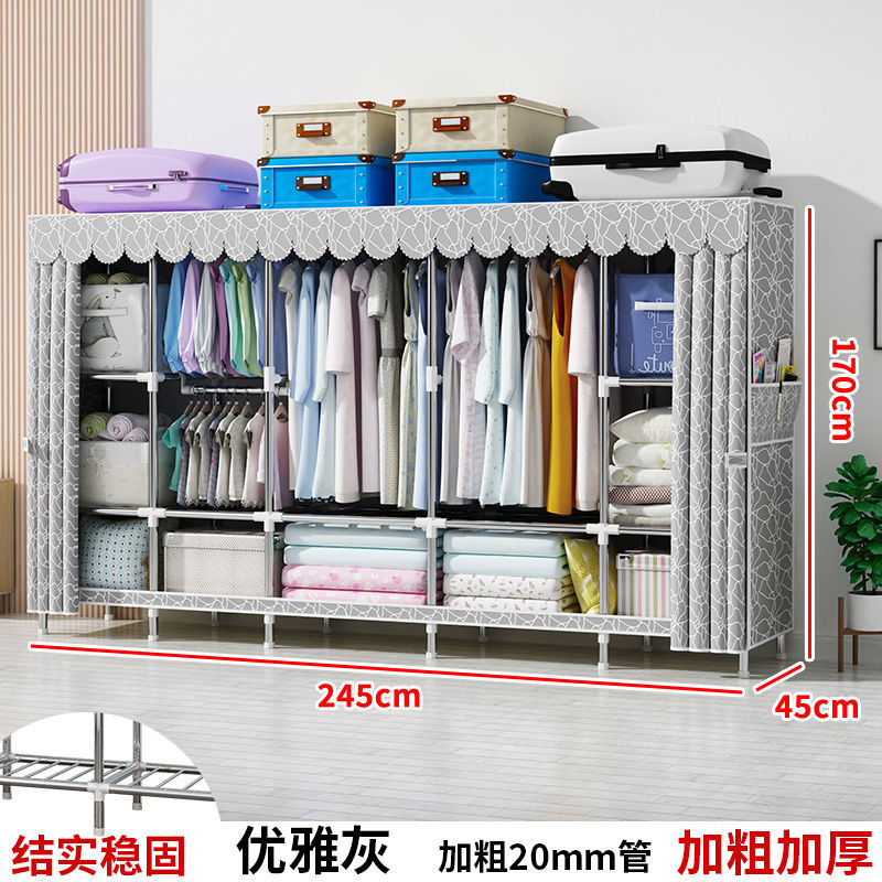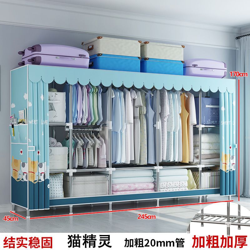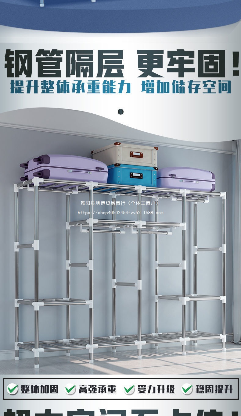 가정용 침실용 간이 천 옷장 전체 강철 파이프 프레임 바닥에서 천장까지 옷걸이 렌탈 룸 옷장 수납 옷장스토어 가기
