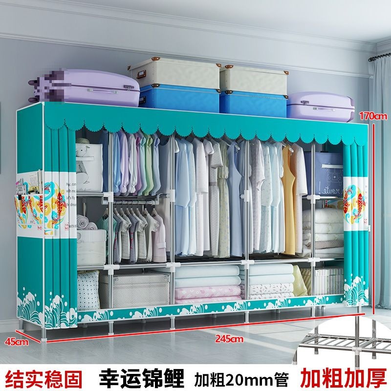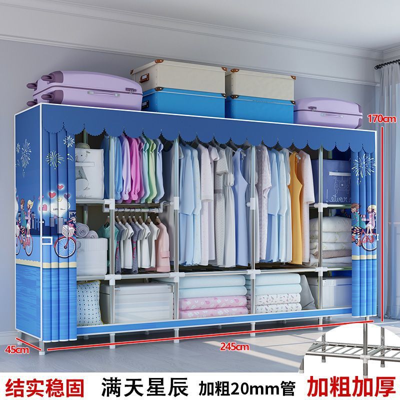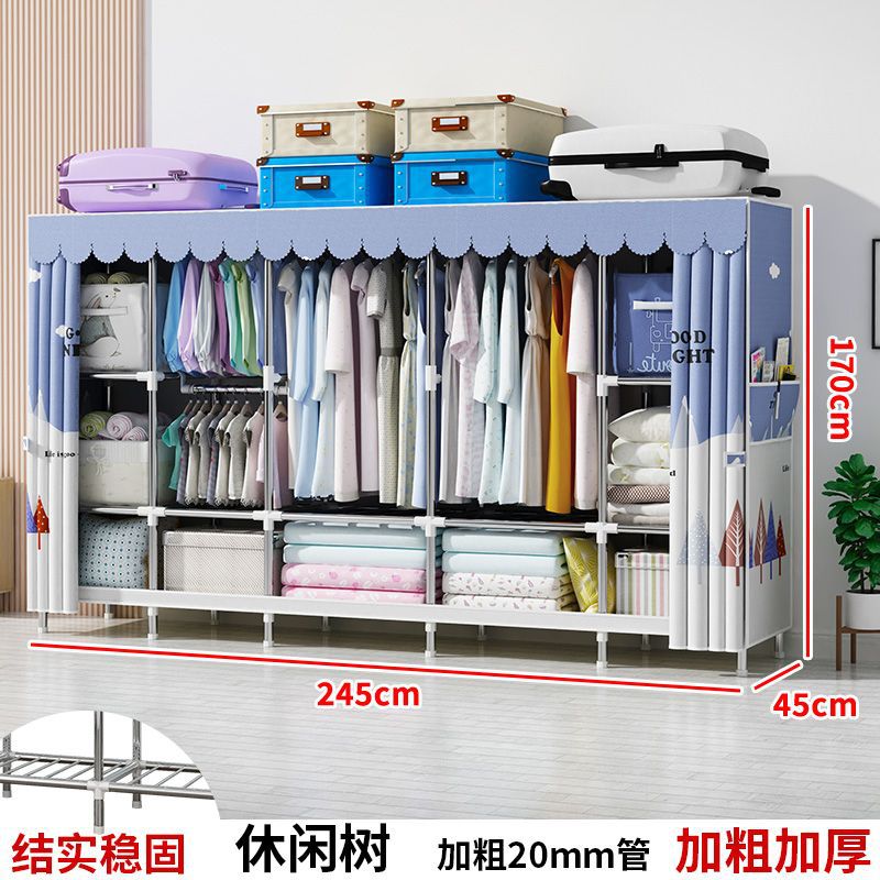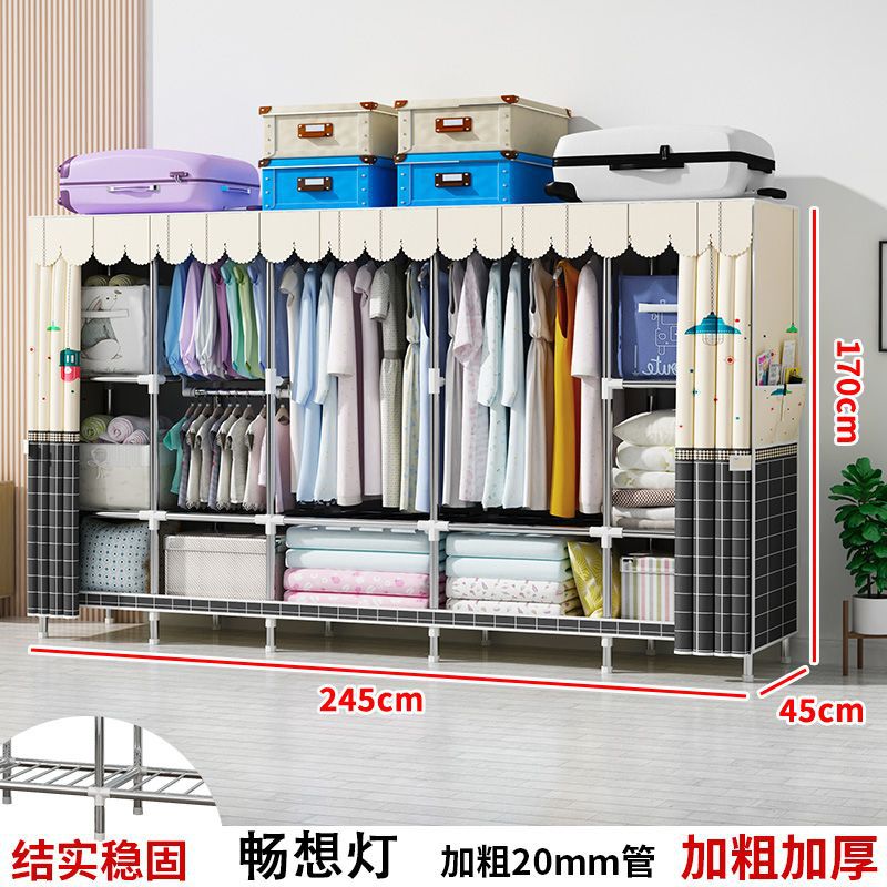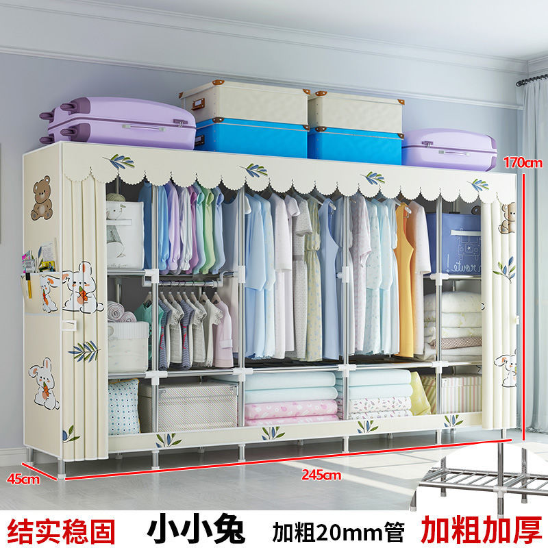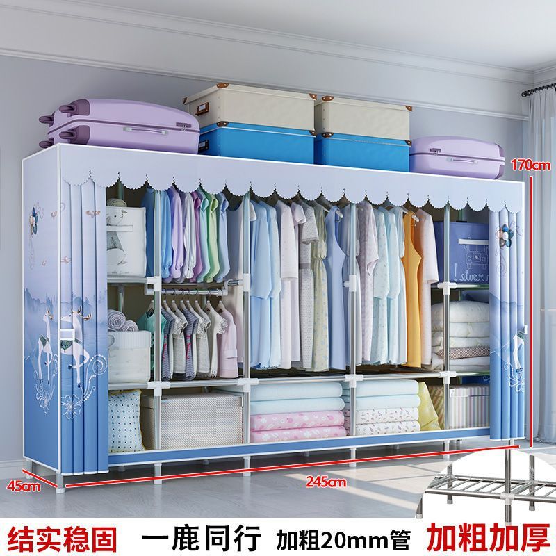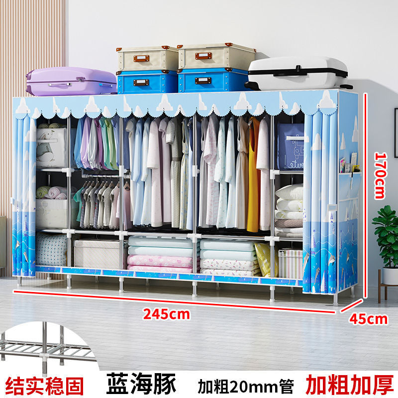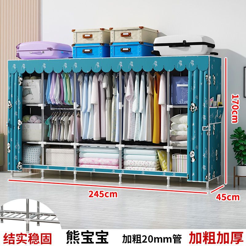가정용 침실용 간이 천 옷장 전체 강철 파이프 프레임 바닥에서 천장까지 옷걸이 렌탈 룸 옷장 수납 옷장스토어 가기