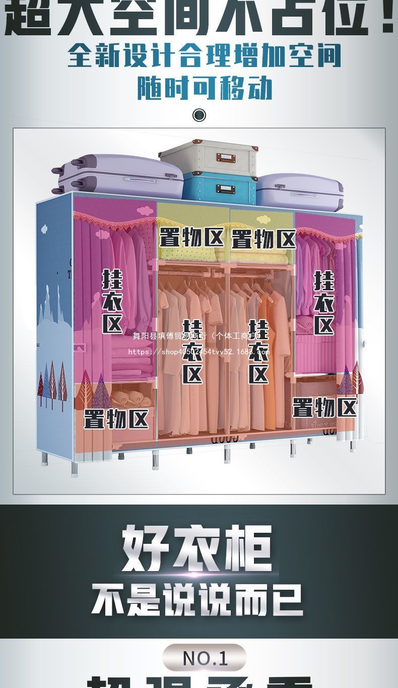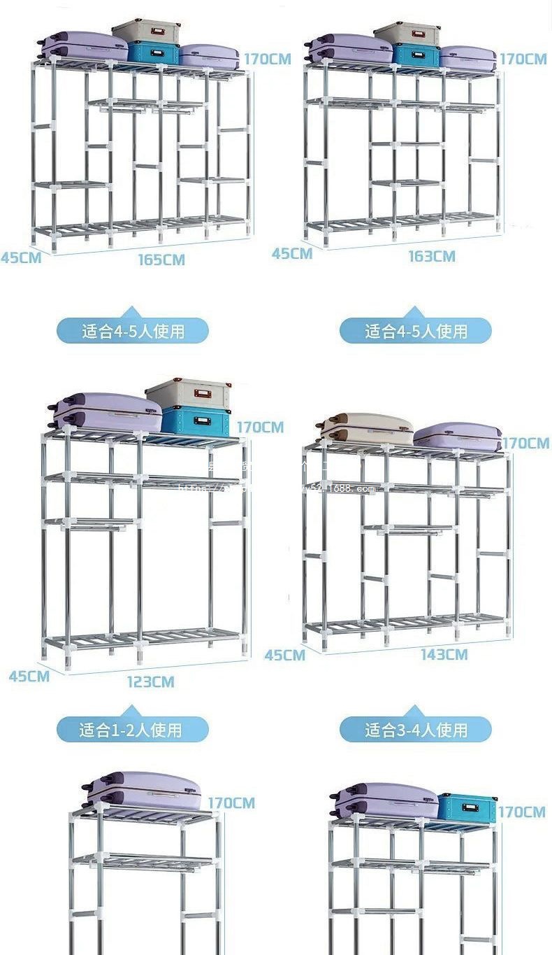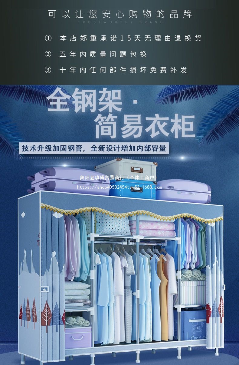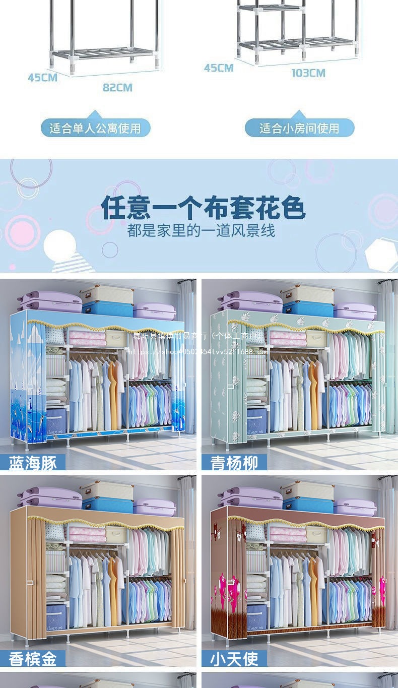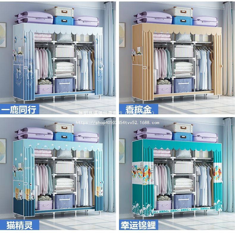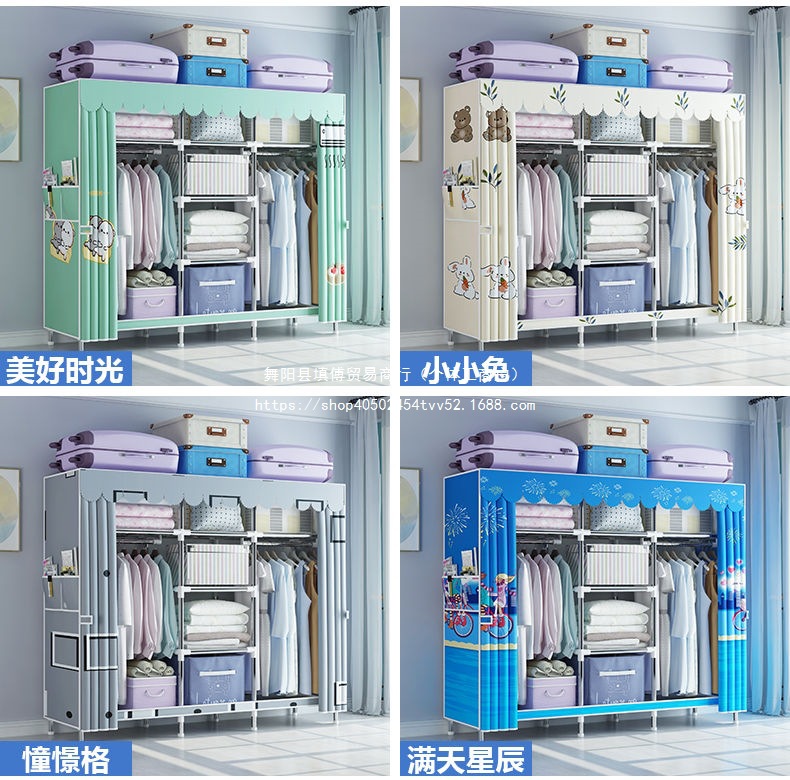 가정용 침실용 간이 천 옷장 전체 강철 파이프 프레임 바닥에서 천장까지 옷걸이 렌탈 룸 옷장 수납 옷장스토어 가기