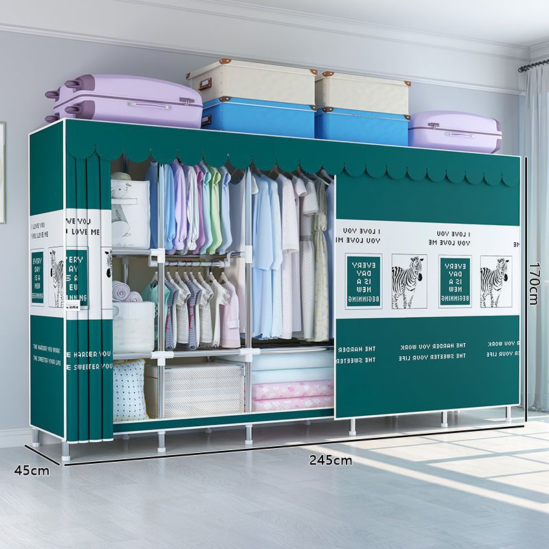 가정용 침실용 간이 천 옷장 전체 강철 파이프 프레임 바닥에서 천장까지 옷걸이 렌탈 룸 옷장 수납 옷장