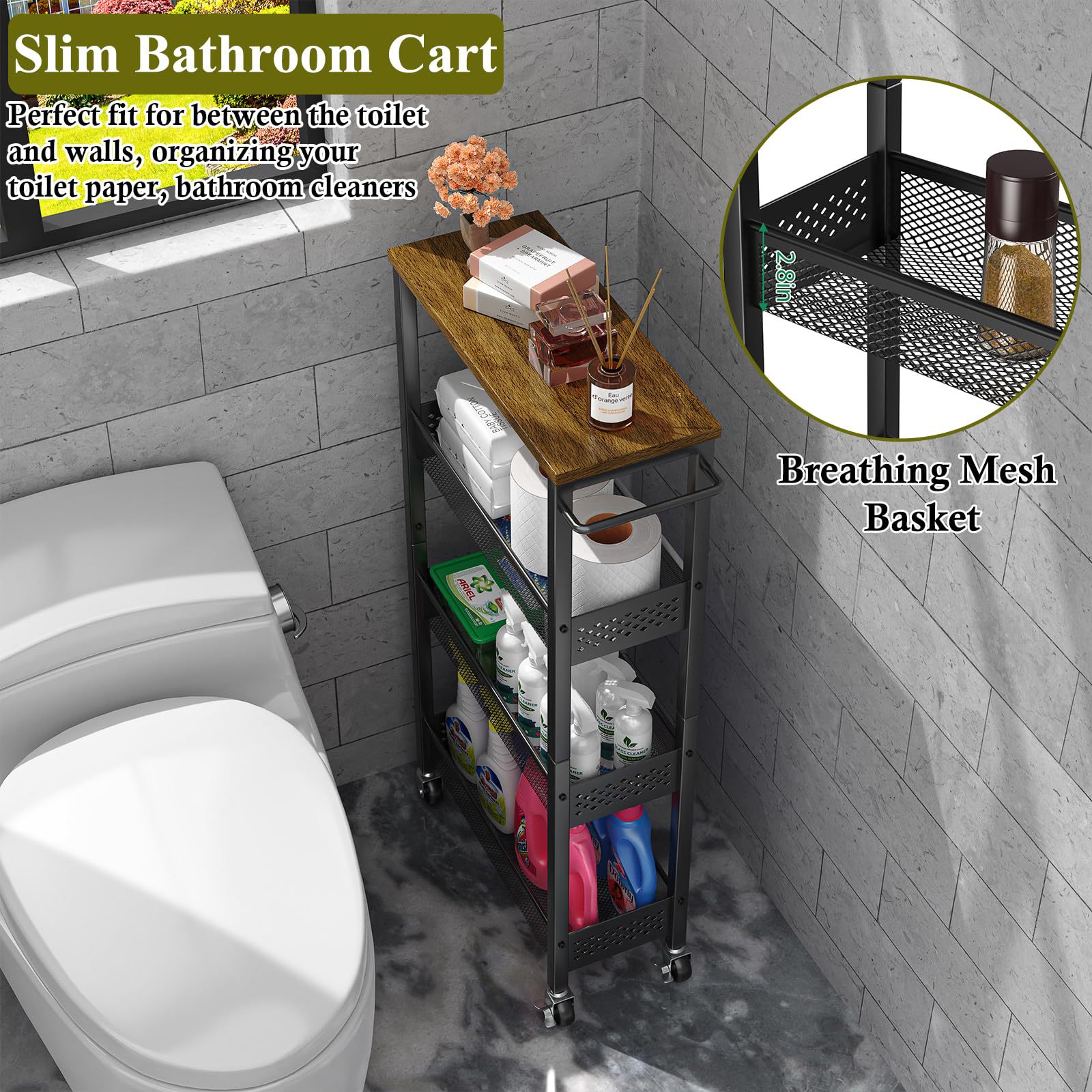 맞춤 제작된 아마존 인기 슬림형 수납카트, 다층 좁은 틈새 금속 좁은 욕실 수납 선반