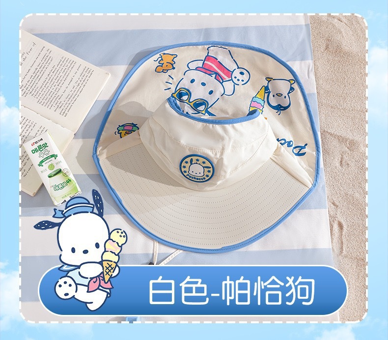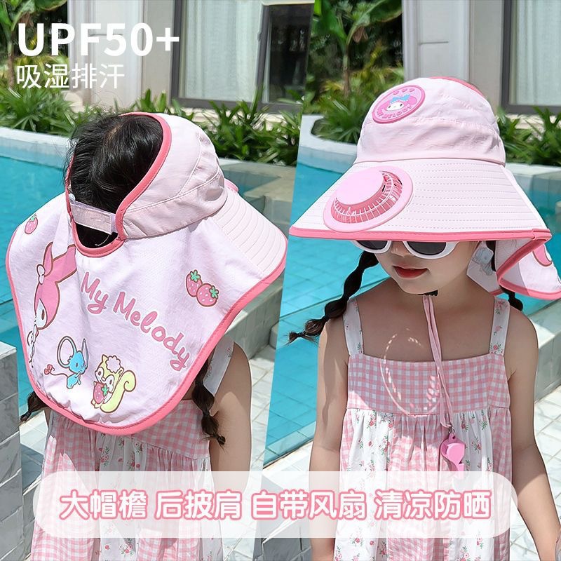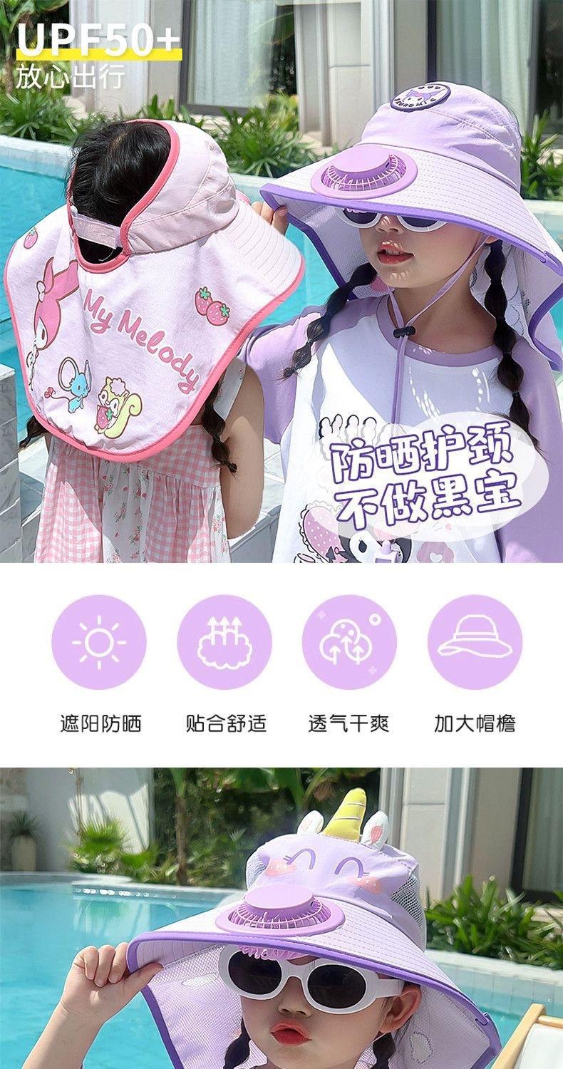여름 나들이를 위한 팬이 있는 어린이 귀여운 만화 자외선 차단 모자, 남성과 여성을 위한 큰 챙이 있는 양산 숄 모자