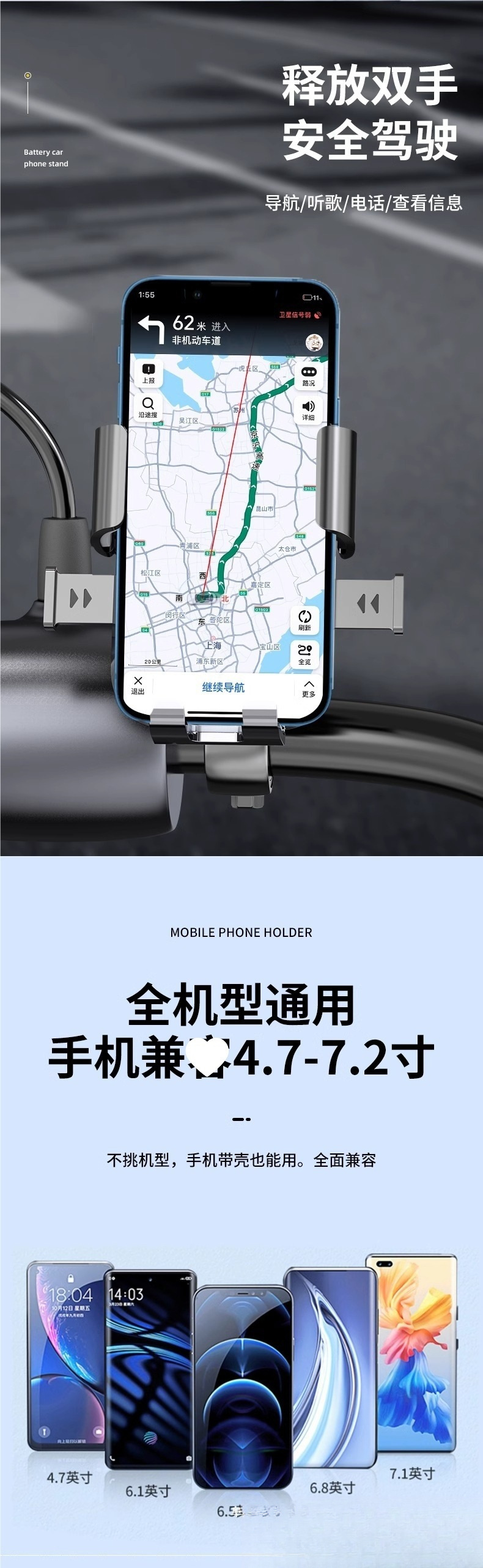 새로운 전기 휴대 전화 홀더 산악 사이클링 손떨림 방지 배터리 전기 자동차 오토바이 자전거 휴대 전화 홀더 플라스틱스토어 가기