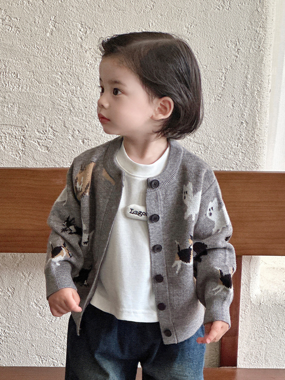 아기 소년 아동 의류 니트 강아지 만화 카디건 티셔츠 청바지 3 피스 세트 유아 봄, 가을 정장 외출복스토어 가기