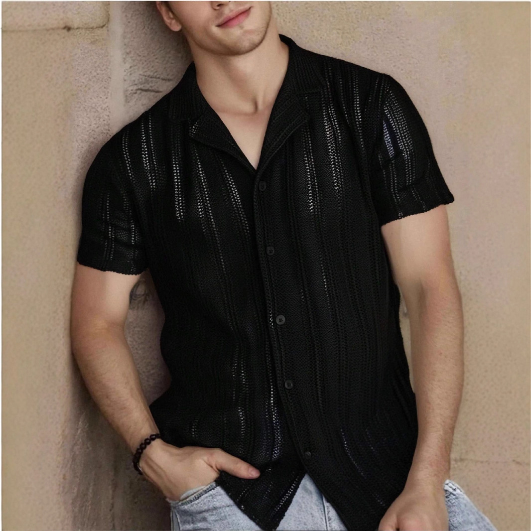유럽과 미국 남성 캐주얼 니트 가디건 봄, 가을 시원한 중공 반팔 남성 셔츠 남성 화이트 탑스토어 가기