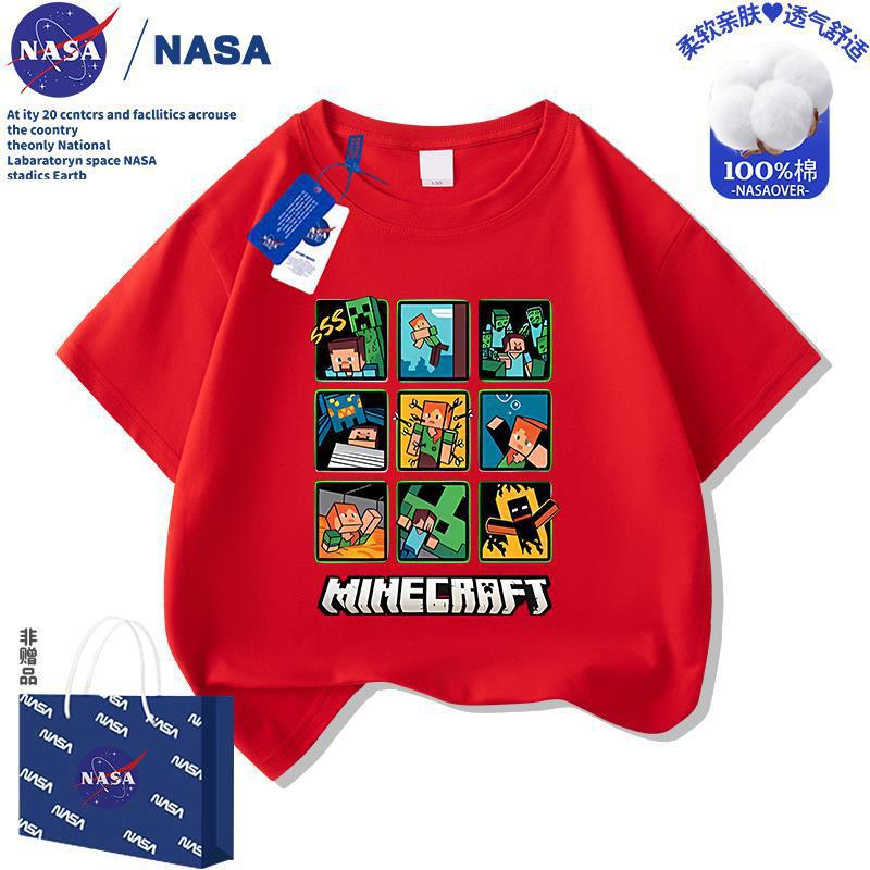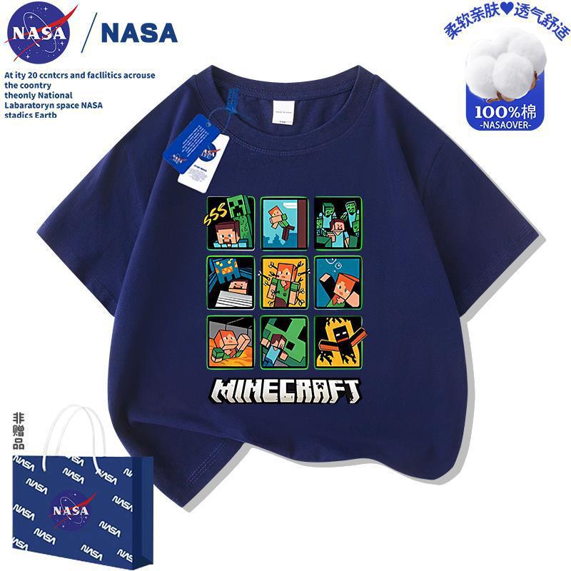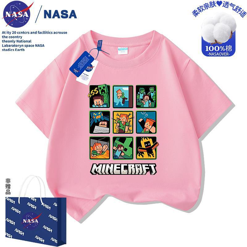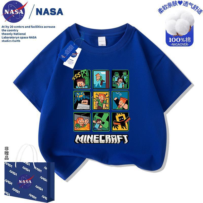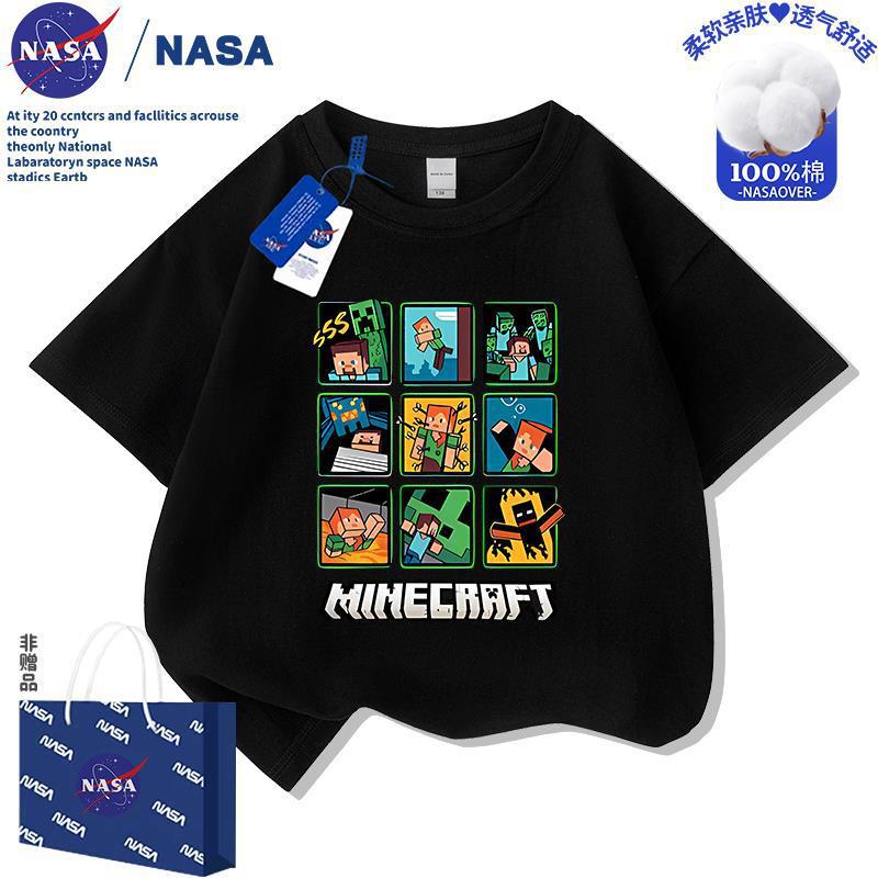 NASA 마인 크래프트 어린이 만화 순면 반팔 티셔츠 여름 새 소년 소녀 의류 멋진 여름상의