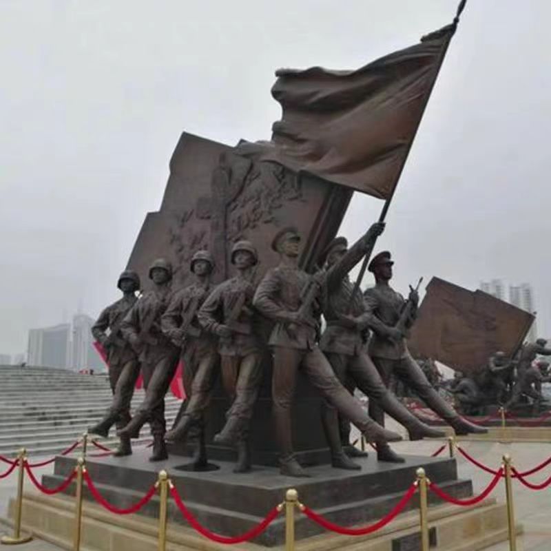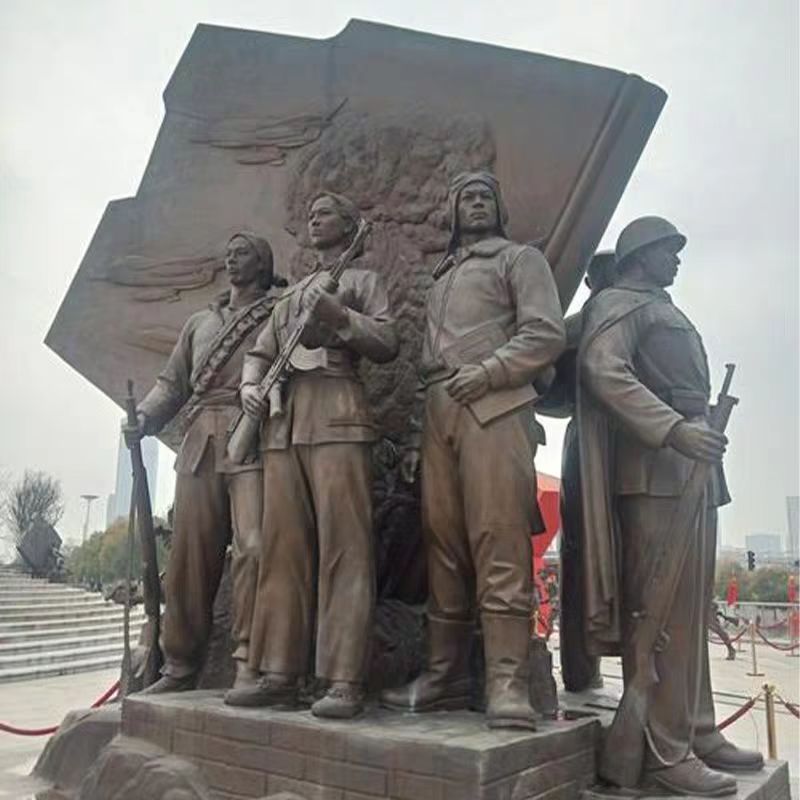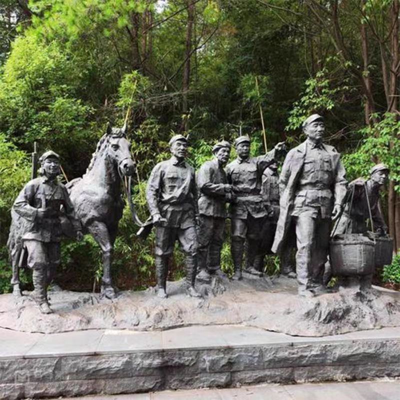 야외 FRP 붉은 군대 조각 혁명 군인 동상 붉은 문화 테마 구리 조각 주조 구리 피규어 휴대용