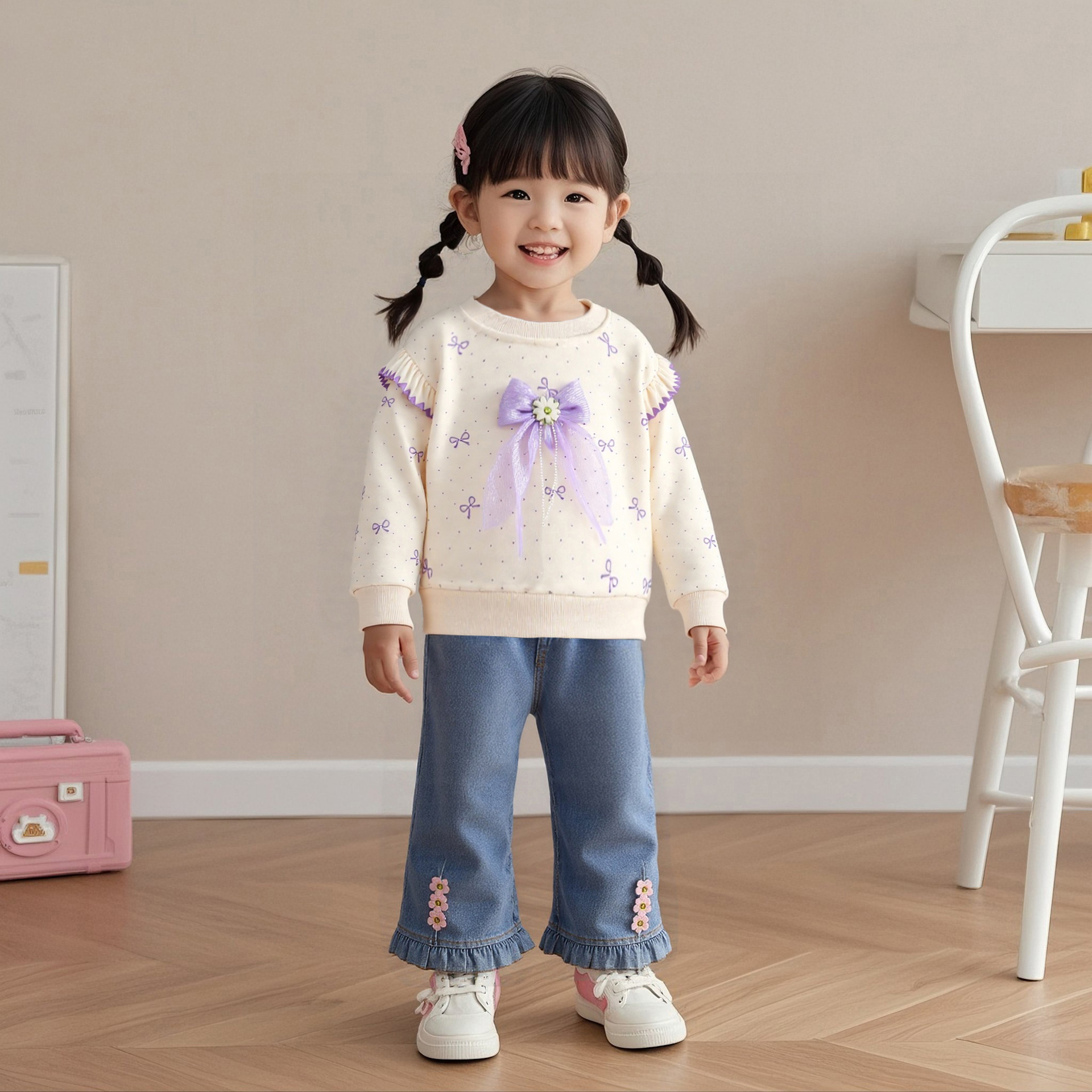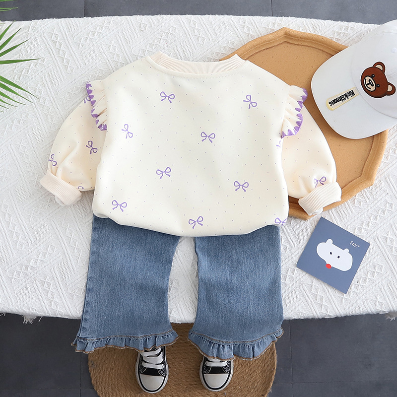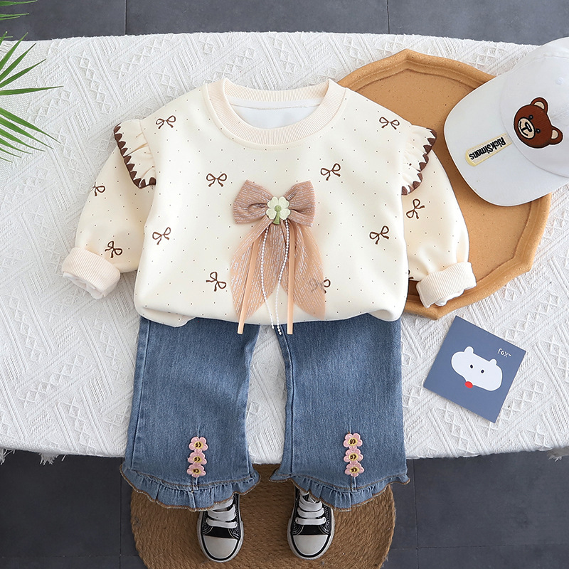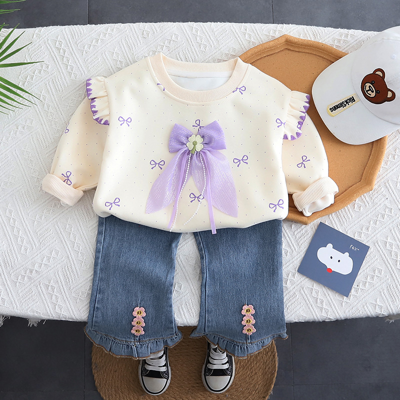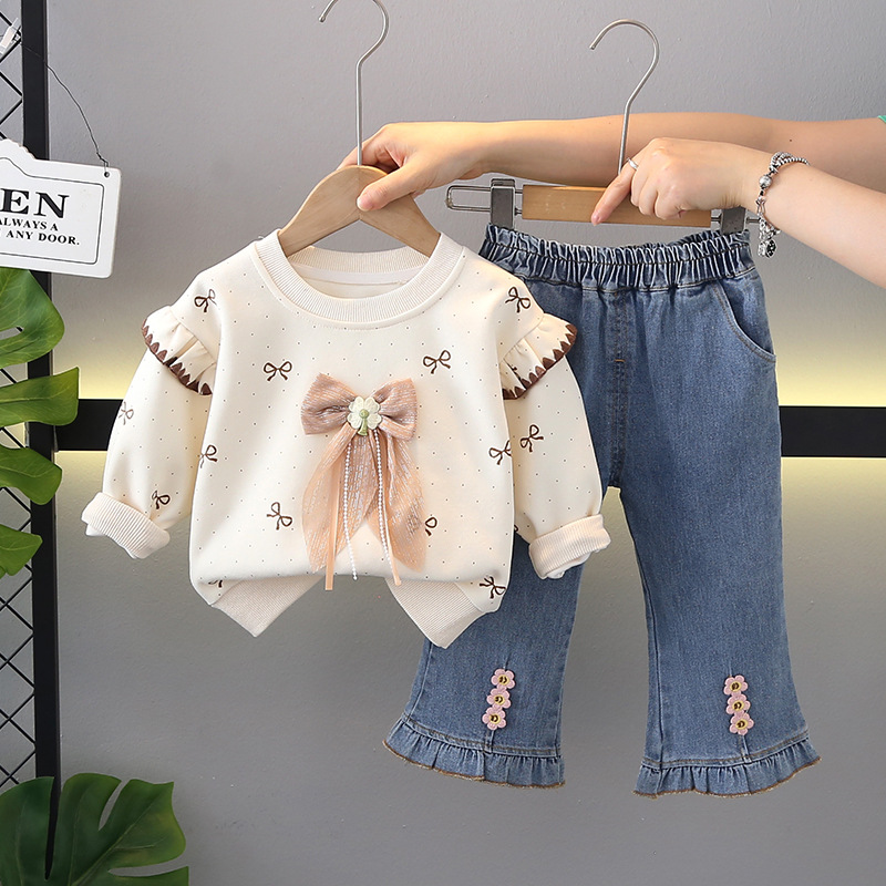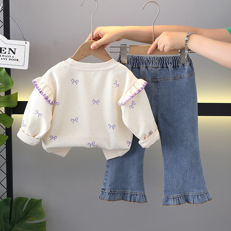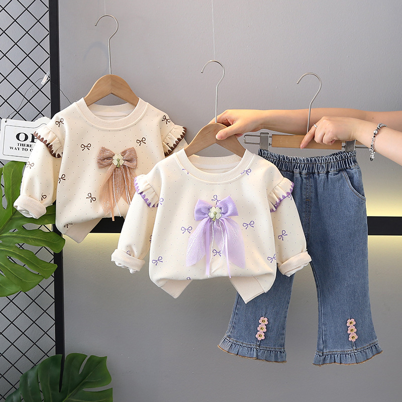 여자 가을 라운드 넥 양복 2025 새로운 어린이 아기 유행 봄, 가을 활 레이스 스웨트 투피스 세트스토어 가기