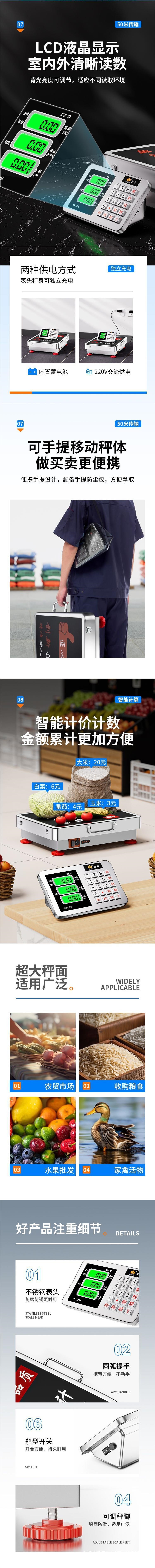 새로운 300kg 무선 전자 저울 상업용 600kg 분리형 저울 100kg 분할 휴대용 저울스토어 가기