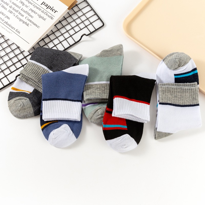 남성용 양말 새로운 가을 새로운 줄무늬 색상 매칭 스포츠 스타일 남성용 중간 길이 귀 안경 스타일 땀 흡수 및 통기성 남성용 중간 길이