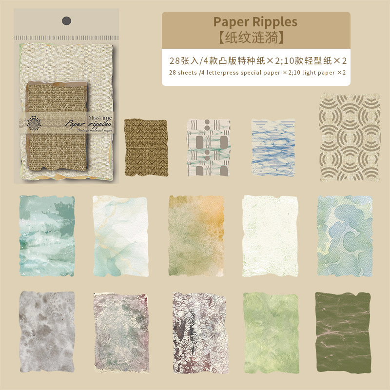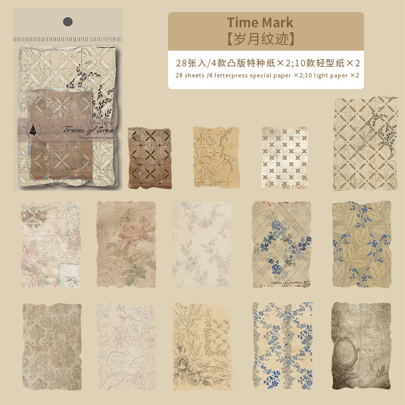 라이트 컬렉션 패브릭 페이퍼 펀 시리즈 소재 종이 28장 복고풍 질감 핸드북 장식 콜라주 소재 6종