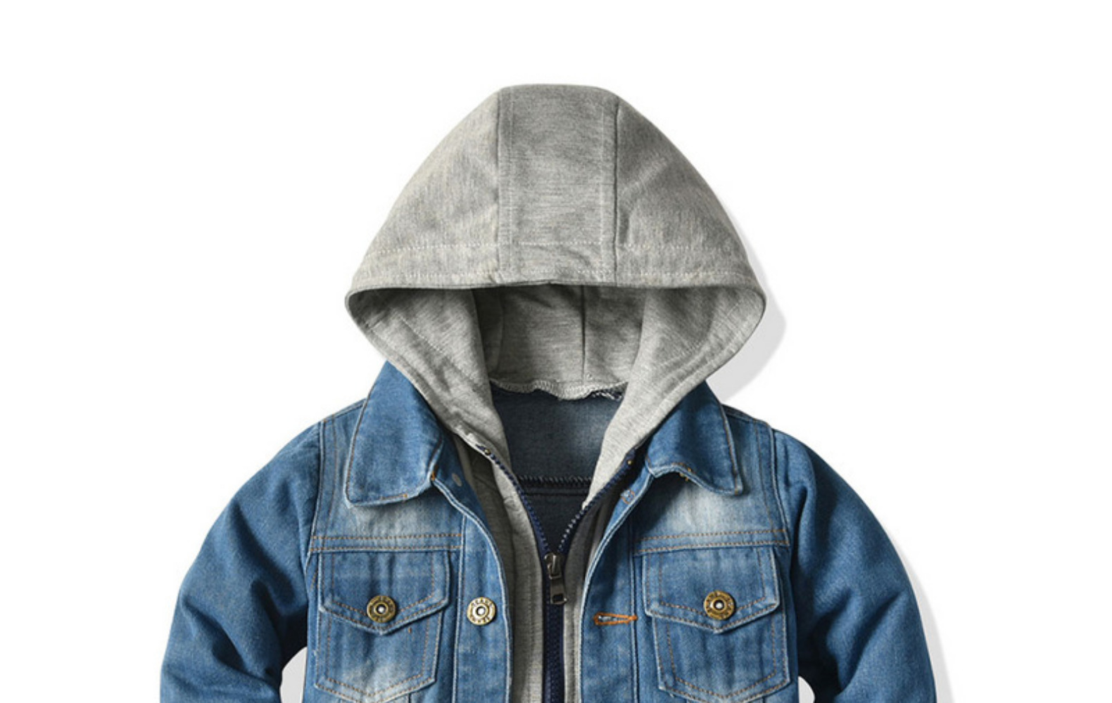 2025 소년의 새로운 데님 재킷 봄, 가을 한국 스타일 후드 데님 지퍼 셔츠 패션 캐주얼 아동 의류 유행 도매스토어 가기