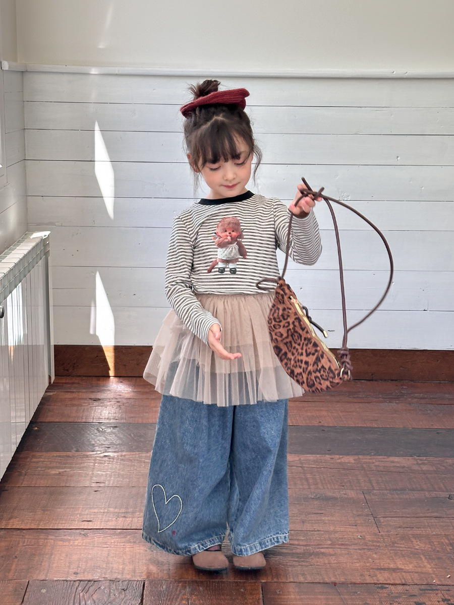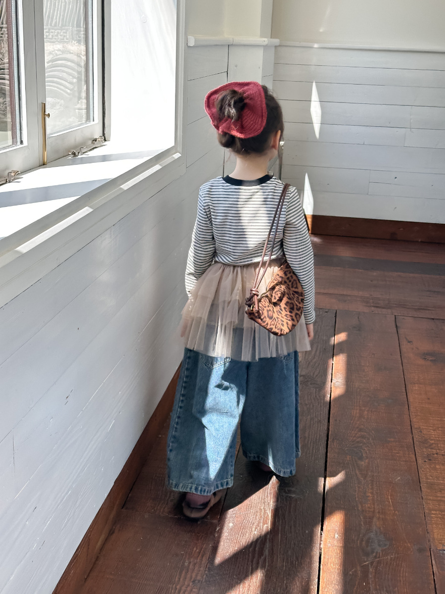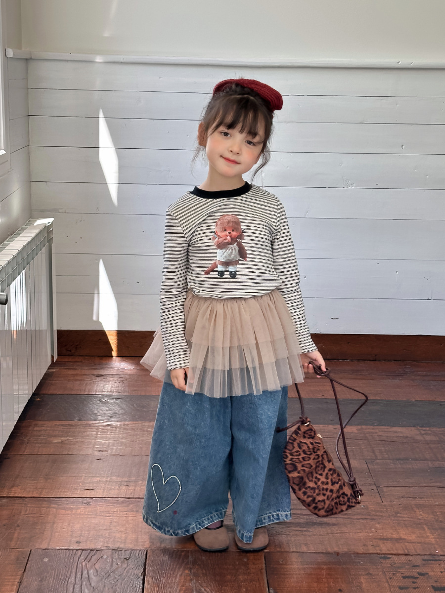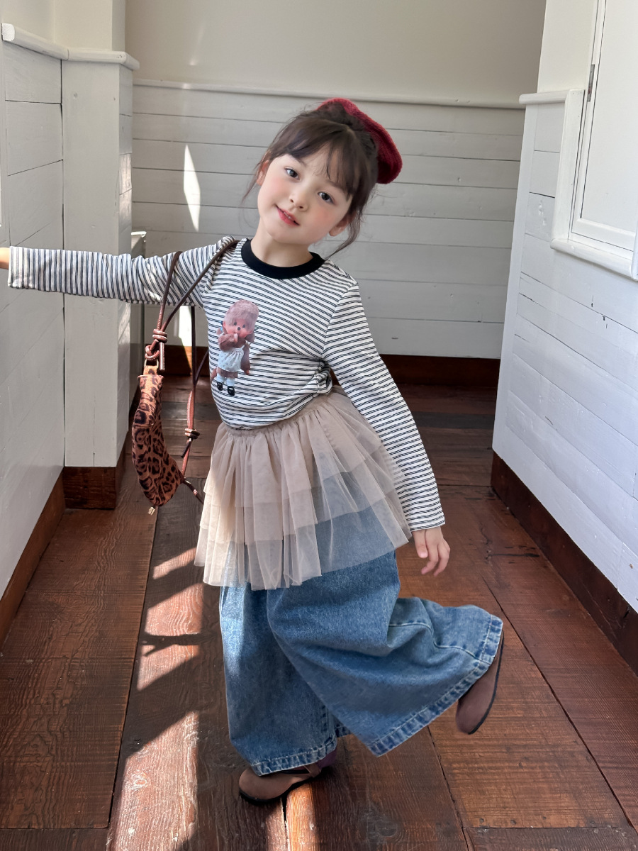 Duochen 2025 가을 아동복 한국 스타일 청바지 소녀와 어린이를위한 새로운 데님 와이드 레그 바지 거즈 스커트