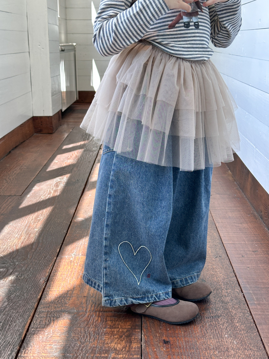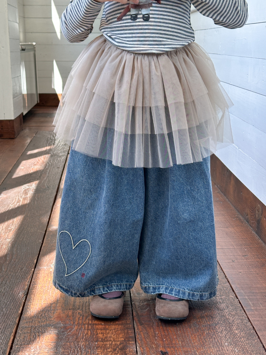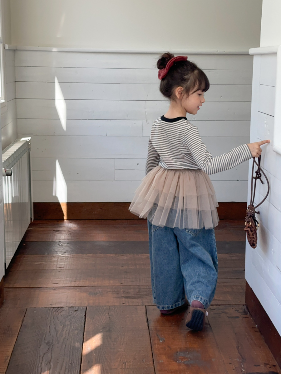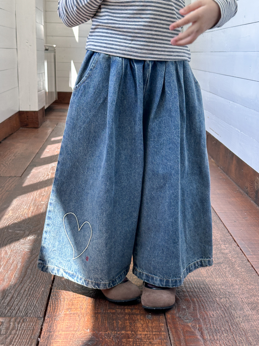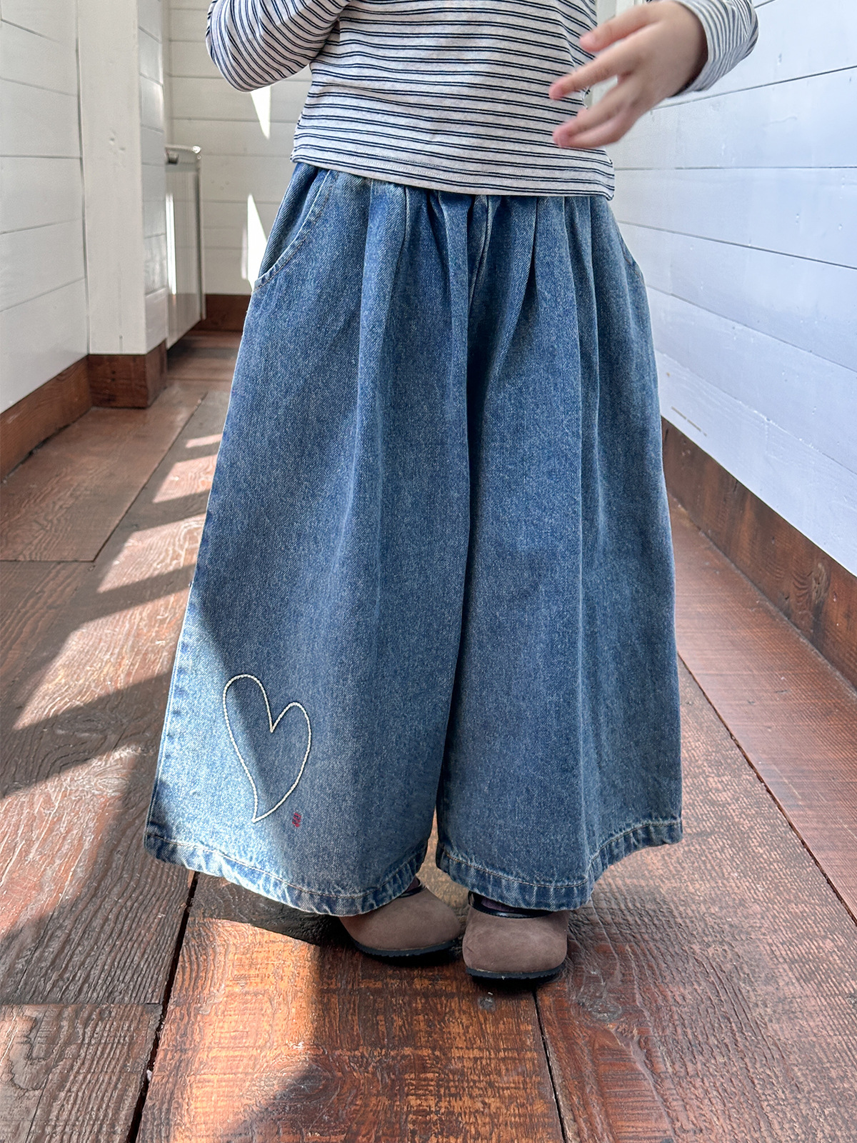 Duochen 2025 가을 아동복 한국 스타일 청바지 소녀와 어린이를위한 새로운 데님 와이드 레그 바지 거즈 스커트스토어 가기