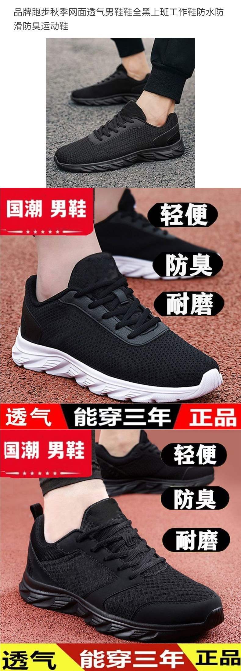 브랜드 러닝 메쉬 통기성 남성 신발 올 블랙 작업 신발 방수 미끄럼 방지 운동화 여름 신발스토어 가기