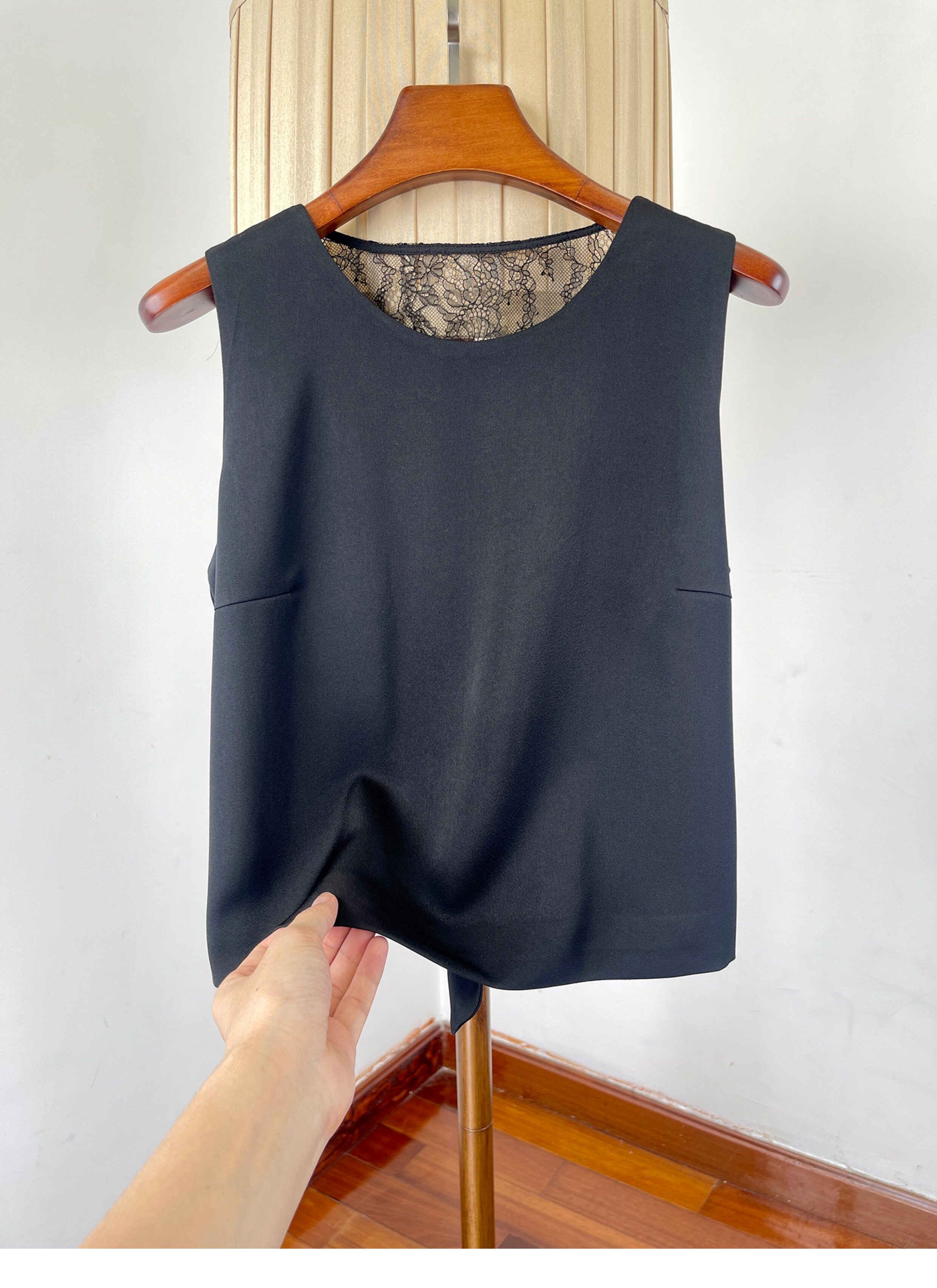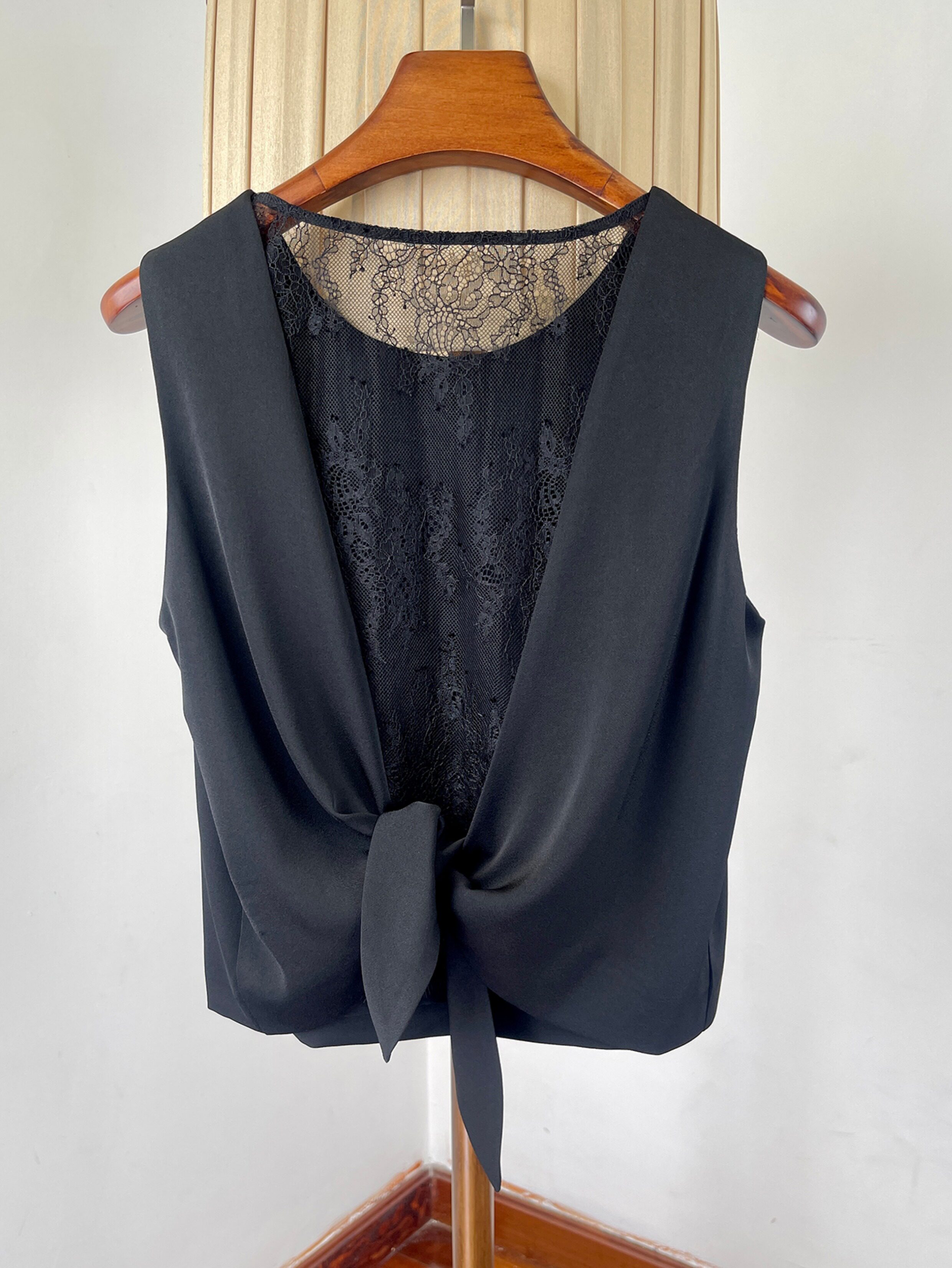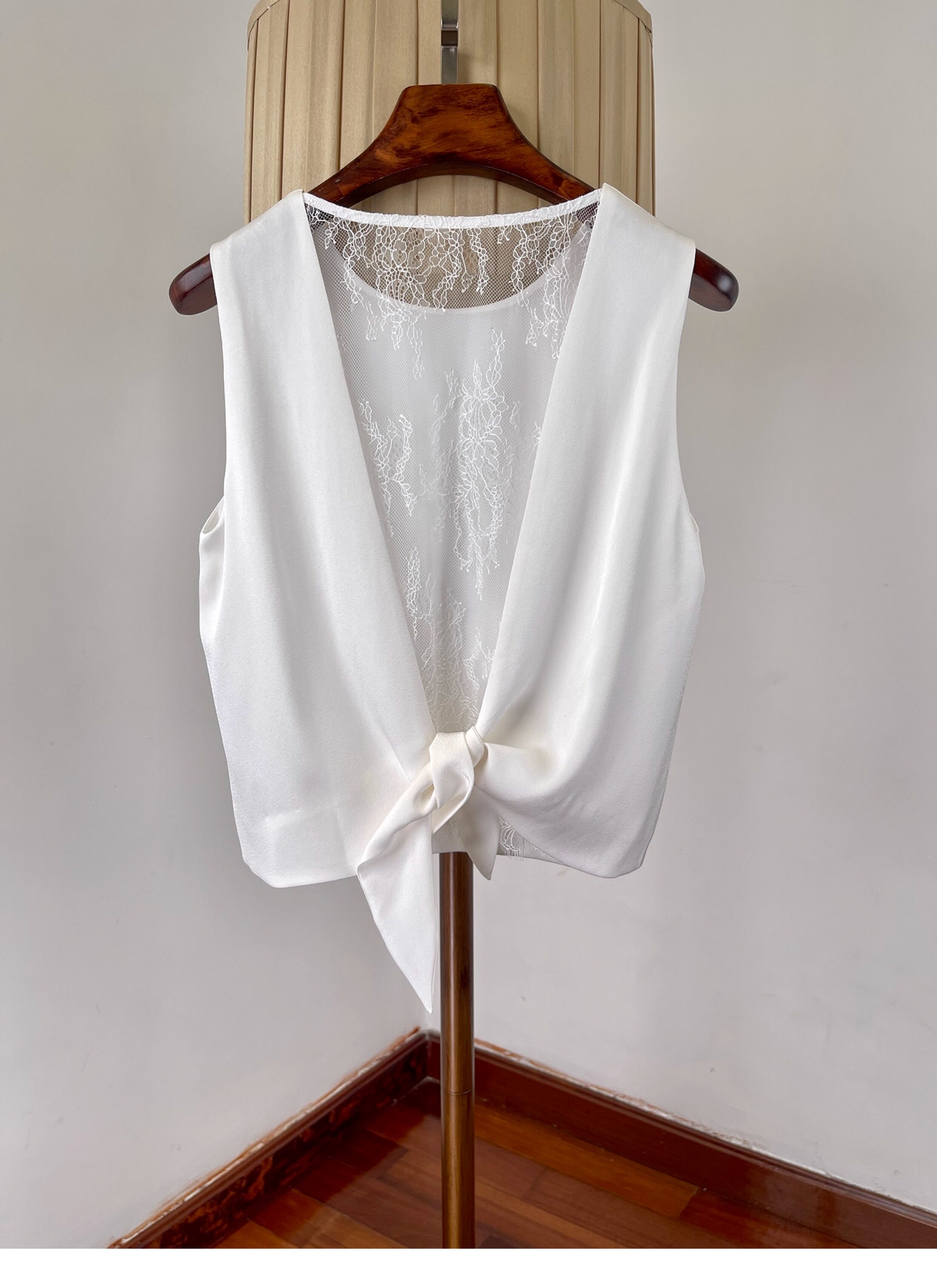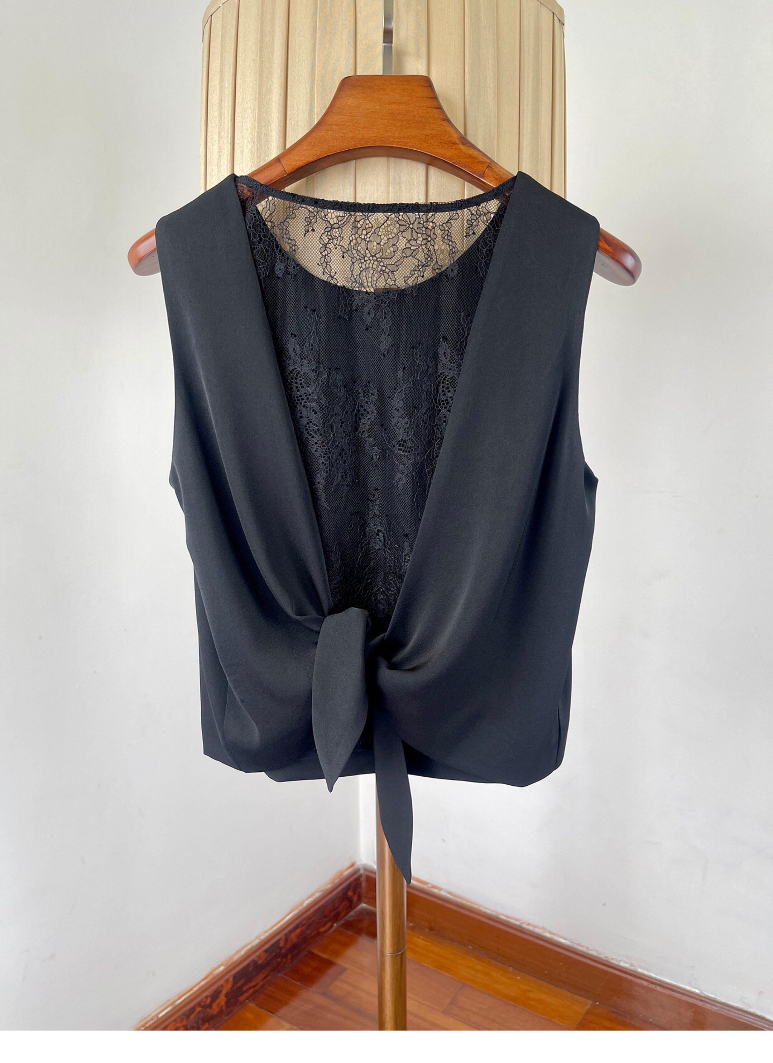 여성을위한 백리스 중공 디자인 아세테이트 린넨 민소매 조끼 여름 얇은 통기성 올드 머니 스타일 레이스 짧은 탑