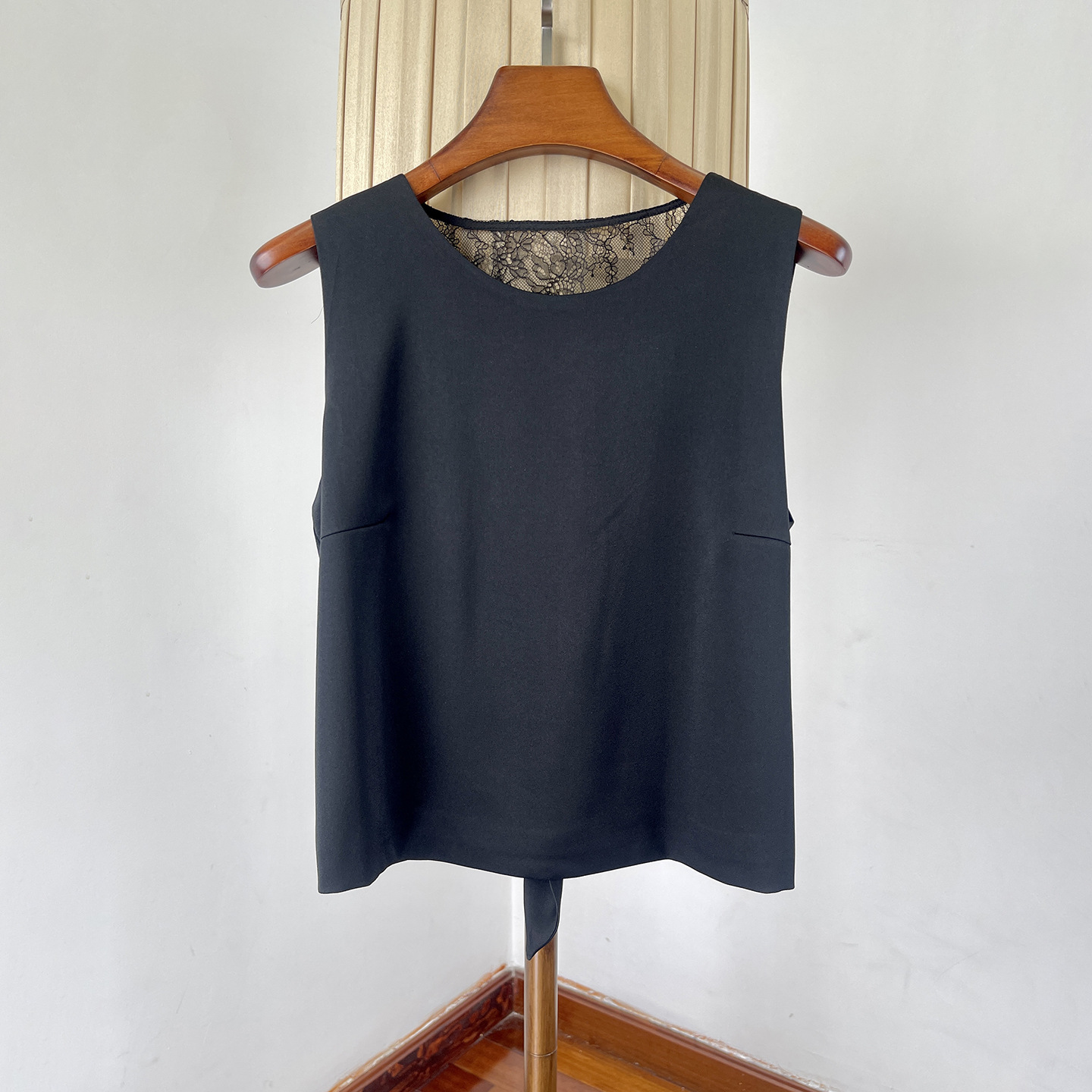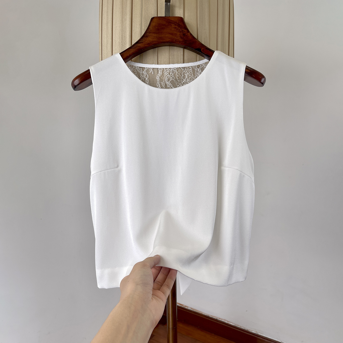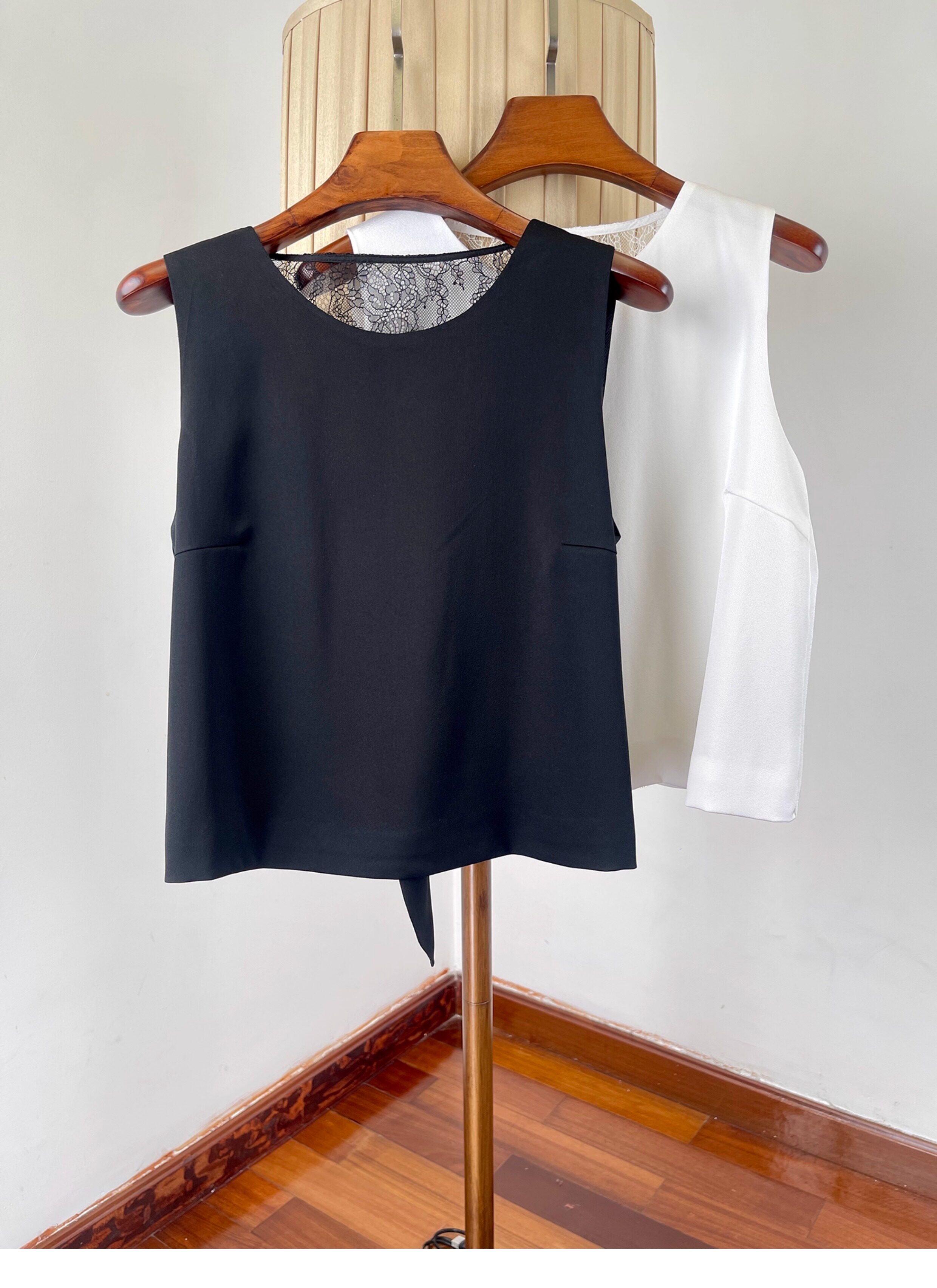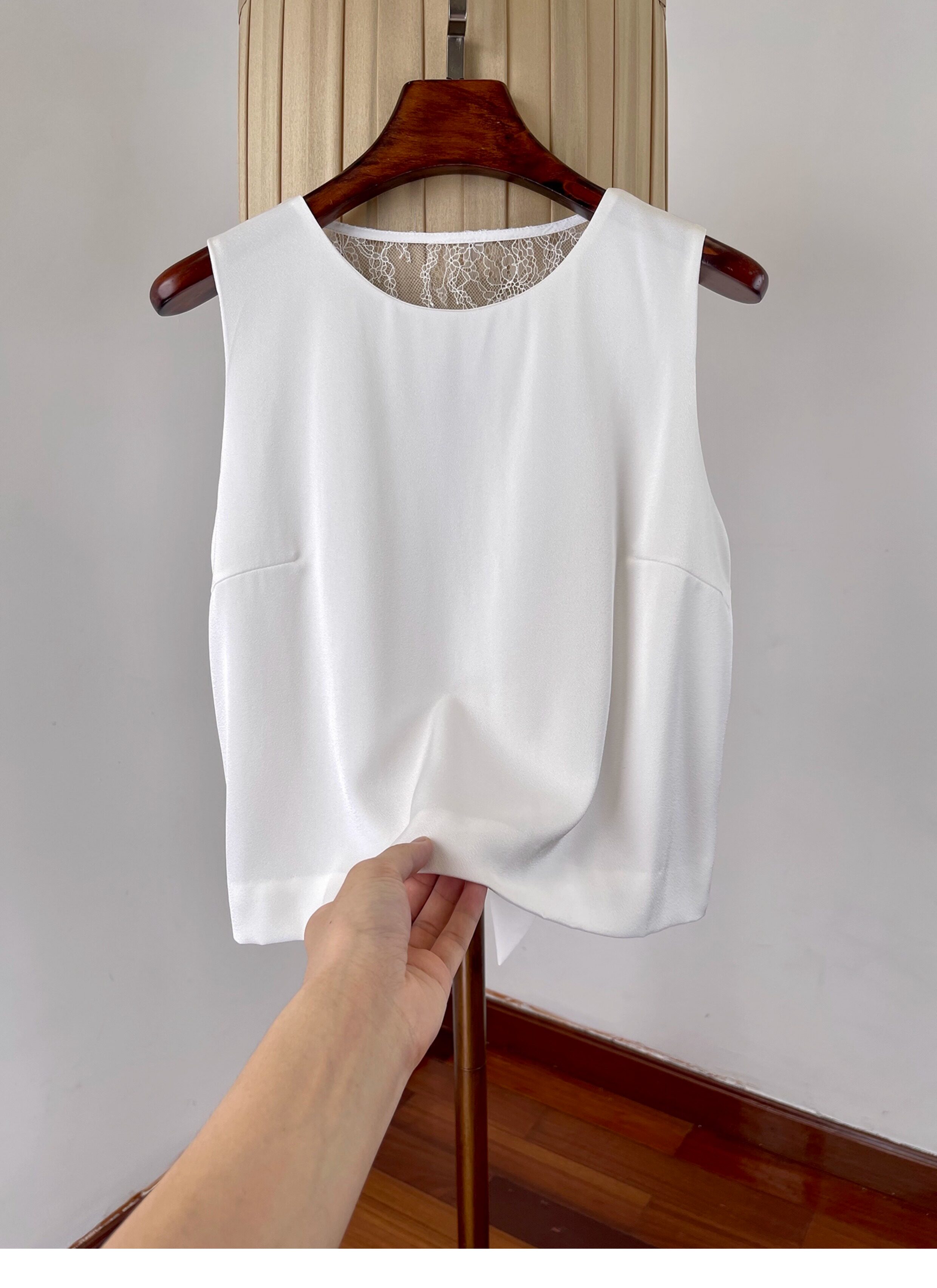 여성을위한 백리스 중공 디자인 아세테이트 린넨 민소매 조끼 여름 얇은 통기성 올드 머니 스타일 레이스 짧은 탑