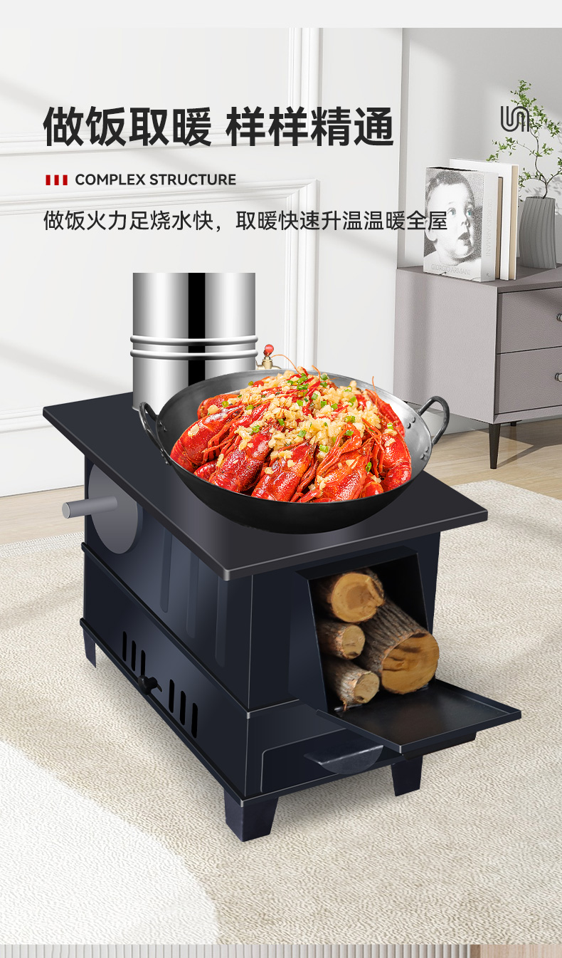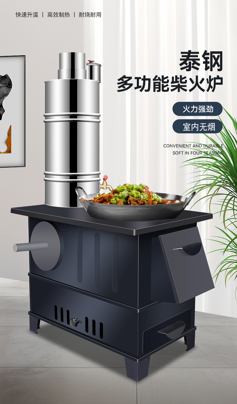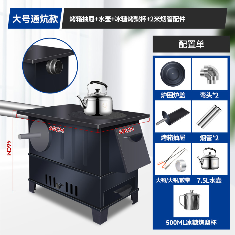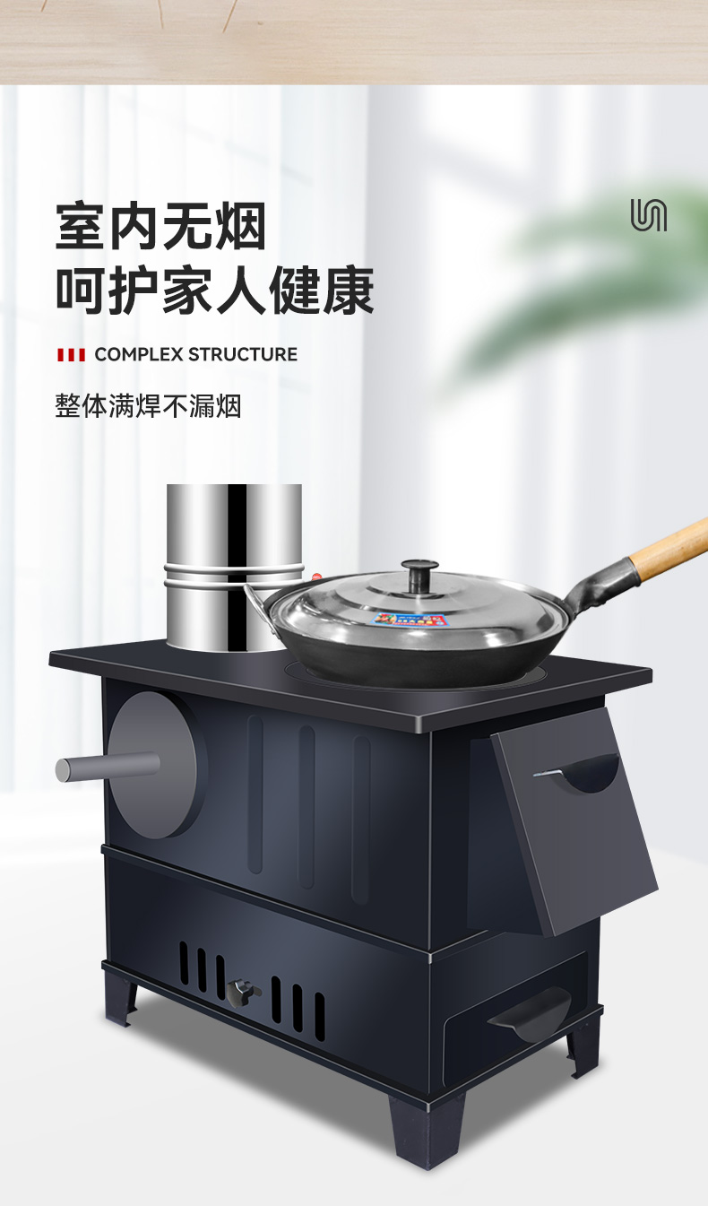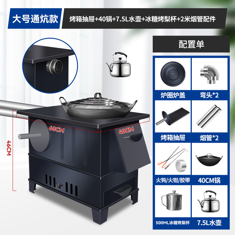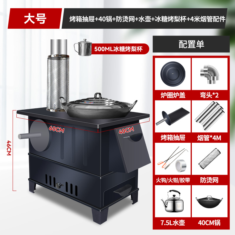 새로운 장작 난로, 가정용 겨울 실내 난방 난로, 무연 농촌 난로, 가정용 이동식 대형 냄비스토어 가기