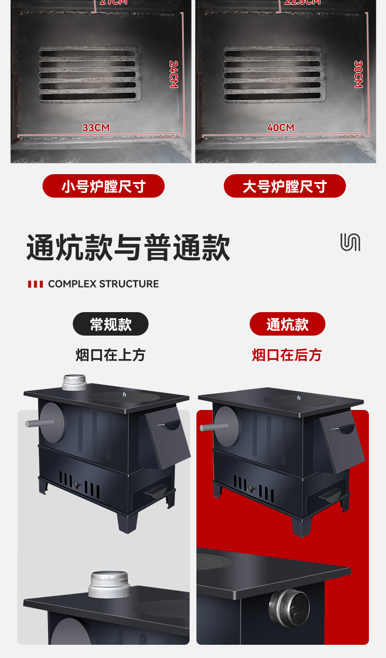 새로운 장작 난로, 가정용 겨울 실내 난방 난로, 무연 농촌 난로, 가정용 이동식 대형 냄비