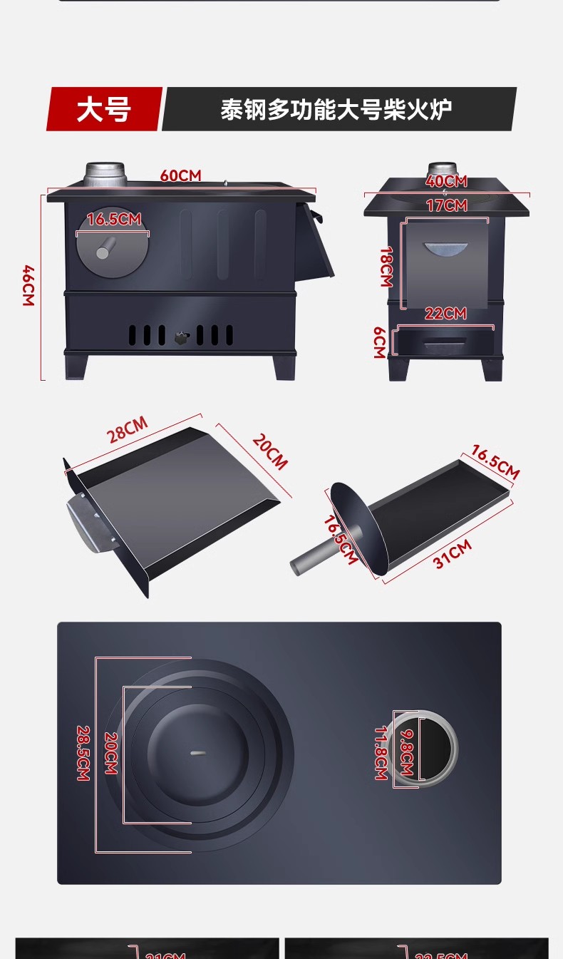 • 대형 스토브 + 4m 파이프 + 액세서리 + 물 탱크 + 주전자