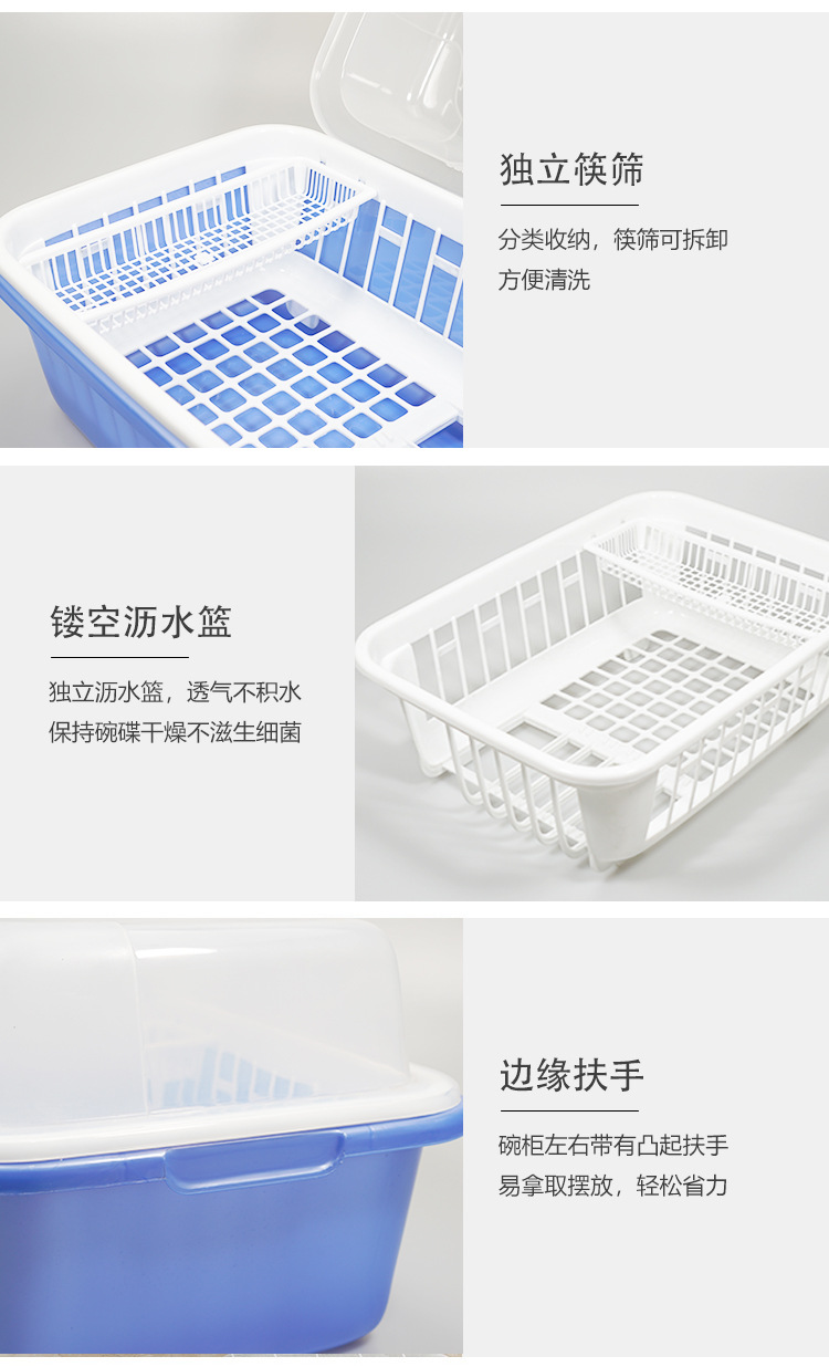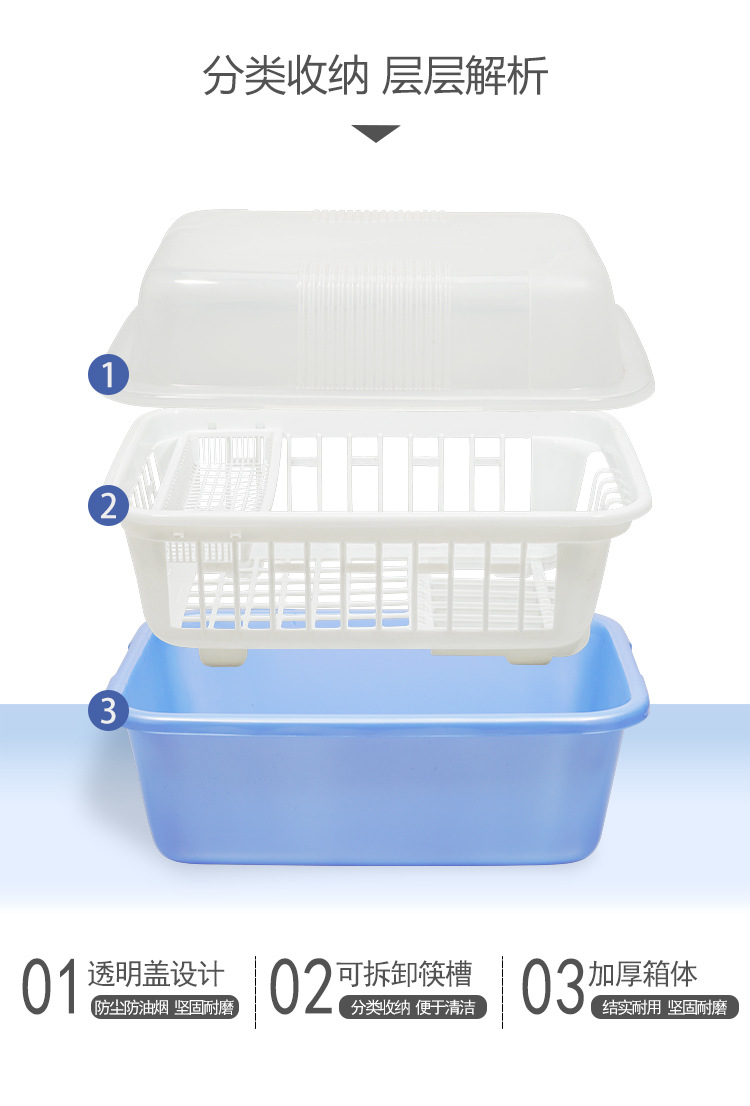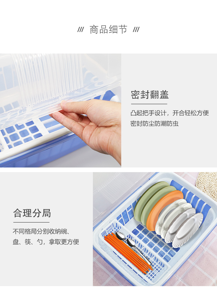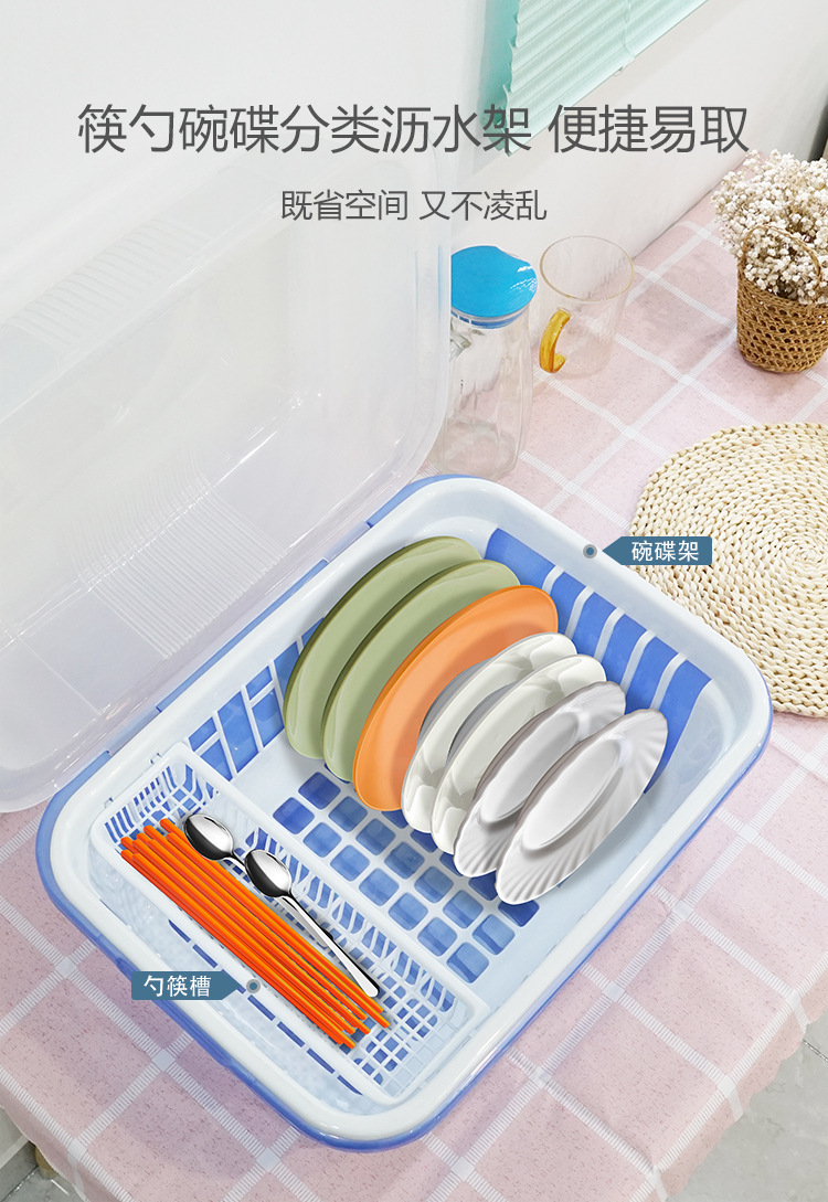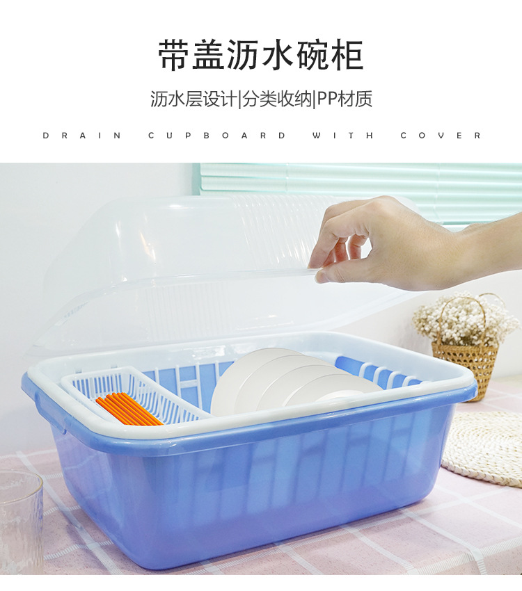 Shunxing 주방 찬장 플라스틱 그릇 랙 식기류 및 식기류 보관 상자 뚜껑이 있는 방진 보관 랙