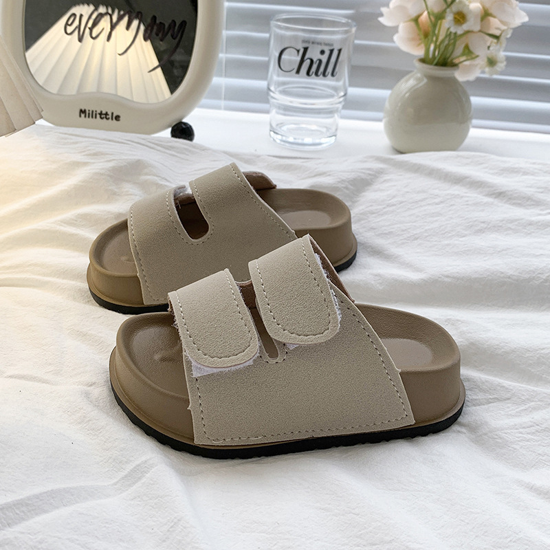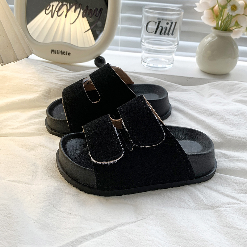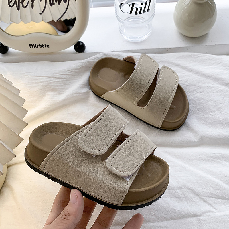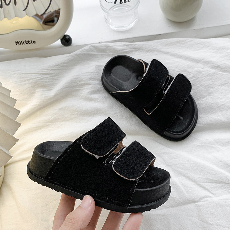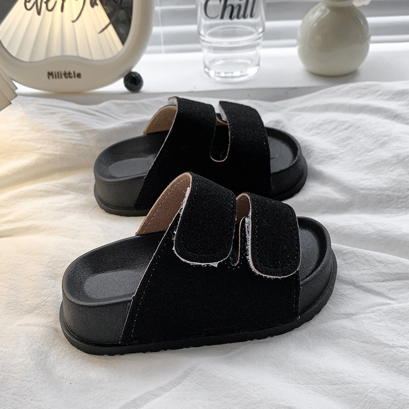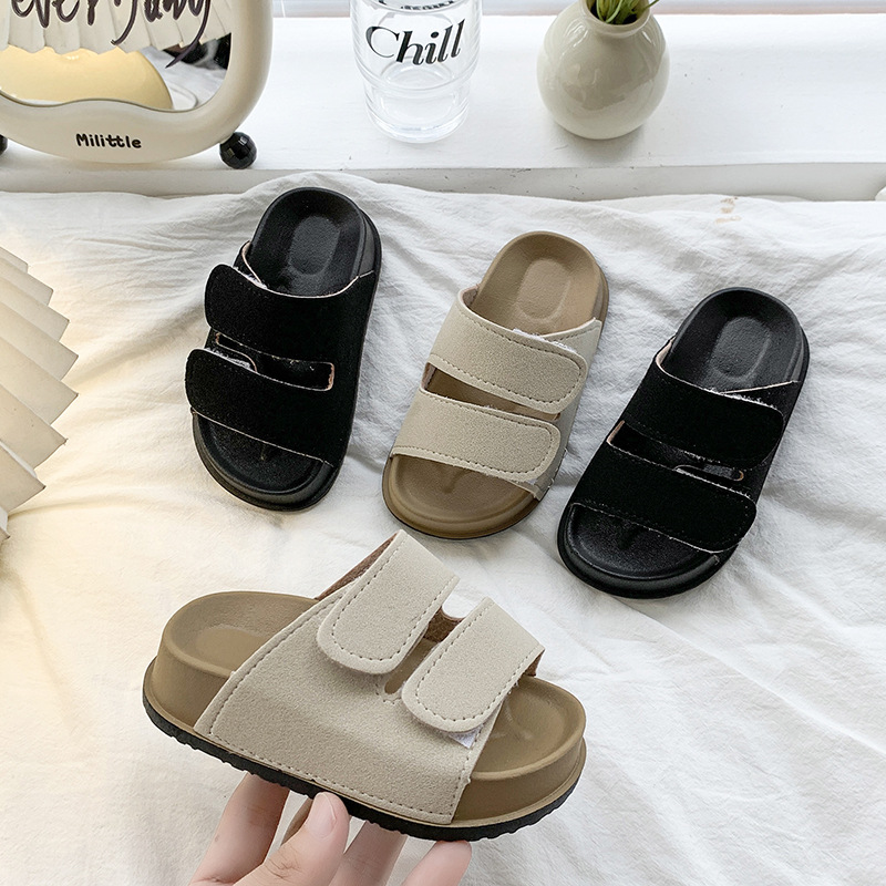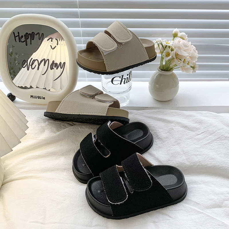 남성과 여성을 위한 세련된 아동용 두꺼운 밑창 슬리퍼, 트렌디한 아우터웨어, 벨크로 오픈 토 비켄 슈즈, 중대형 아동용 반슬리퍼 도매스토어 가기