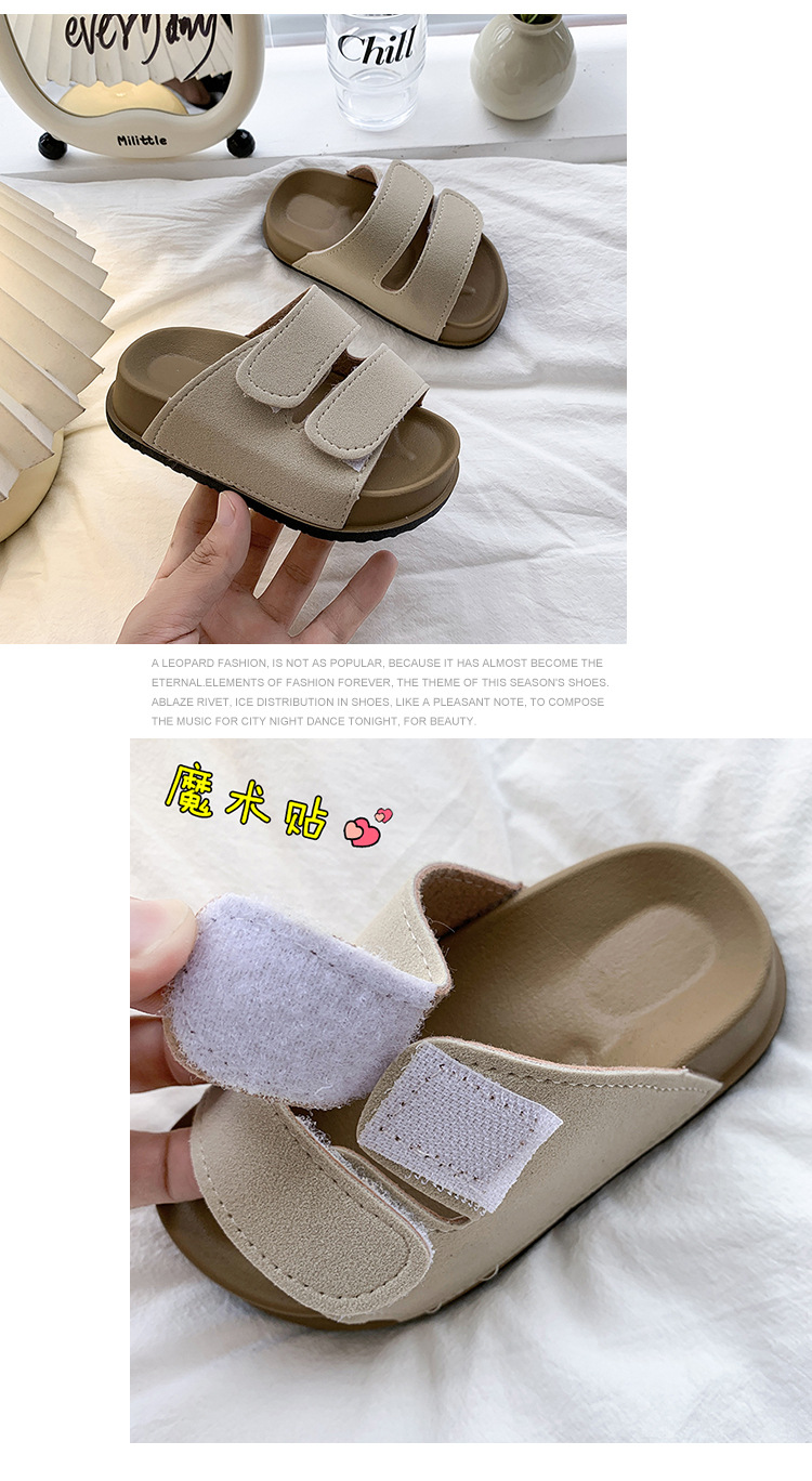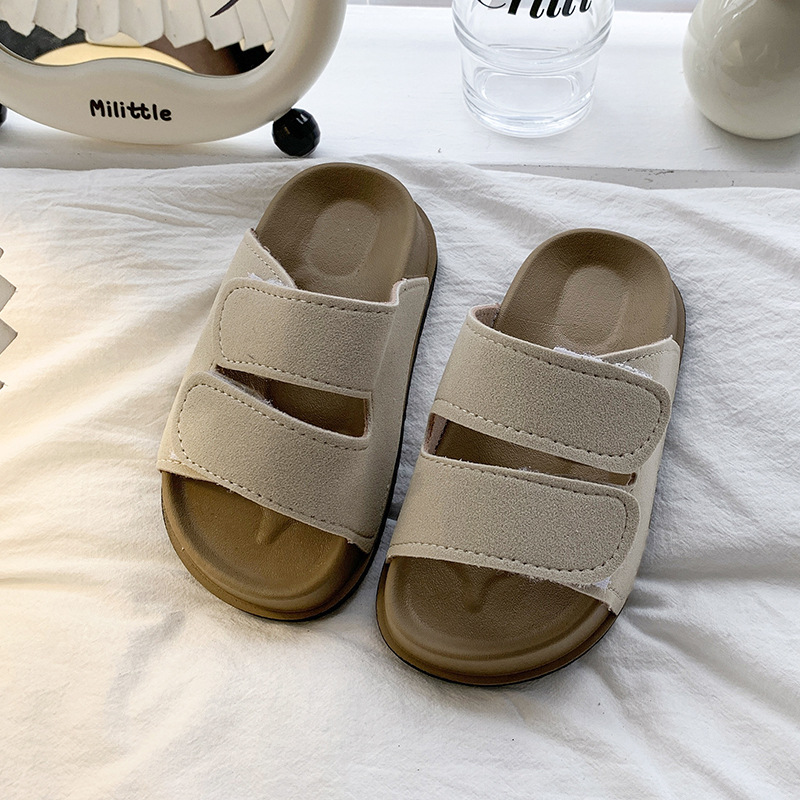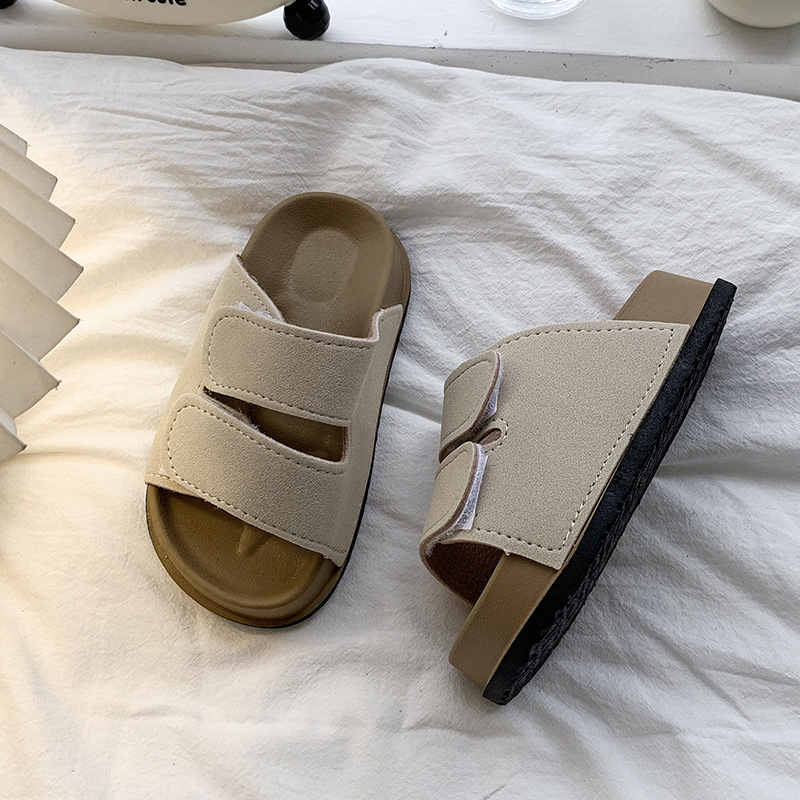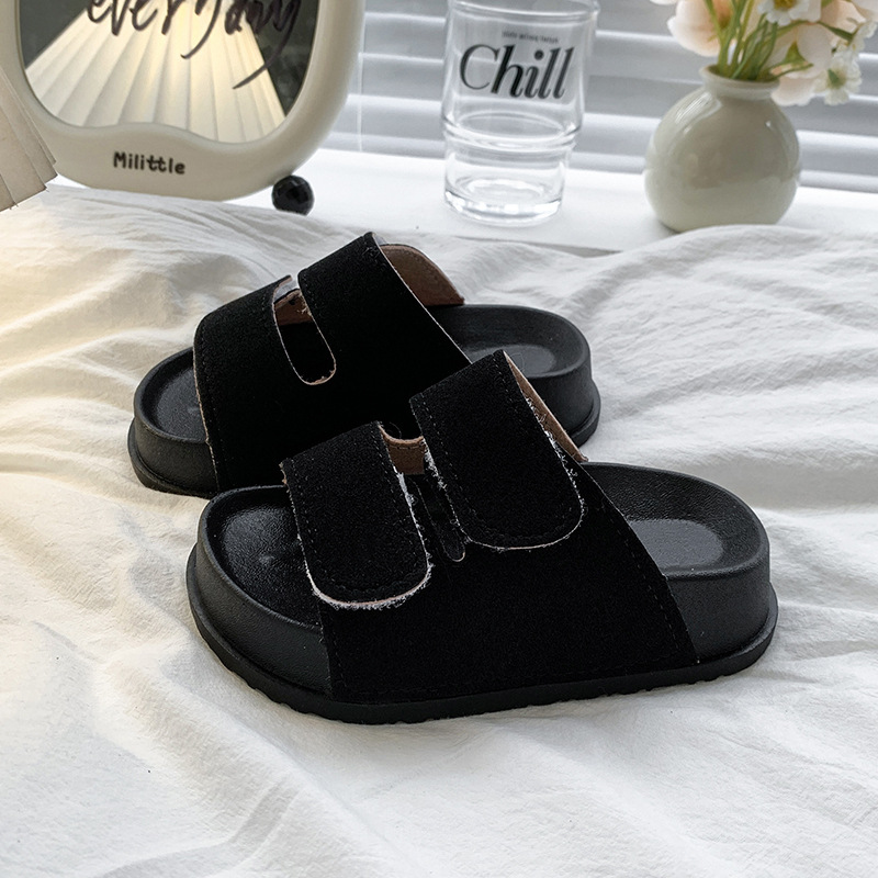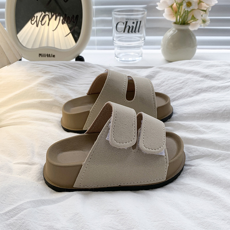 남성과 여성을 위한 세련된 아동용 두꺼운 밑창 슬리퍼, 트렌디한 아우터웨어, 벨크로 오픈 토 비켄 슈즈, 중대형 아동용 반슬리퍼 도매스토어 가기