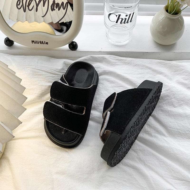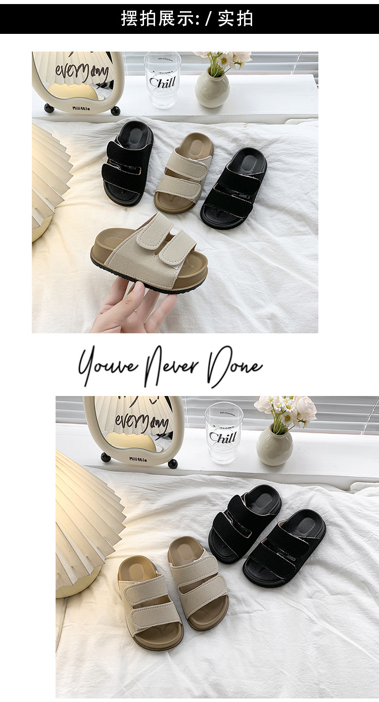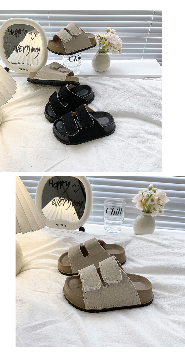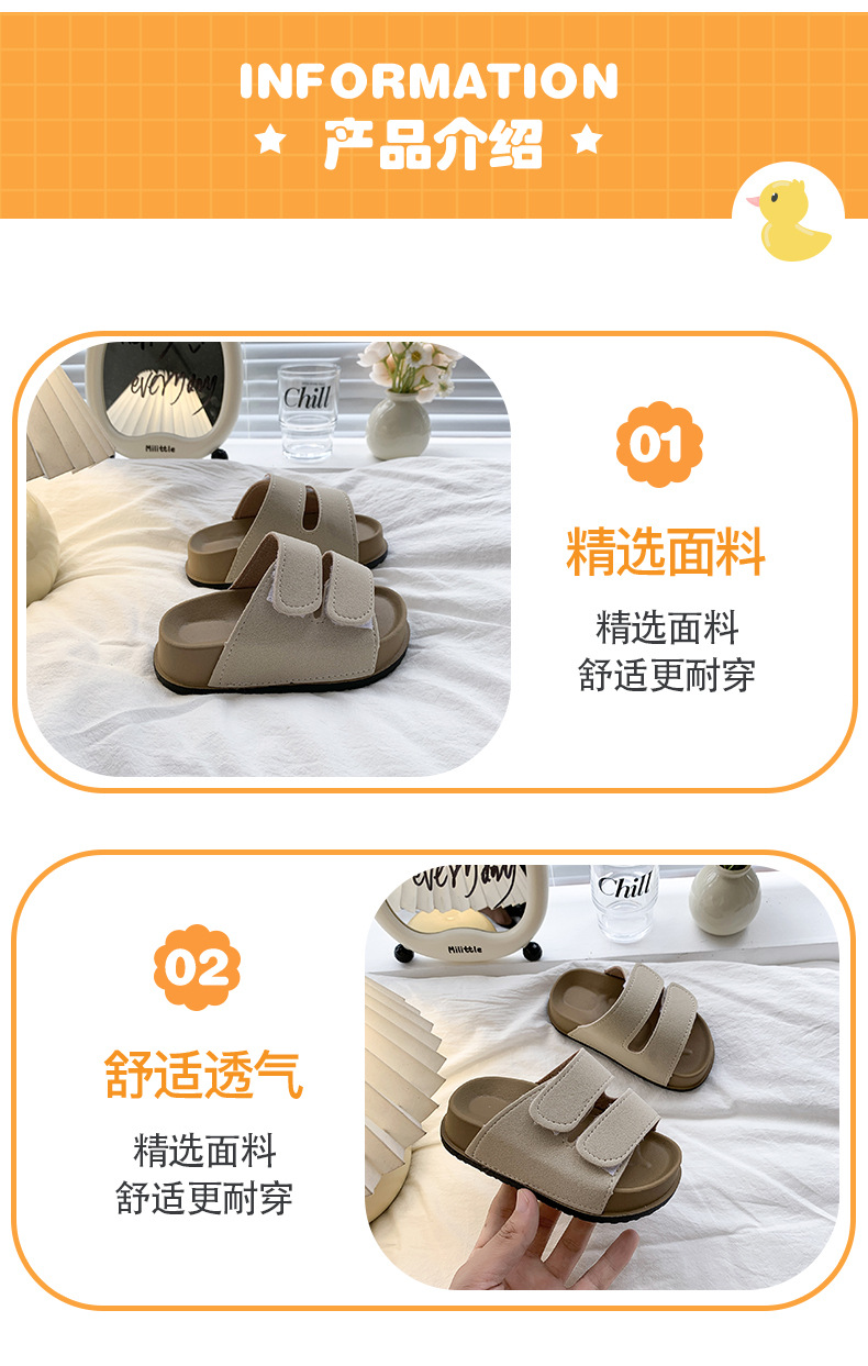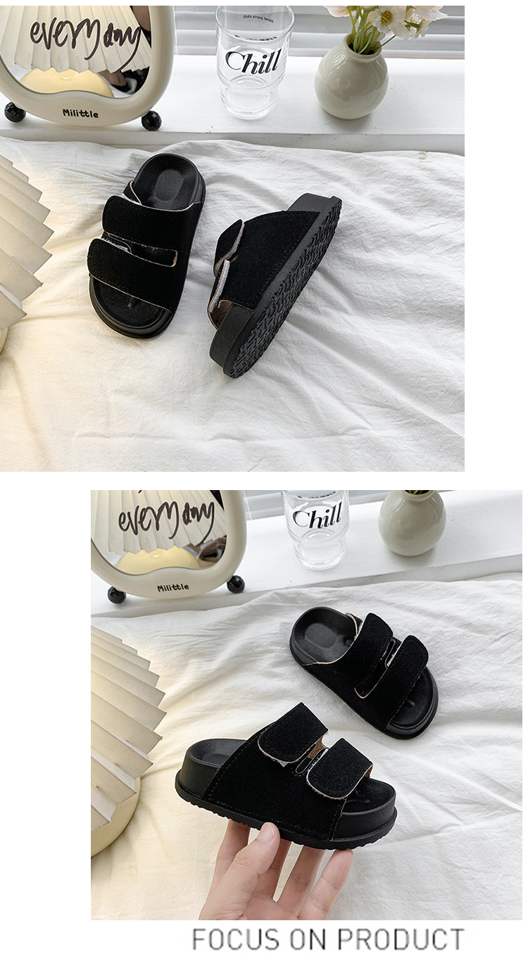 남성과 여성을 위한 세련된 아동용 두꺼운 밑창 슬리퍼, 트렌디한 아우터웨어, 벨크로 오픈 토 비켄 슈즈, 중대형 아동용 반슬리퍼 도매스토어 가기