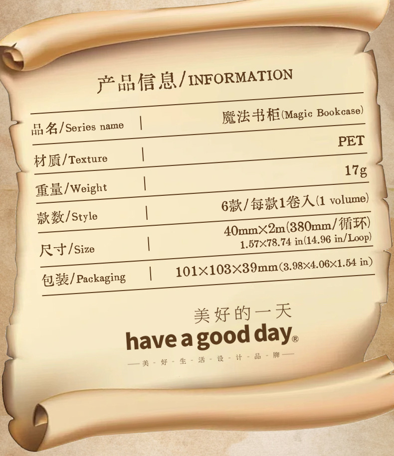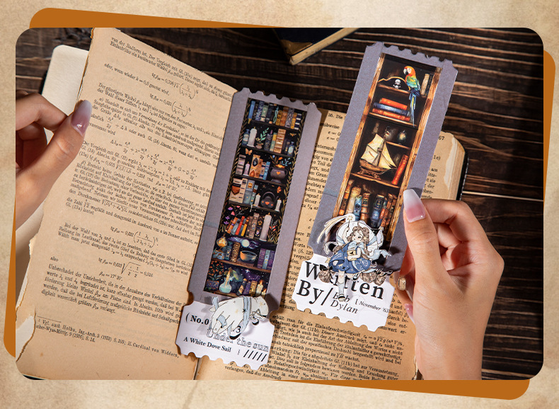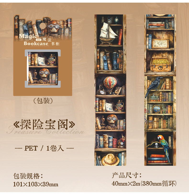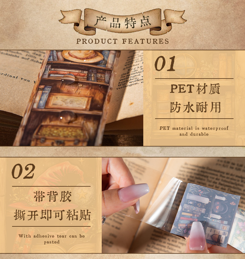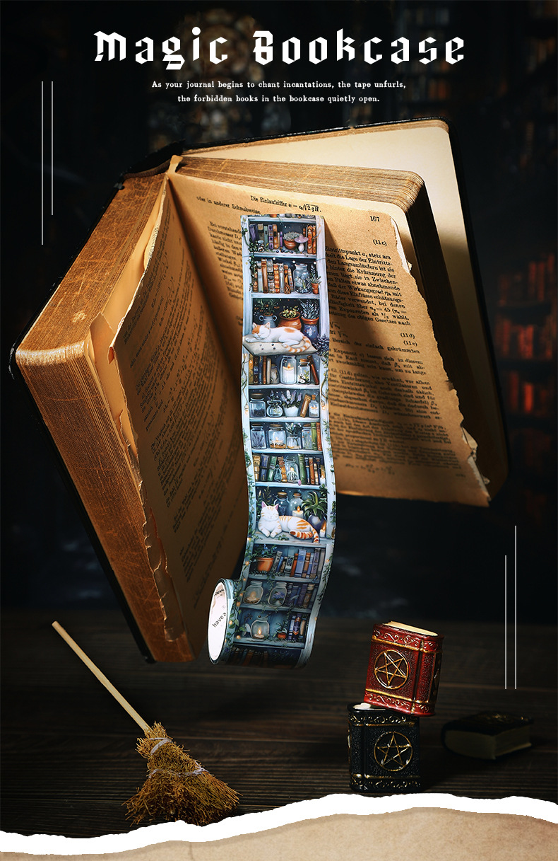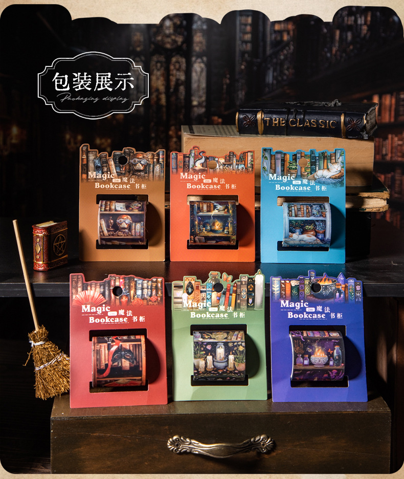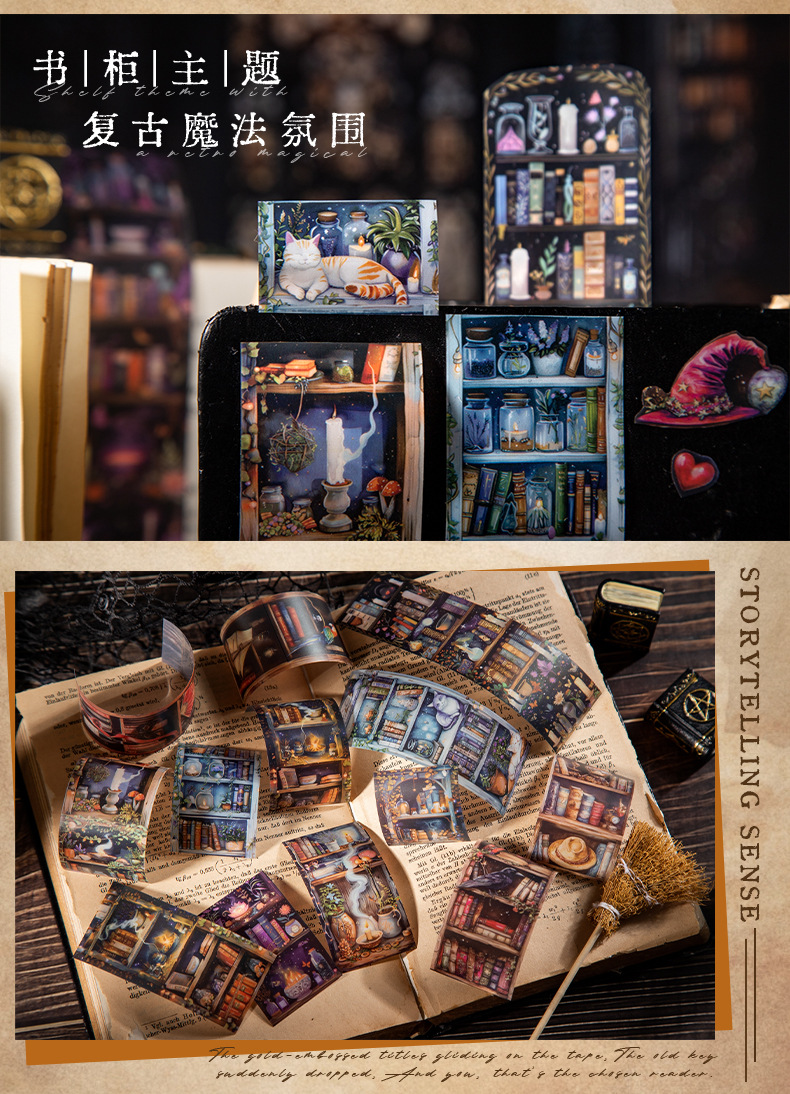 마법의 책장 독서 조경 PET 테이프 복고풍 책장 패턴 핸드북 장식 diy 스티커스토어 가기