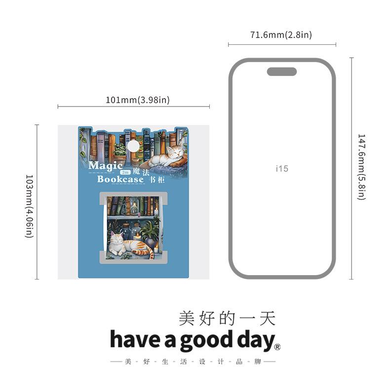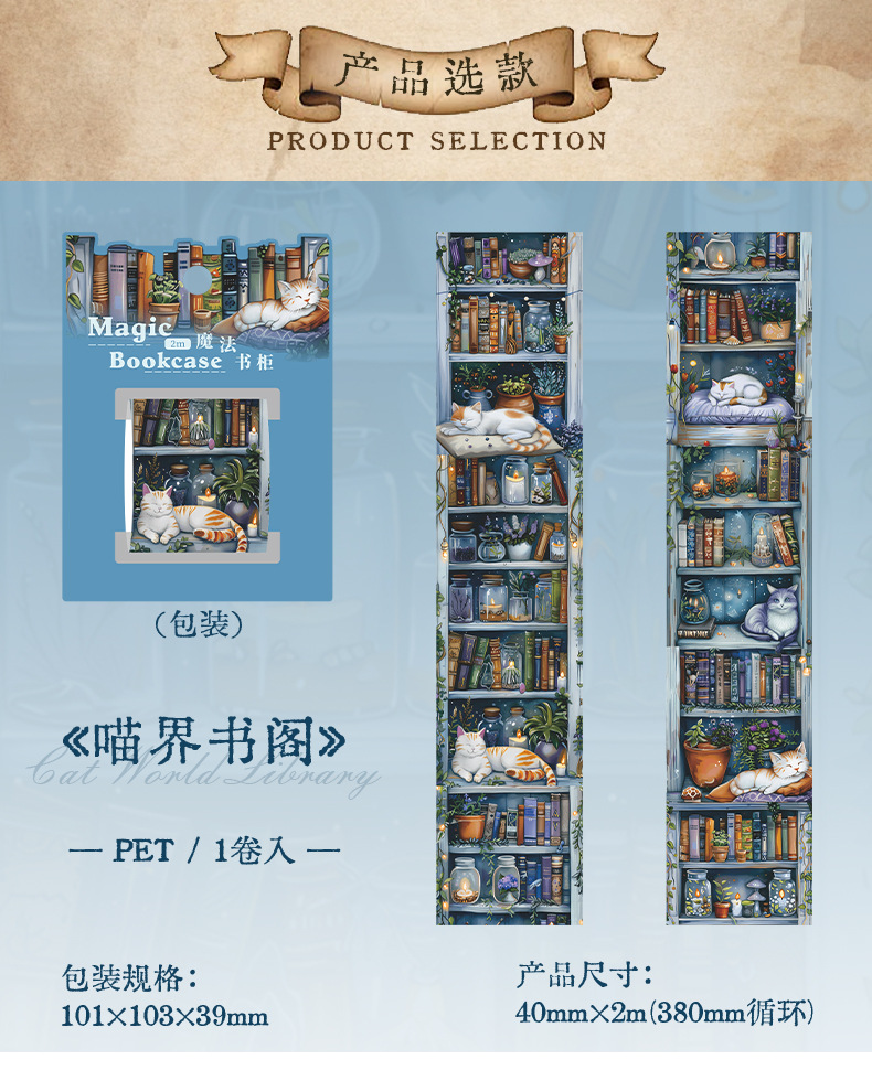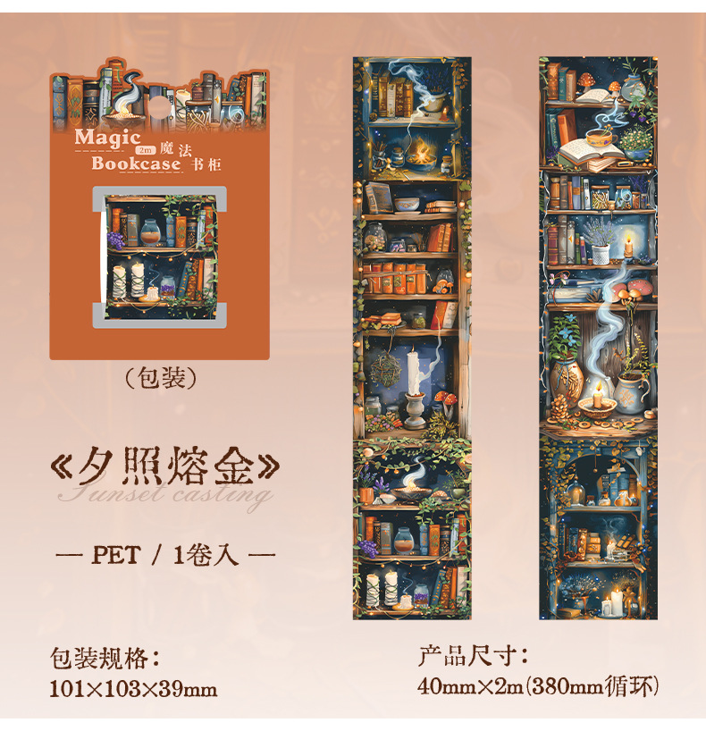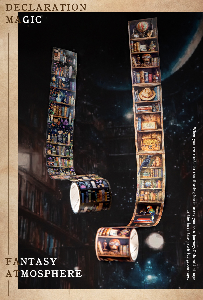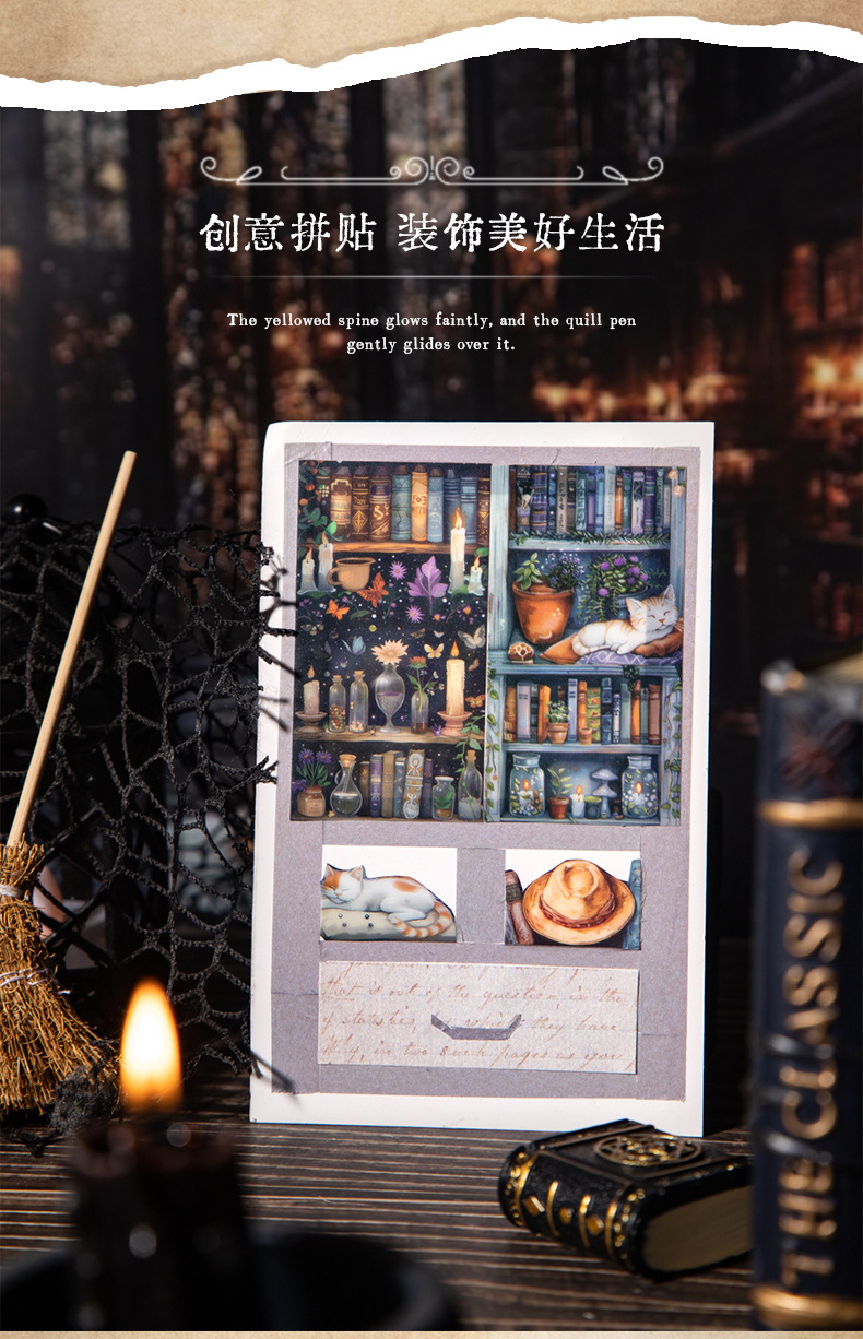마법의 책장 독서 조경 PET 테이프 복고풍 책장 패턴 핸드북 장식 diy 스티커